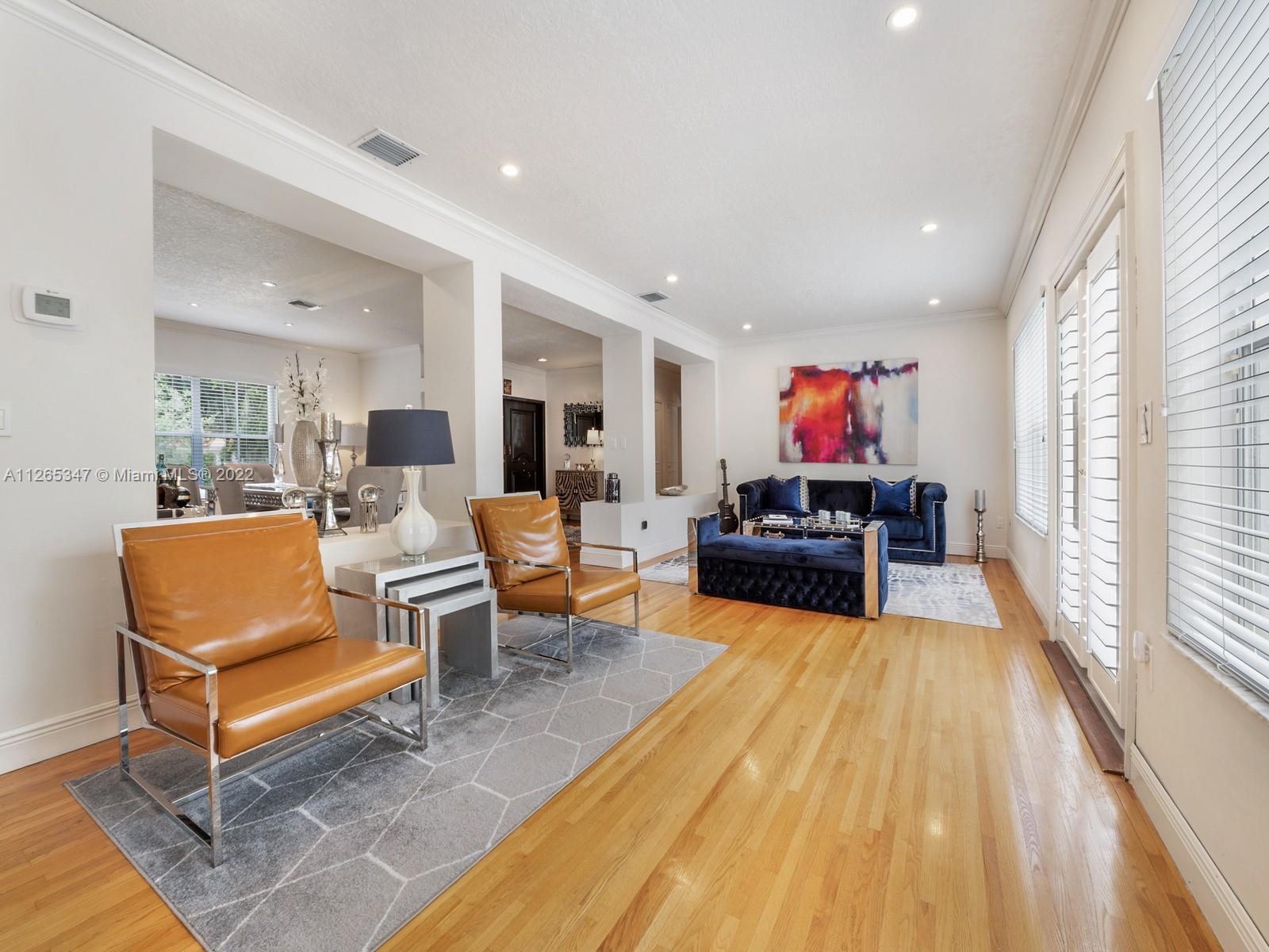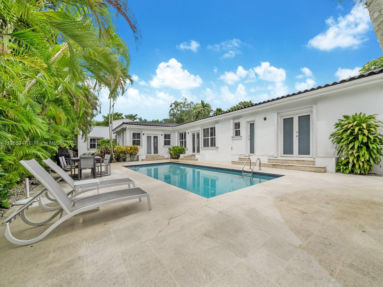 Nestled in the heart of South Coral Gables on a 15,474 square foot lot. Features include a 5 bedroom, 5 bathroom, hardwood floors, formal living/dining/family rooms with lots of extra closet space. Oversized master suite has an additional area for home office, gym or extra closet space. Split 3 bedroom, 2 bathroom compliments the perfect floor plan. 1 bedroom and bath to complete a perfect in law’s quarter. Kitchen finished with granite tops, stainless appliances, custom wine cellar and hardwood floors. Chicago brick driveway and entrance completes this estate. All of this and more overlooking picturesque pool/patio area with home generator.