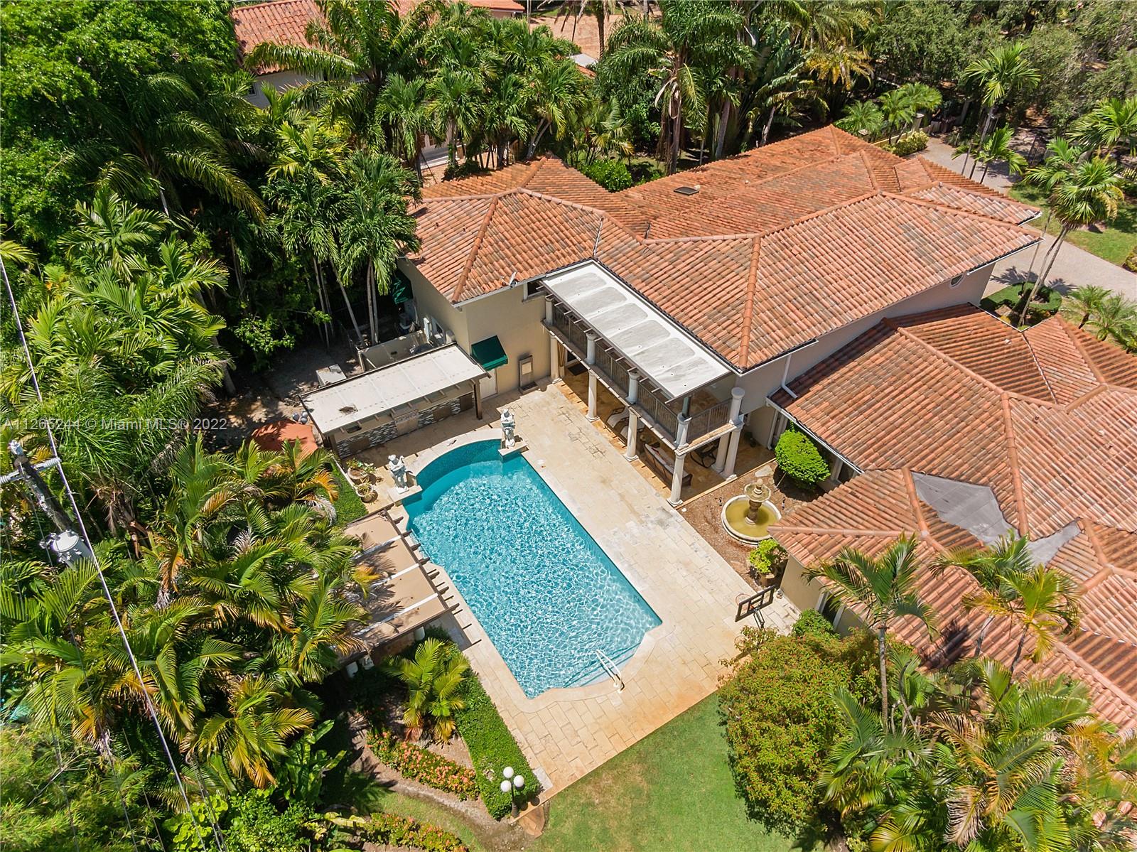 Extraordinary 5 bed/4.5 bath estate located on historic & oak-lined Coral Way on a gated 22,750 sf lot. Near the Biltmore Hotel & in close proximity to Downtown Gables, parks, golf, prestigious private schools, upscale dining & shopping. Grand foyer entrance & elegant formal living, high ceilings, beautiful staircase, impact windows/doors & ample natural light. Gourmet kitchen with island, Subzero & Thermador appliances. Wine cooler. Master suite overlooking gardens & offers 3 walk-in closets, separate water closets, double sinks, steam shower & jacuzzi. Upstairs second family room & terrace. Marble & hardwood floors. Generator, 2 Car Garage, Laundry Room, Sprinklers & more. Exquisite backyard with full summer kitchen, Lion BBQ, gas range, pool, ample green space & large covered terrace.
