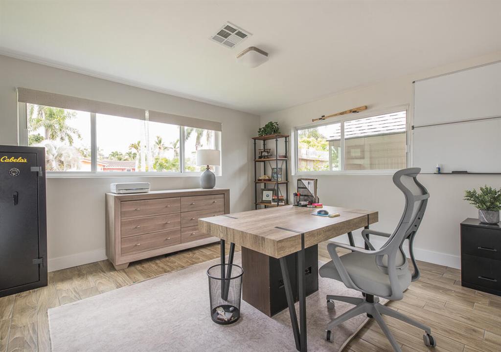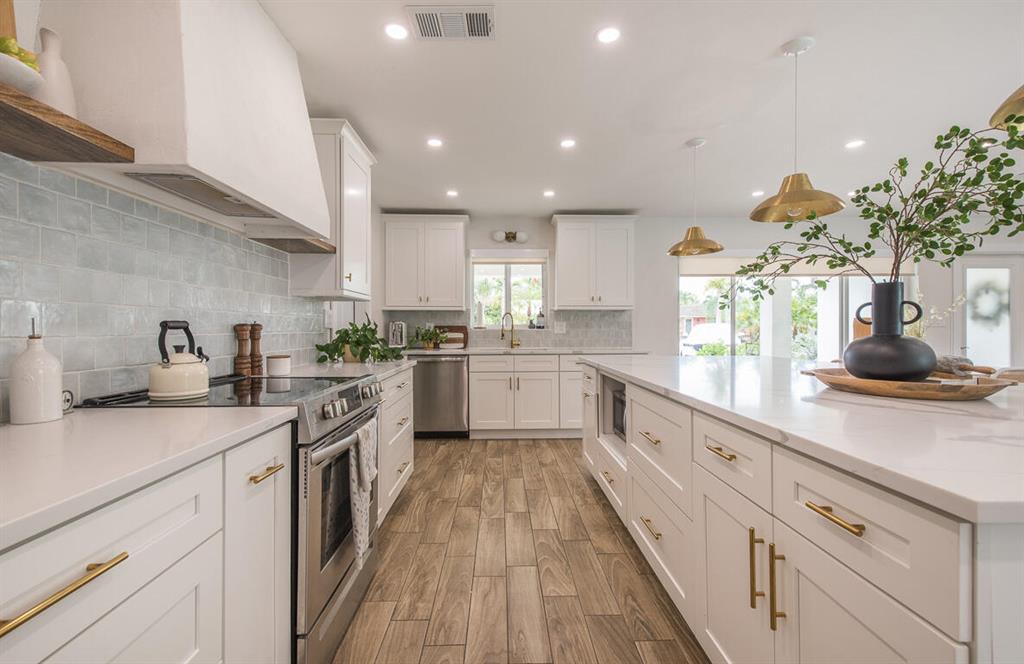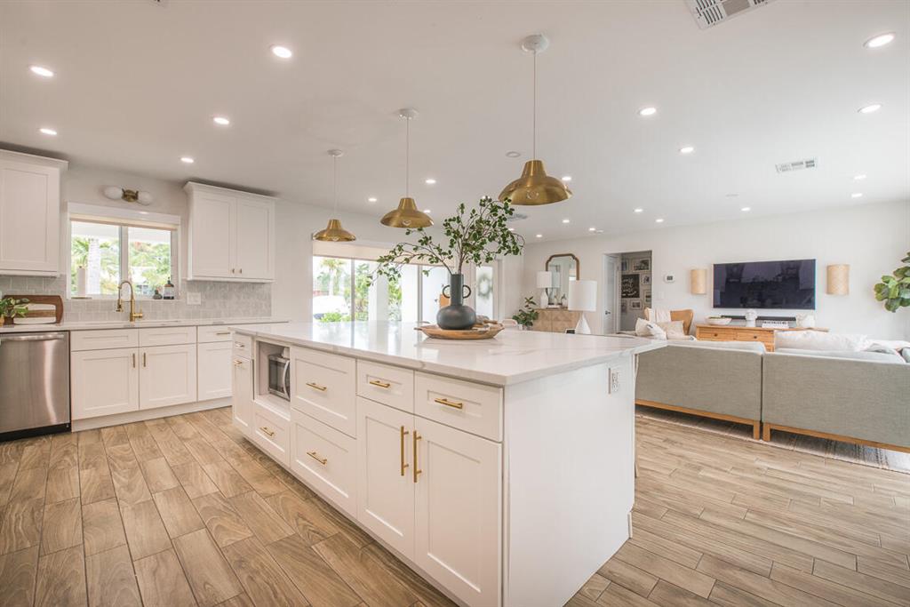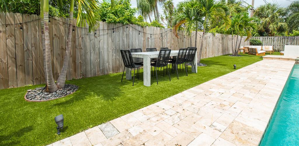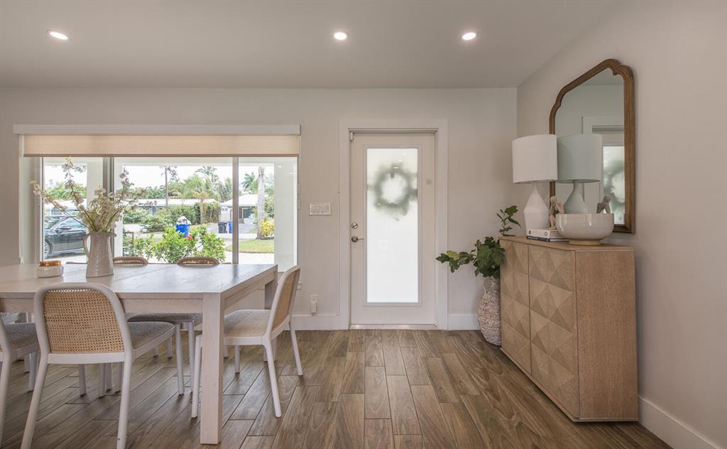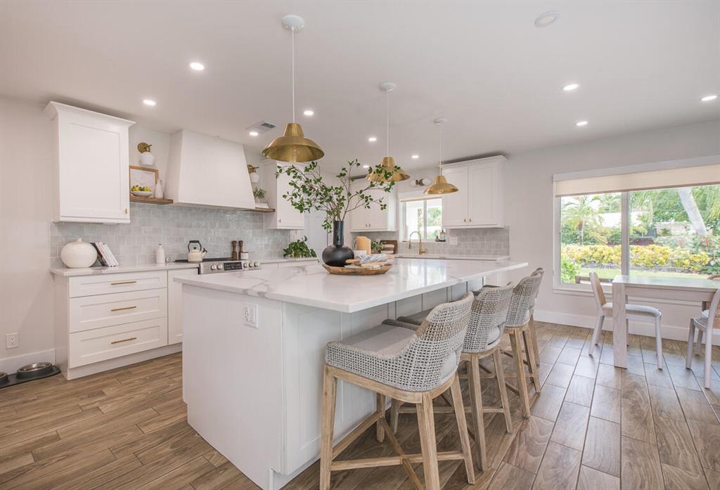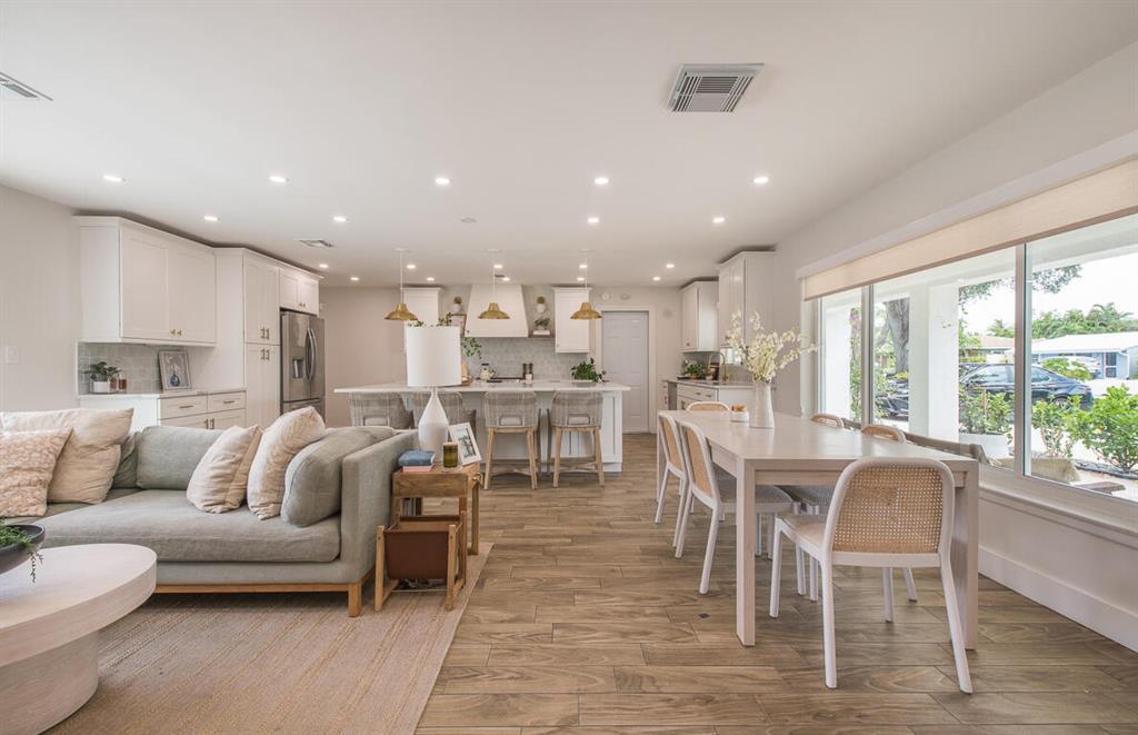 Come fall in love with this luxurious pool home in the highly sought-after Fort Lauderdale community of Coral Ridge! Located just minutes from the beach, restaurants, shopping, and so much more, this fully-renovated gem features two master suites, wood-look porcelain tile floors throughout, and a breathtaking kitchen that boasts an expansive island with plenty of storage, quartz countertops, brand new stainless-steel appliances, a custom oven hood, a stylish tile backsplash, and soft-close shaker cabinets. The three full bathrooms were tastefully remodeled with frameless glass shower doors and mosaic tile shower floors. The private fenced-in turf backyard is truly a slice of paradise, featuring an oversized pool, spa, and a travertine tile deck. This is a must-see!