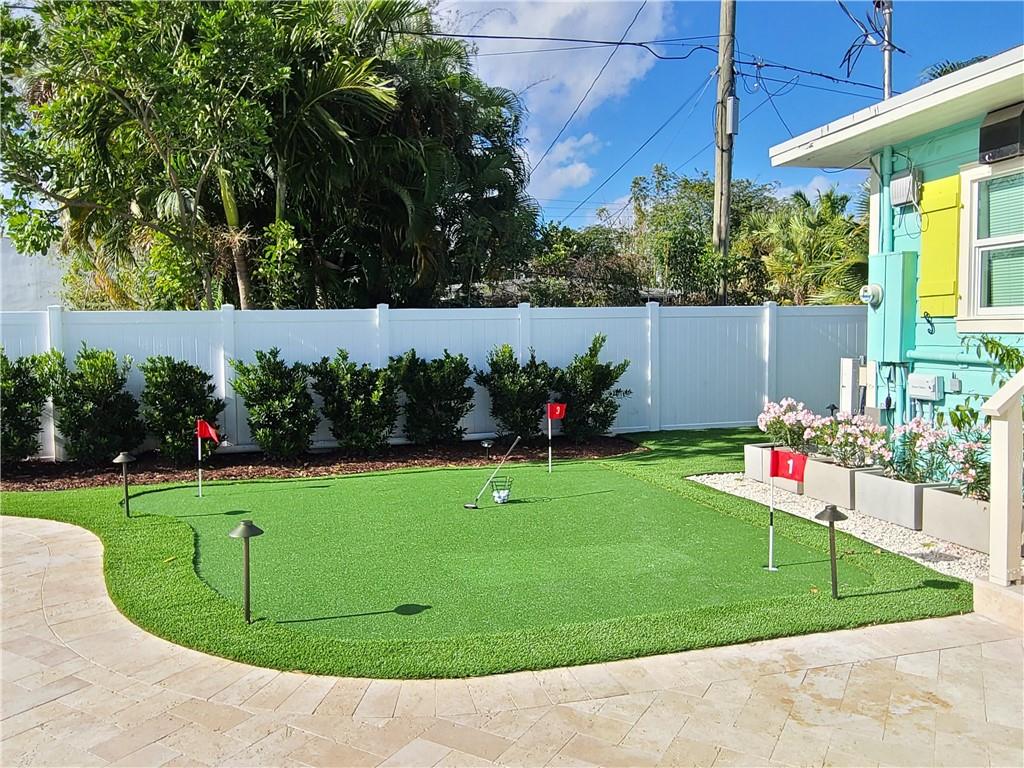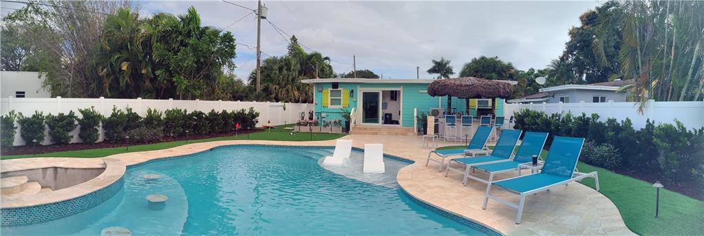 Beautiful, Bahamian-style house with a large, impressive back yard and tons of curb appeal. 3 beds/2 baths all on the same level. Recently renovated with state-of-the-art touches. New Kitchen with Quartz counters, new black stainless appliances and flooring. Gorgeous resort-style backyard with private putting green and a large, (20x35) free form heated salt pool with a sun shelf and swim up bar. Desirable and rare Miami-Dade pine flooring throughout. New roof in 2021. All impact-resistant windows and doors. Convenient mini split A/C systems (newer) for temperature control by zone. Make this your paradise homestead OR continue running this successful vacation rental property, all furnishing will convey with the sale.