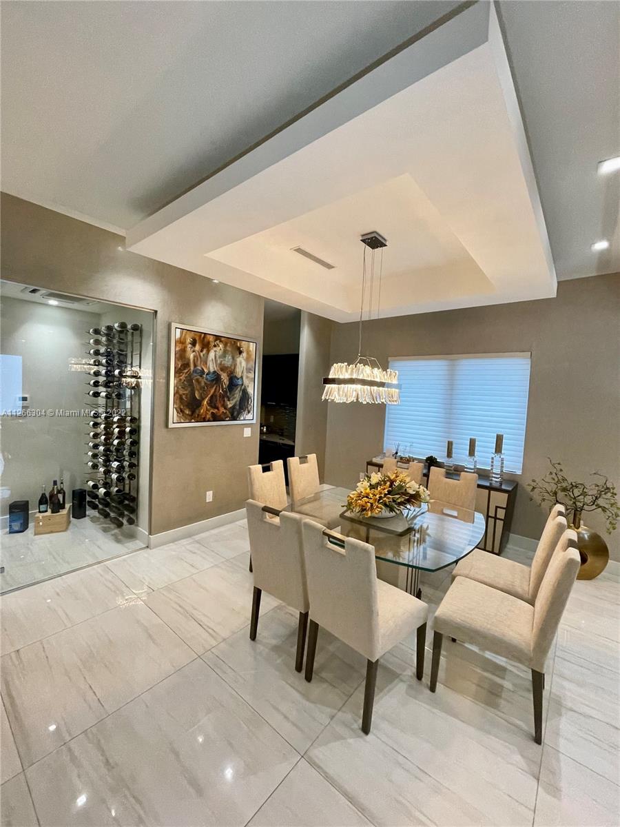 This Dream home is everything you can imagine! 3-story single-family home with 5 bedrooms, 6 1/2 baths, 2 car garage with pool, and a huge terrace with built-in Bbq island! This house has everything from a wine cellar with a thermostat, to a custom closet for every single room of the house! Everything has been upgraded, wireless blinds, kitchen cabinets, flooring, lamps, and top-of-the-line appliances. Buy in now to what promises to be one of Doral's most high-end neighborhoods!