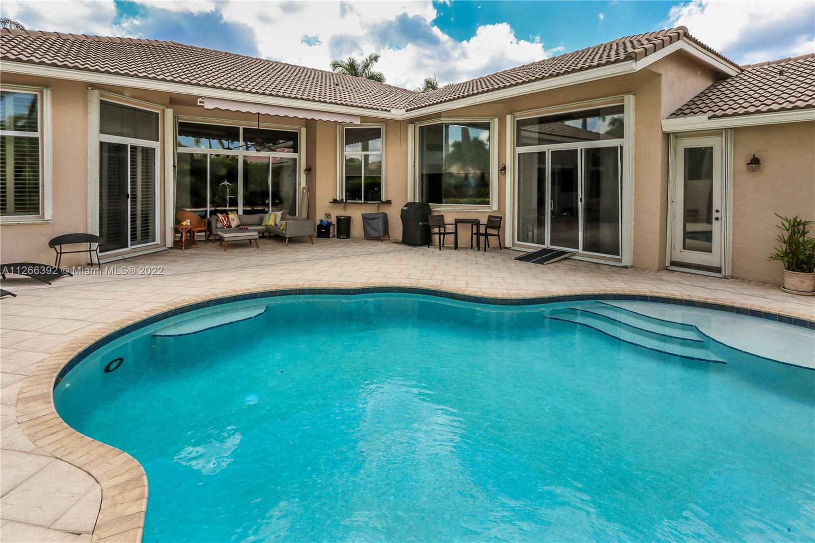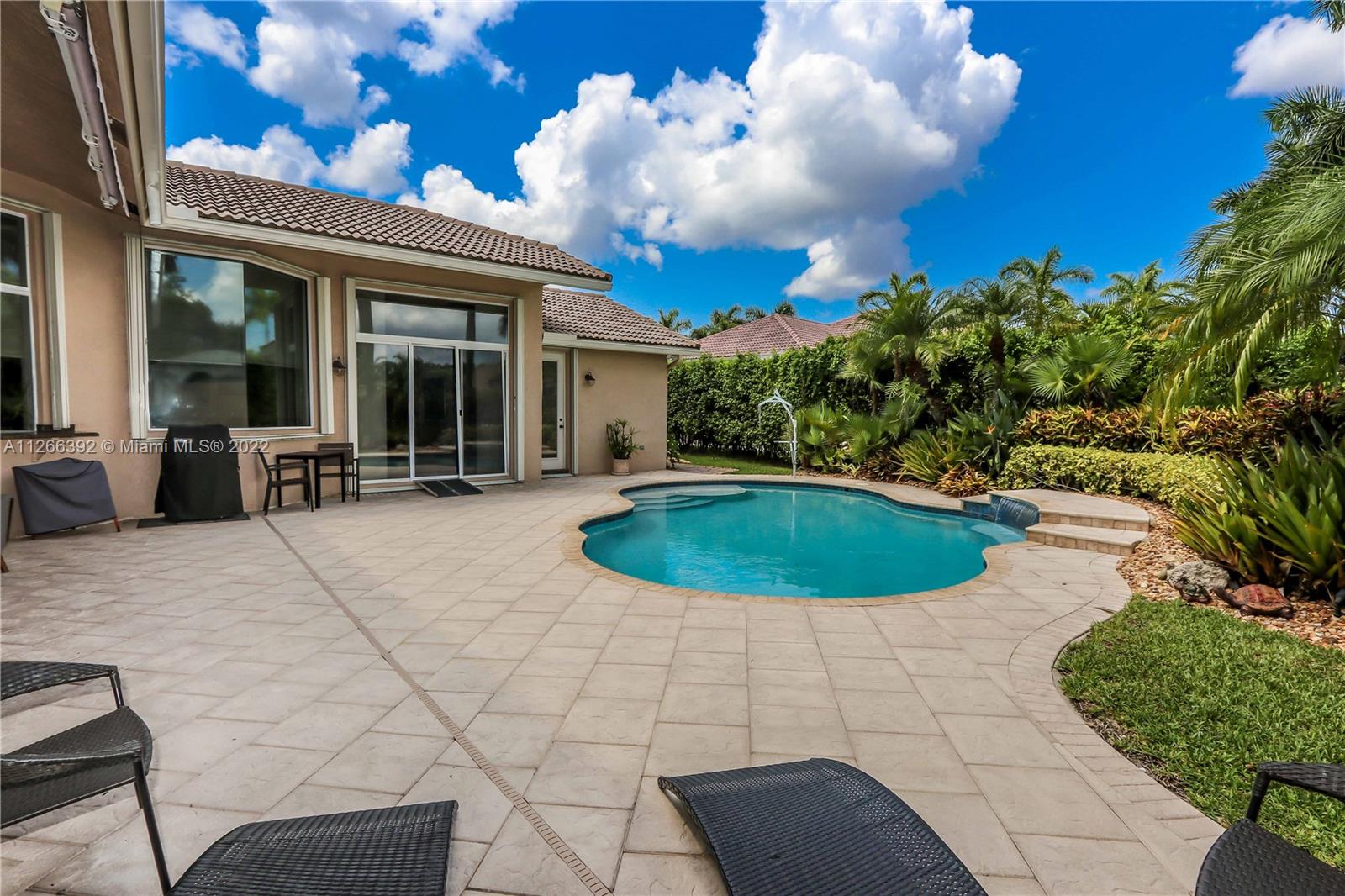 Welcome to your Dream House in beautiful Weston Hills Country Club. This is a ONE STORY , 4 Bedrooms + Office or an Extra Bedroom(oversized bedrooms) and Circular Driveway with Extra Parking Space ( 6 and over) . Upon entering gorgeous pool views set the tone for an inviting and classic South Florida living area. The home is walking distance to the BUS STOP from all schools and a beautifully maintained neighborhood park .The home is meticulously maintained with high-end custom design touches , including high ceilings ,custom closets and saltwater pool with cascade. The property is excellently located near top rated A+ schools, restaurants, major highways, a twenty minute drive to Florida famous beaches at Ft. Lauderdale and Hollywood international Airport.