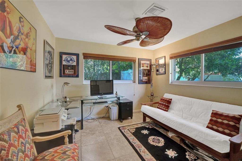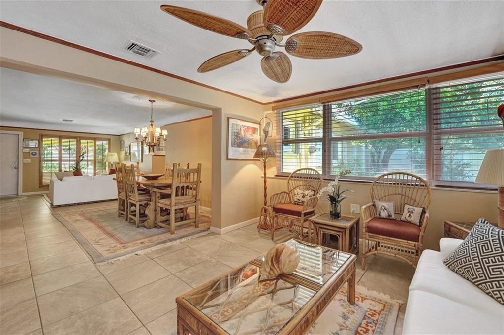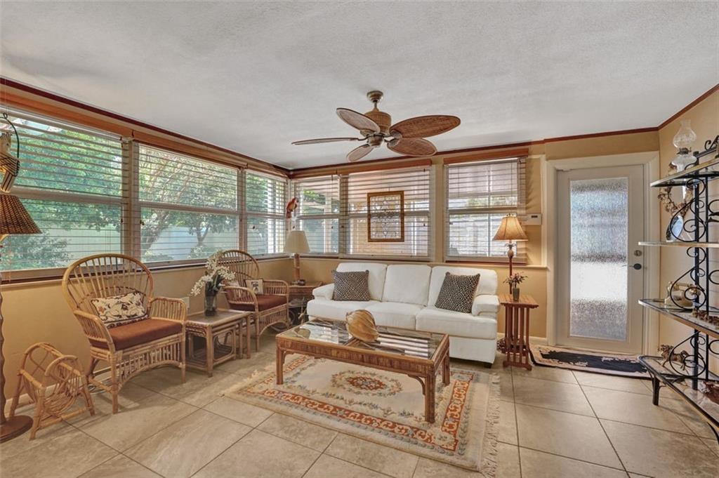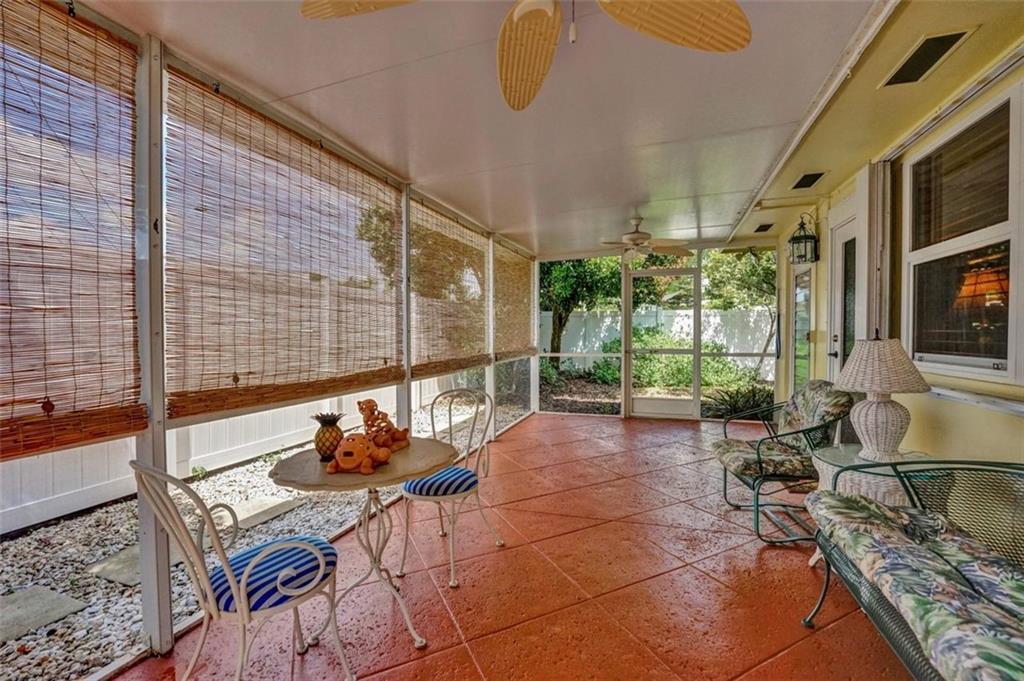 Gorgeous totally updated home with a garage in a quiet neighborhood with great curb appeal. 2/2 with a family room that could easily be a 3rd bedroom. Tiled throughout, updated open kitchen with granite countertops and all KitchenAid stainless steel appliances. Updated bathrooms, hurricane impact windows & doors throughout, lovely covered porch in front and covered screened in back patio with additional storage room. White PVC fence installed in 2021 makes for a private back yard. Separate laundry room with pantry, updated electric & tankless hot water heater are just a few more of the many wonderful features. Conveniently located near major thoroughfares for easy commuting. No HOA and neighborhood park nearby.