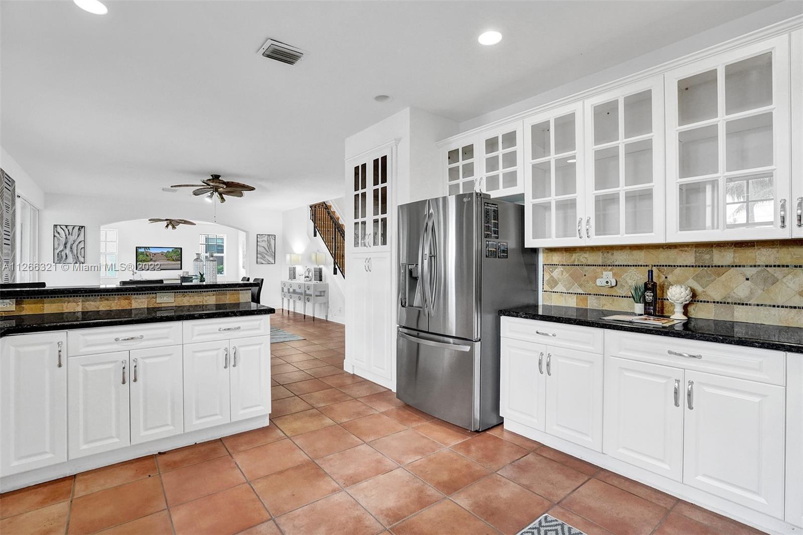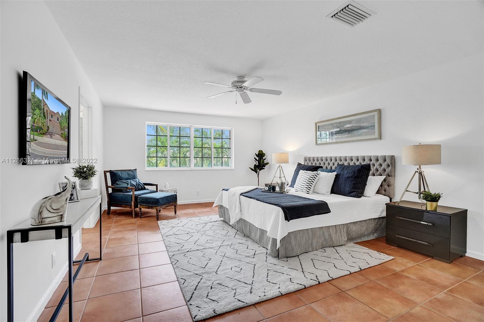 Heatherglen model on oversized cul de sac lot w/ unobstructed water views. Enjoy views from your screened patio, w/ plenty of room for pool. Oversized family room w/ full bath and 3 car garage. 2nd level features 5 bedrooms plus den (could be 6th bed) and 3 full baths. Renovated white kitchen w/ SS appliances and granite countertops. Imported Italian tiles throughout house. Owner Suite has sitting space w/ connected Den/Office space/6th bed, large walk-in closet. owner bathroom has shower and whirlpool tub. Newer AC unit for upstairs and water filtration system throughout. Hurricane protection includes impact windows on 3 sides, back side full accordions. Garage w/ specialty flooring and plenty of storage w/ sauna. Walk to community park w/ soccer field, playground, and basketball court.