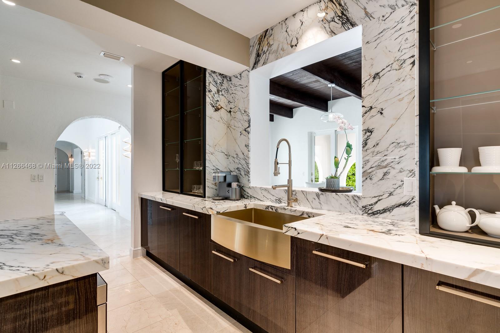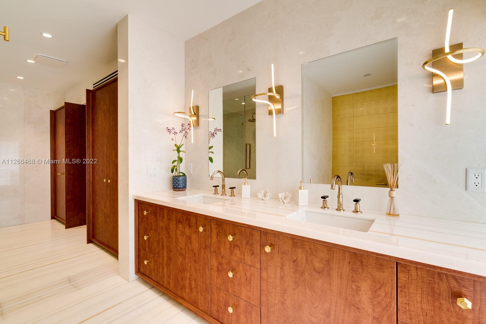 Live in Key Biscayne’s most prestigious Mashta Island. This Spanish style 5 Bed/ 5 ½ Bath residence features formal Living and Dining rooms creating the perfect atmosphere for all of your gatherings. The gourmet Kitchen includes a “La Cornue” dual gas range with Custom French Countryside Hood and detailed trims. Enjoy the Andalusian tiled courtyard dressed with a fountain that opens to the solar-heated pool and the fully equipped Summer Kitchen. The first floor includes three large bedrooms with ensuite bathrooms and a wellness and fitness suite for sauna lovers. A sculptural wooden staircase leads to the Master Suite with a master bath boasting 24k gold wall tiles and free-standing bathtub with a 400 Sq Foot Terrace with Ocean views. Oh yes and there is a private elevator to the Master.