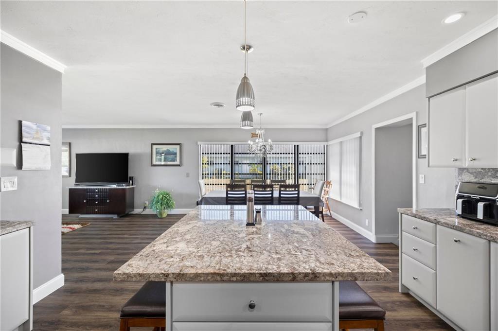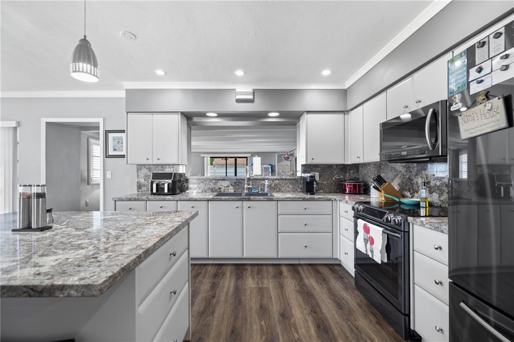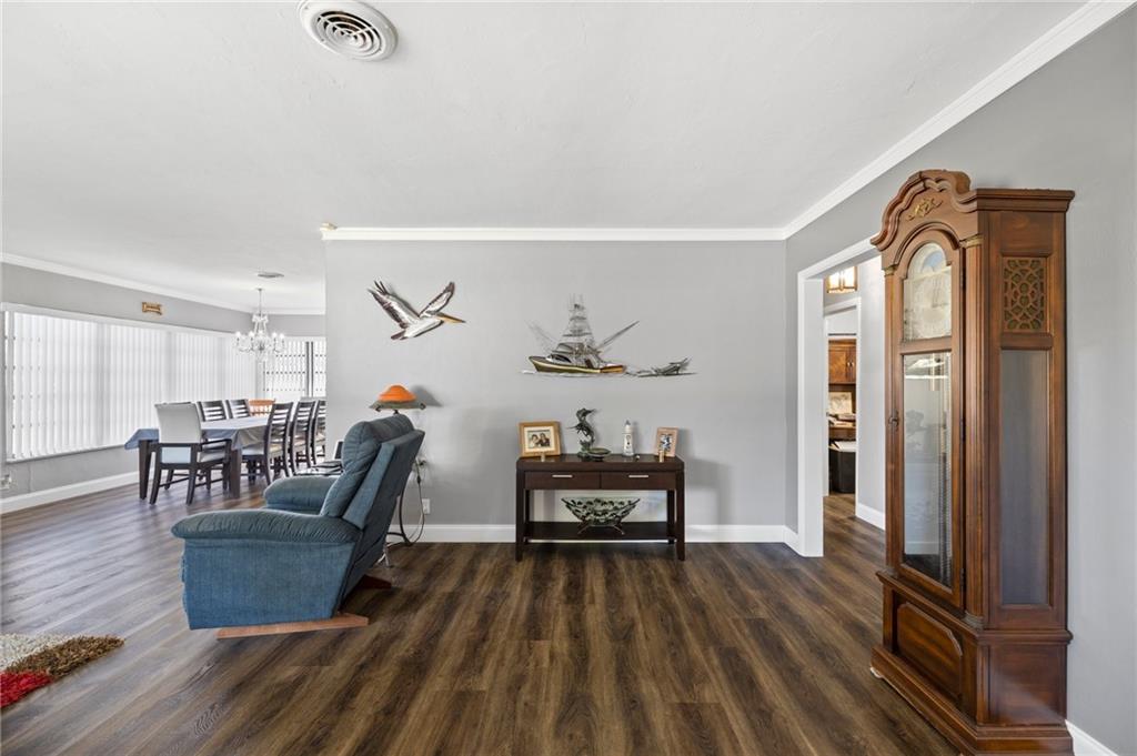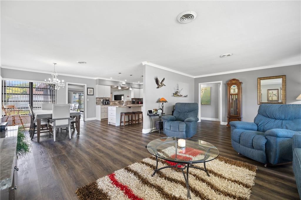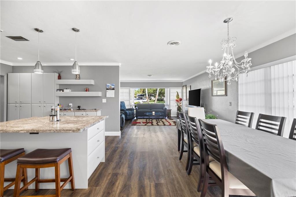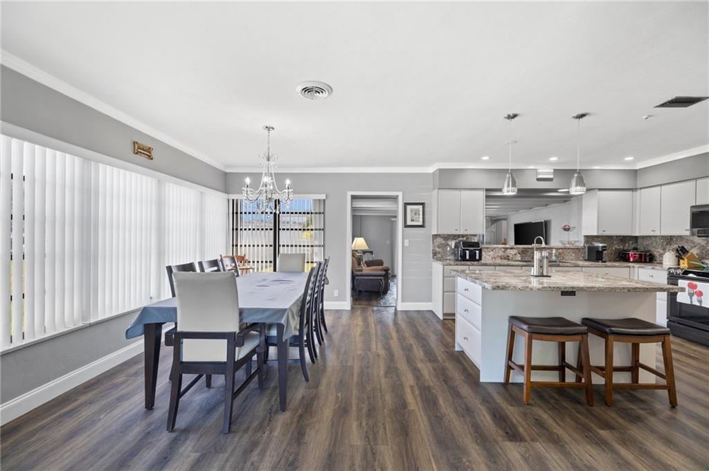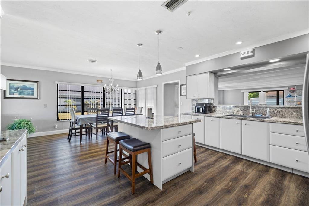 Highly sought-after Hollywood Hills updated 3/2. The beautiful house has open floor plan beginning with a spacious living room, which seamlessly opens to the dining room and modern kitchen. UPGRAGES: New 40-year roof 8/22. The kitchen has newer cabinets, appliances, and matching marble backsplash and countertops. The bathroom received new tile work, vanity, and fixtures. The floor is a PVC faux wood, which looks great and adds to the warm overtones. Bdrms & family room are oversized. BONUS ROOMS There is a workshop with separate AC & laundry has new stackable washer/dryer. The house was freshly painted and is well maintained. It shows extremely well. Hollywood Hills continues to be a wonderful and diverse community close to the employment and entertainment destinations.