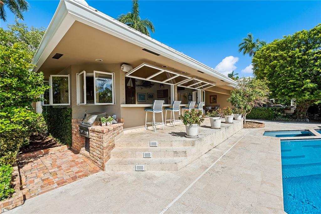 SPRAWLING classic Florida waterfront estate offering 200'WF /direct ocean access (2boat lifts) RARE opportunity to own one of the last dividable 200' lots in Las Olas. Features include 4 ensuite bedrooms w sumptuous master suite on 2nd floor overlooking the extensive grounds. Grand living room w gorgeous pecky cypress vaulted ceilings; formal dining room, family room. office/den & amazing billiard/entertainment w/wetbar and icemaker overlooking pool and patio area. Full Cabana bath. Lush tropical landscaping. Amazing covered patios line the back of the house to enjoy every minute of South Florida living. Gated access to south garage (4 cars plus work shop & storage) plus additional one car garage on the north side of home. Generous storage areas under A/C living space.