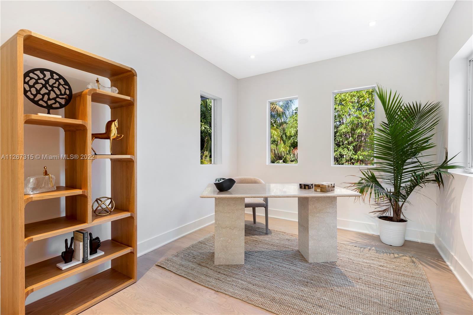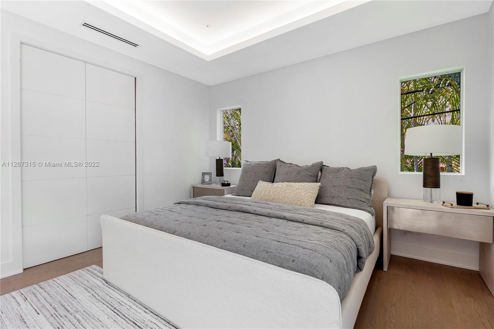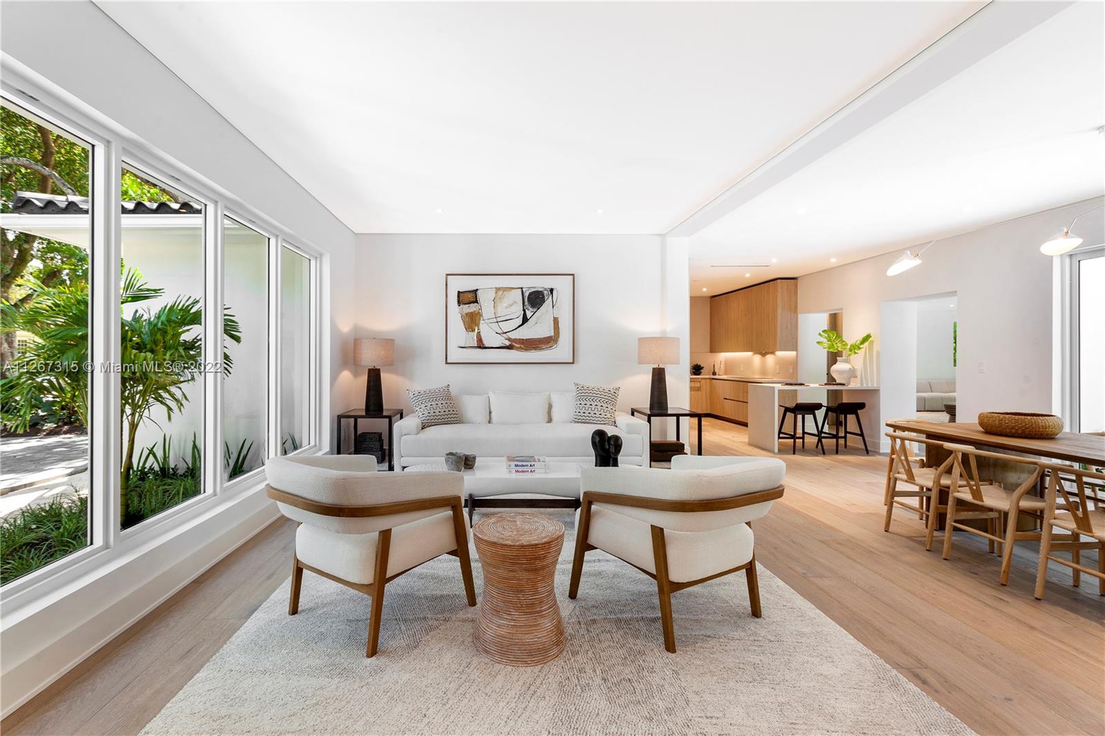 Rare opportunity to own meticulously renovated designer residence in highly sought-after Coral Gables. Designed by renowned Farache Bromberg and Casa DDI, the home features 5 bed, 4 bath with new wood and tile flooring throughout. The spacious open floorplan flows through formal living and dining, custom kitchen with Miele appliances, breakfast bar, and informal living room. Expansive master suite has a double-entrance bathroom with dual vanity, shower, and soaking tub, sitting area, walk-in closet, and covered balcony. Lushly landscaped backyard offers perfect private entertaining space with pool, covered terrace, and cabana bathroom. New dedicated laundry room, windows, AC, mechanical, electrical, plumbing, covered entry, driveway, perimeter gates, and two-car garage.
