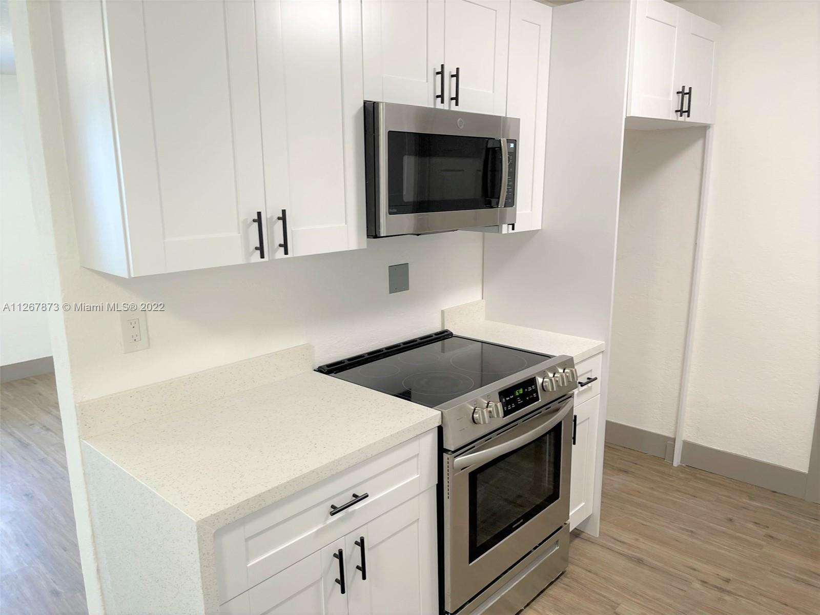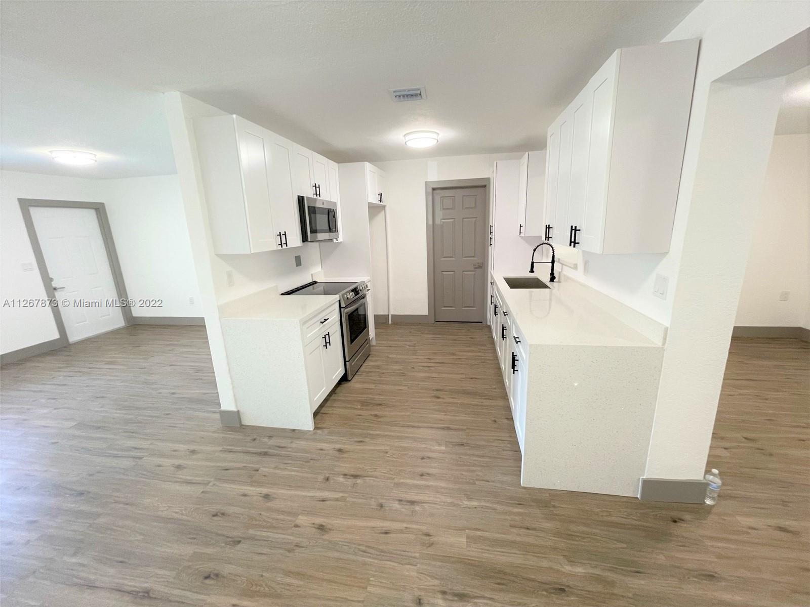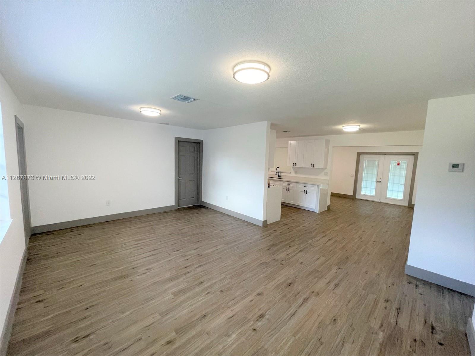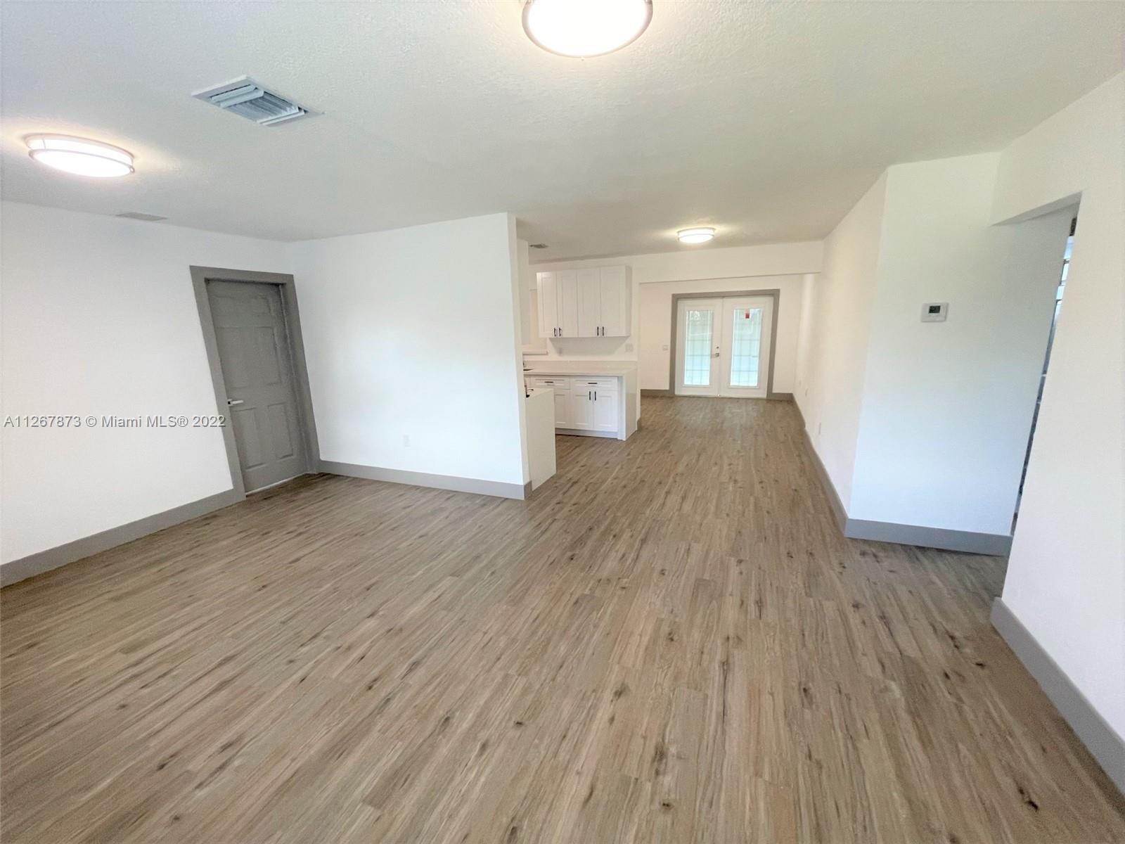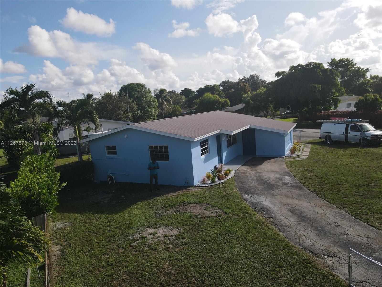 Lovely Single Family Home in the heart of Hollywood. Great three-bedroom two bathroom split plan; there is no HOA. Newly renovated. Nice waterproof vinyl flooring throughout the home with new baseboards and trims, LED lighting, renovated bathrooms, brand new kitchen with white shaker cabinets and quartz counters! A huge lot with a circular driveway, the house has a workshop that can be converted into an extra room. Cover patio at the back. Don't miss out on this gem! it won't last!!