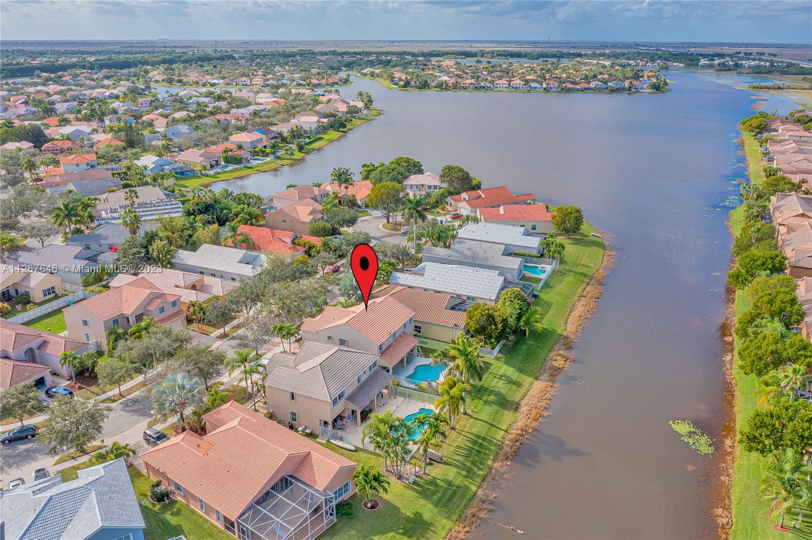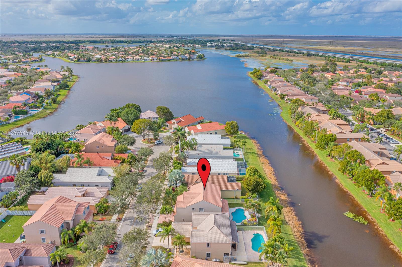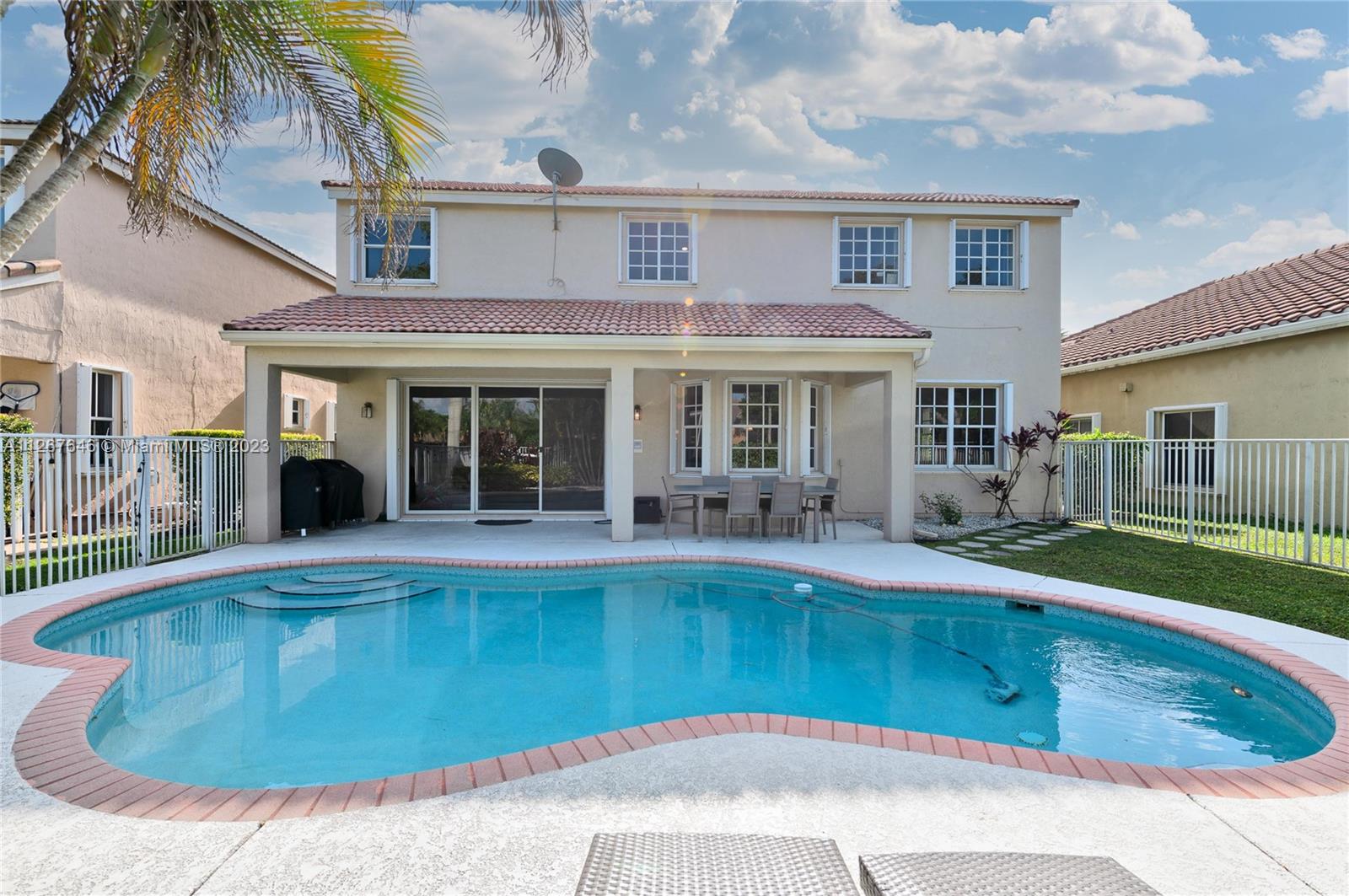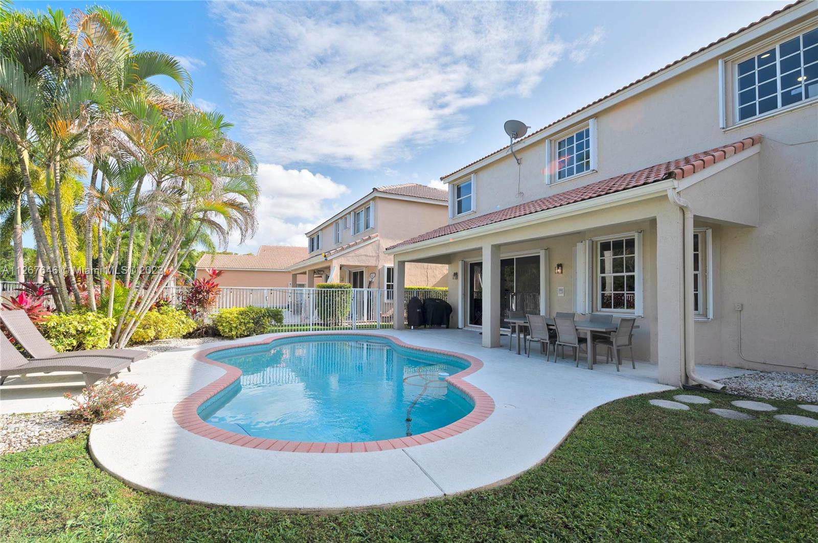 Highly desirable model home at the Falls. This beautiful property features 2 stories, 4 bedrooms, 2.5 bathrooms, 2 car garage, ample living room with high ceilings and lots of natural light, dining room, kitchen, spacious family room to entertain the entire family, laundry room and the most beautiful backyard to enjoy the true South Florida lifestyle with pool and lakeview. The master suite features a sitting area perfect for an office, yoga studio, or additional TV room. This stunning home was recently painted inside with no popcorn ceilings, brand new AC 2021, hurricane shutters and paver driveway. The Falls is a guard gated community with A+ rated schools, close to restaurants, coffee shops, parks, and much more!