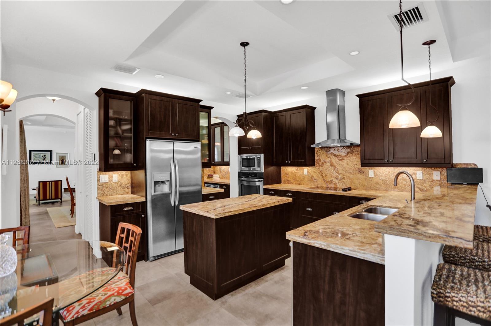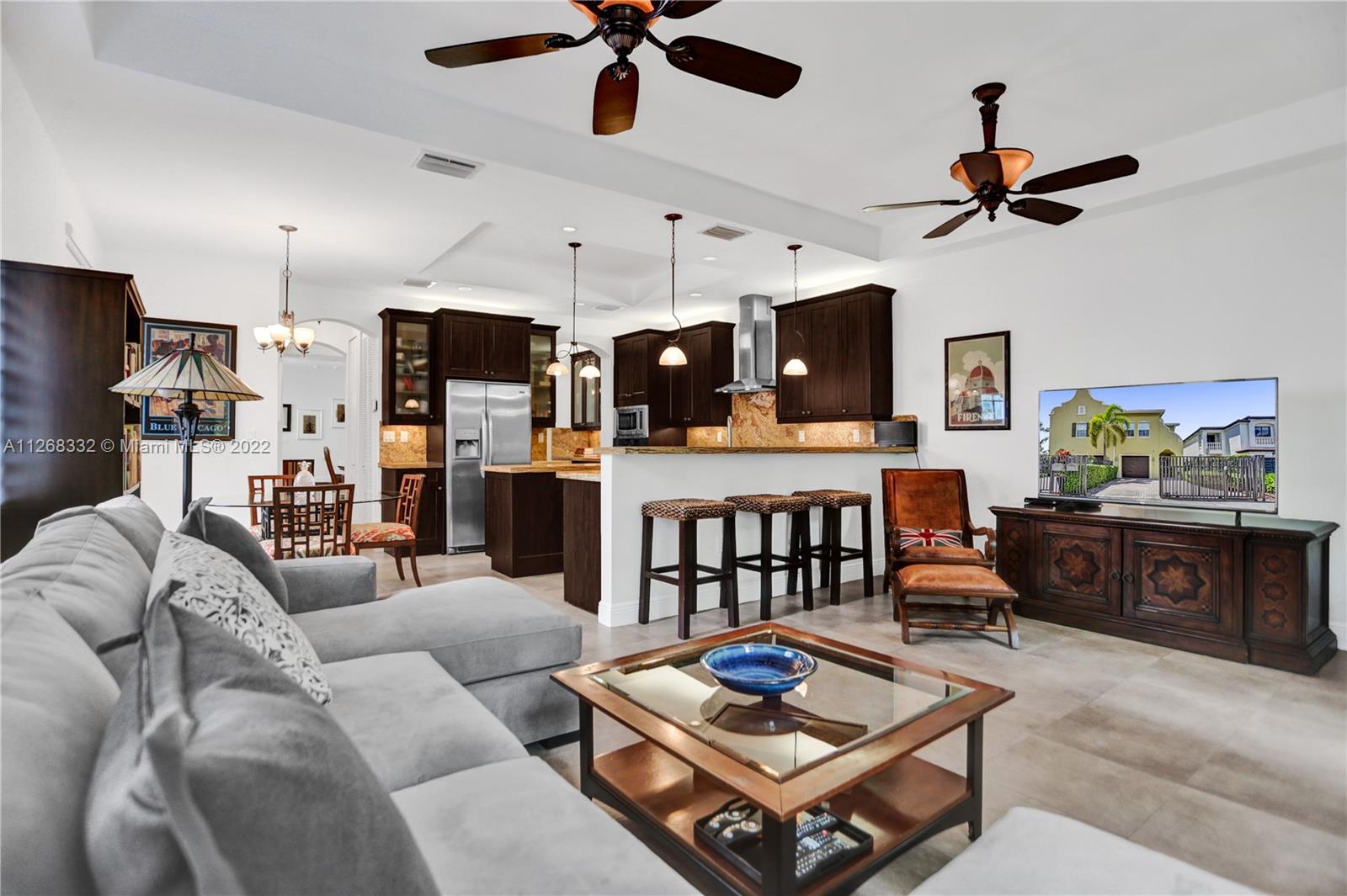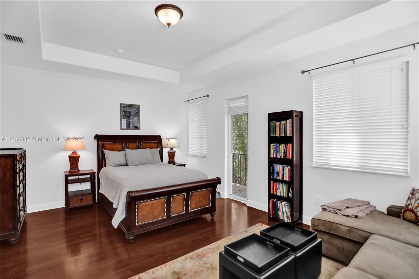 Live the Coconut Grove lifestyle in the largest townhome floorplan available. This beautiful, gated home has 4 bedrooms, 3.5 baths plus loft area. Foyer entry leads into large bright living room w/ stunning oak wood staircase and formal dining room. European style kitchen with breakfast area has coffee & beverage station w/ two wine coolers and pantry. The spacious family room leads to the tropical backyard. Surrounded by trees and lush vegetation, this is your very own Grove oasis. Large primary bedroom has separate sitting area, balcony, walk-in California closet, and luxurious bath. Laundry is upstairs along with one ensuite bedroom and two additional bedrooms that share a bath. Features 10’ high ceilings, impact windows, granite countertops, one car garage and more. Unique opportunity!