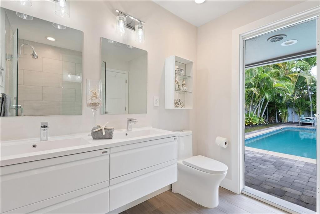 The Perfect 10--Stunning remodeled 3BR/3BA/2CG/75' waterfront MODERN pool home is perfectly positioned on a cul-de-sac street in Coral Ridge Isles. Beautifully designed open floorplan features: Chef's eat-in kitchen w/ tremendous island, bkfst bar & cabana bath. Luxurious master suite: WI closet, dual sinks, glass shower. Floating vanities. Spectacular views of the sun-drenched, saltwater pool, wide canal & impeccable landscaping (offering the ultimate privacy). NEWER: WHOLE HOUSE GENERATOR, roof, impact windows/doors, garage door, cabinetry/appliances, wood-plank tile, dock decking (w/ water, electric & whips), hot tub, landscape lighting, concrete driveway, fence, gutters. Laundry room under air w/ storage galore! Minutes to beach, 3 Int'l airports, restaurants, etc. Steps to Pinecrest.