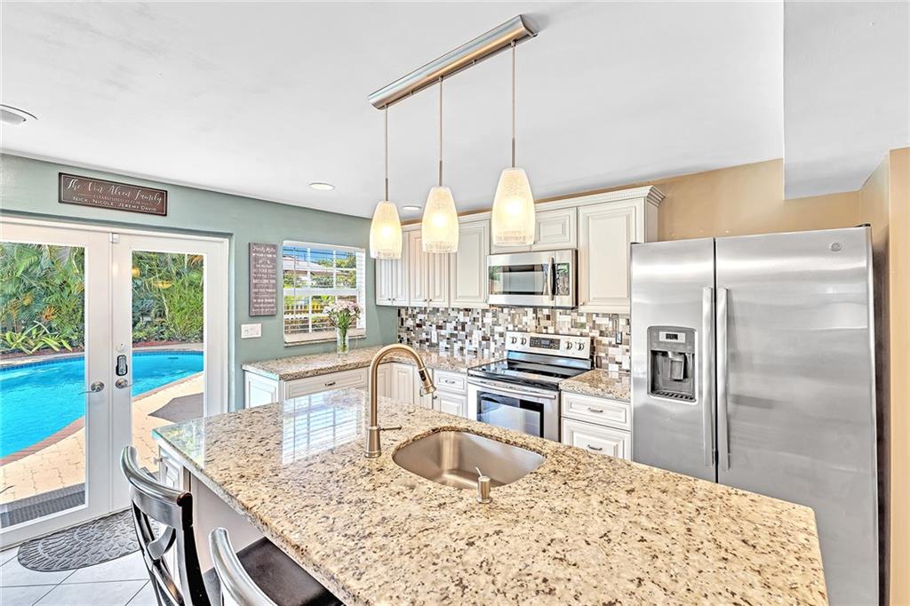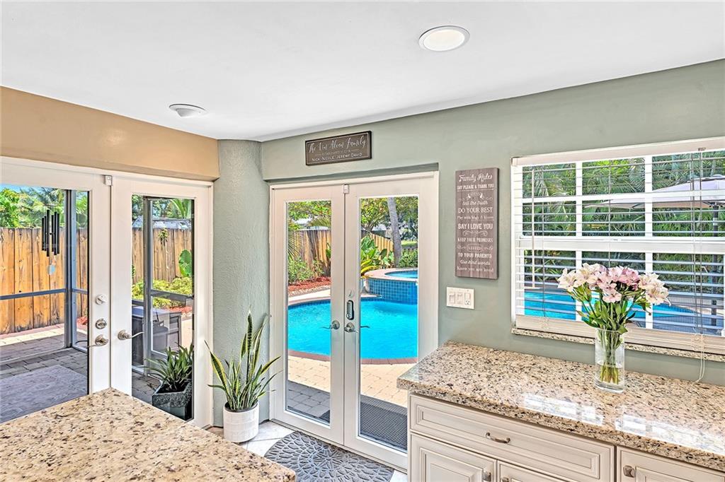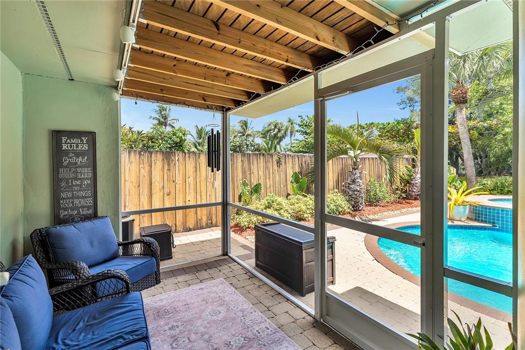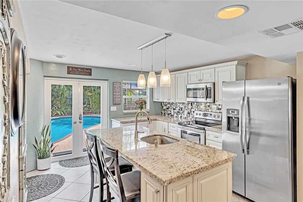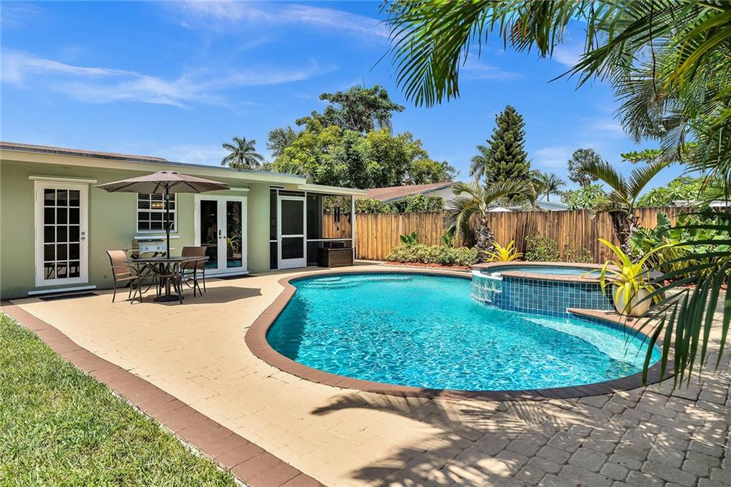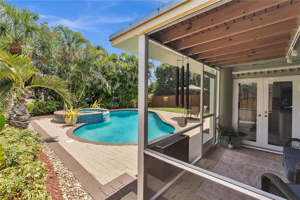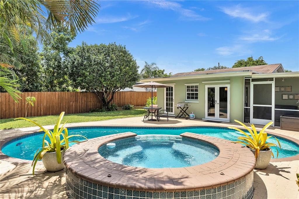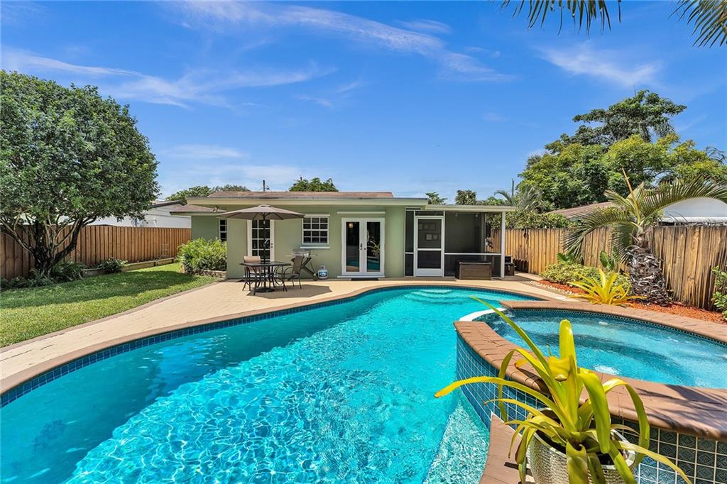 Welcome to this well maintained pool/canal home in Riverland. Remodeled in 2014, features include stainless steel appliances, refrigerator (2020), granite countertops, kitchen island with stools, tile flooring throughout, laundry room. Exterior features include screened patio, chlorine pool with hot tub, pool heater, fenced yard (2017), tented for termites (2020), flat roof (2014), impact panels for all openings and on canal with ocean access (one fixed bridge). Garage was converted to add 3rd bedroom and can be converted back. Located near the airport, beaches, shopping and restaurants make this a great personal home or Airbnb property!! All or part of the existing furniture can be included in the sale.