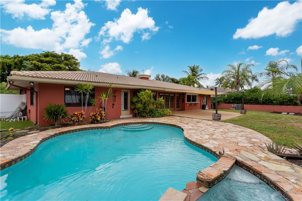 One of the largest lots in prestigious Santa Barbara Estates. Spacious 4/2 open floor plan made for entertaining! Large pool with spa with lots of yard on this corner lot, 2-car over-sized garage with storage room and attic. All cedar-lined closets. All hurricane-impact windows except french doors and kitchen. All windows have shutters. Electric wiring (breakers) replaced in 2019. New dishwasher, refrigerator, washer and dryer in 2022 and new A/C and gas pool heater this year! Underground cast-iron pipes on east side of house replaced in 2013. Roof replaced in 2009. Awesome location east of Federal within walking distance to the beach, restaurants, Pompano Beach Fishing Village. Pier and more! This home won't last long - it's a one of a kind find! New architectural plans available.