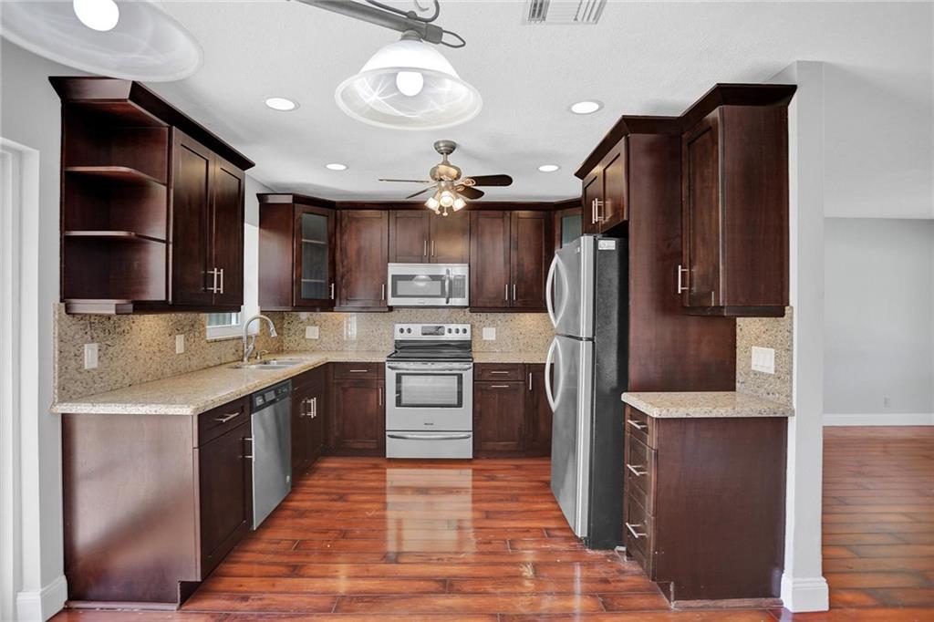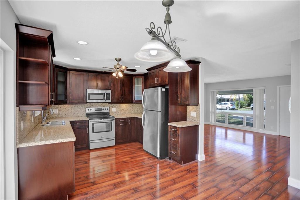 SERIOUS SELLER! HUGE REDUCTION TO $449,000. LET'S MAKE A DEAL! Great home, nothing better in prestigious Garden Isles! Cute, cozy, remodeled and ready to go! You will love the gourmet kitchen with wood cabinets, S/S appliances and granite countertops. Lovely laminate flooring. S-tile roof approximately installed 2003. Huge utility room, plenty of storage and lots of space for installation of a second bathroom in this area. Central air, year approximately 2015. Huge back yard, room for pool or play. Room for anything! Double gates might be perfect to store a boat or RV in the backyard. Freshly painted inside and outside, some hurricane protection (flat panels) in the yard. Circle driveway. NO HOA. Hurry! Property being sold in as-is -condition. Make this your own!