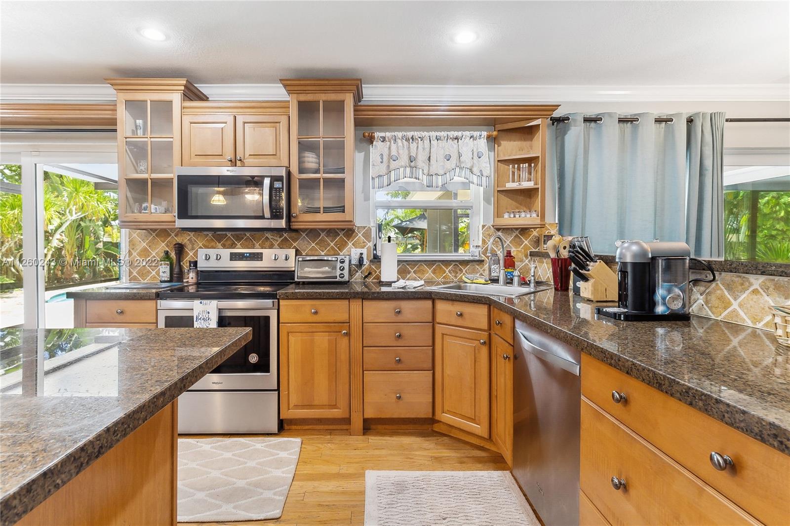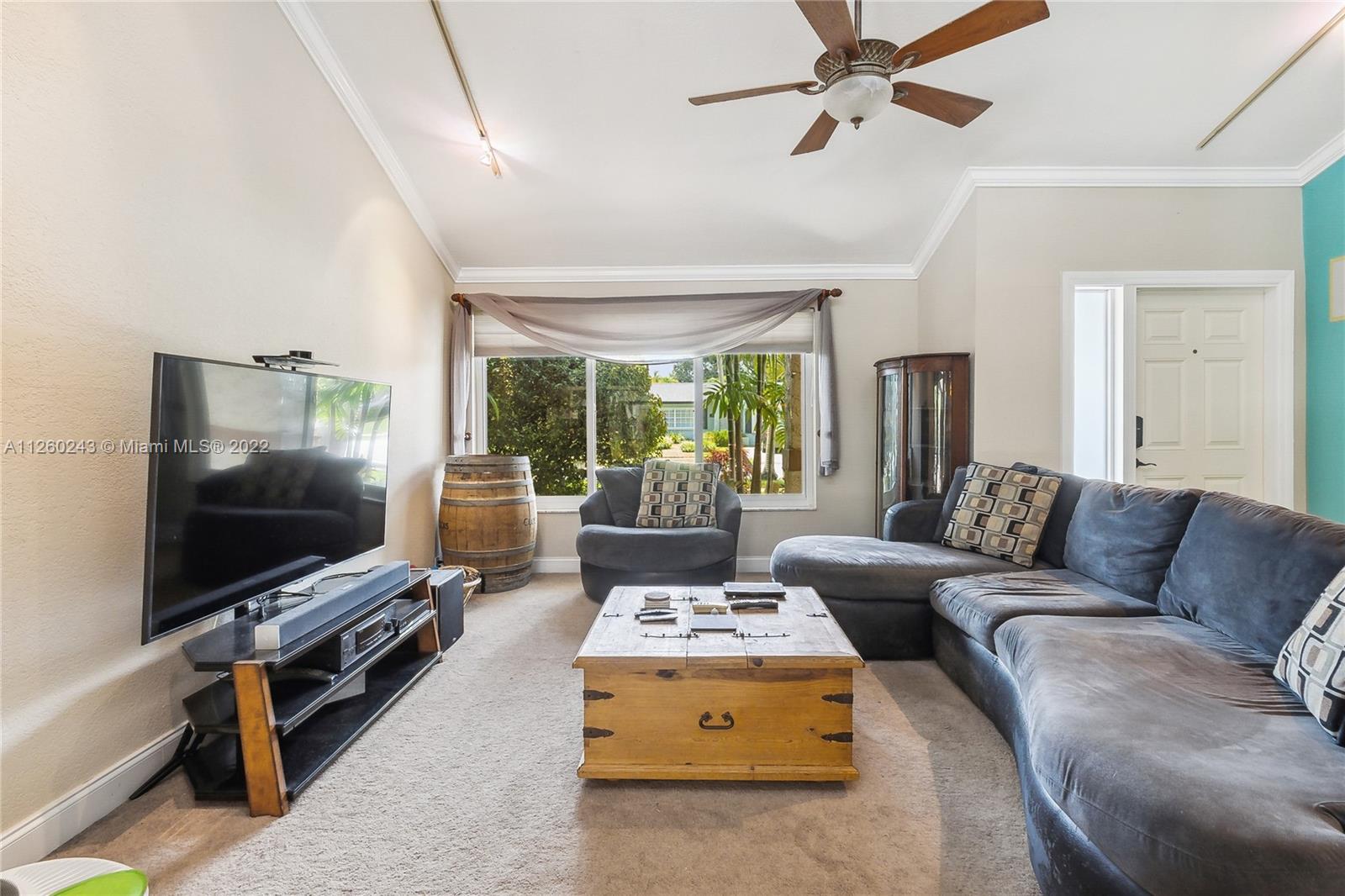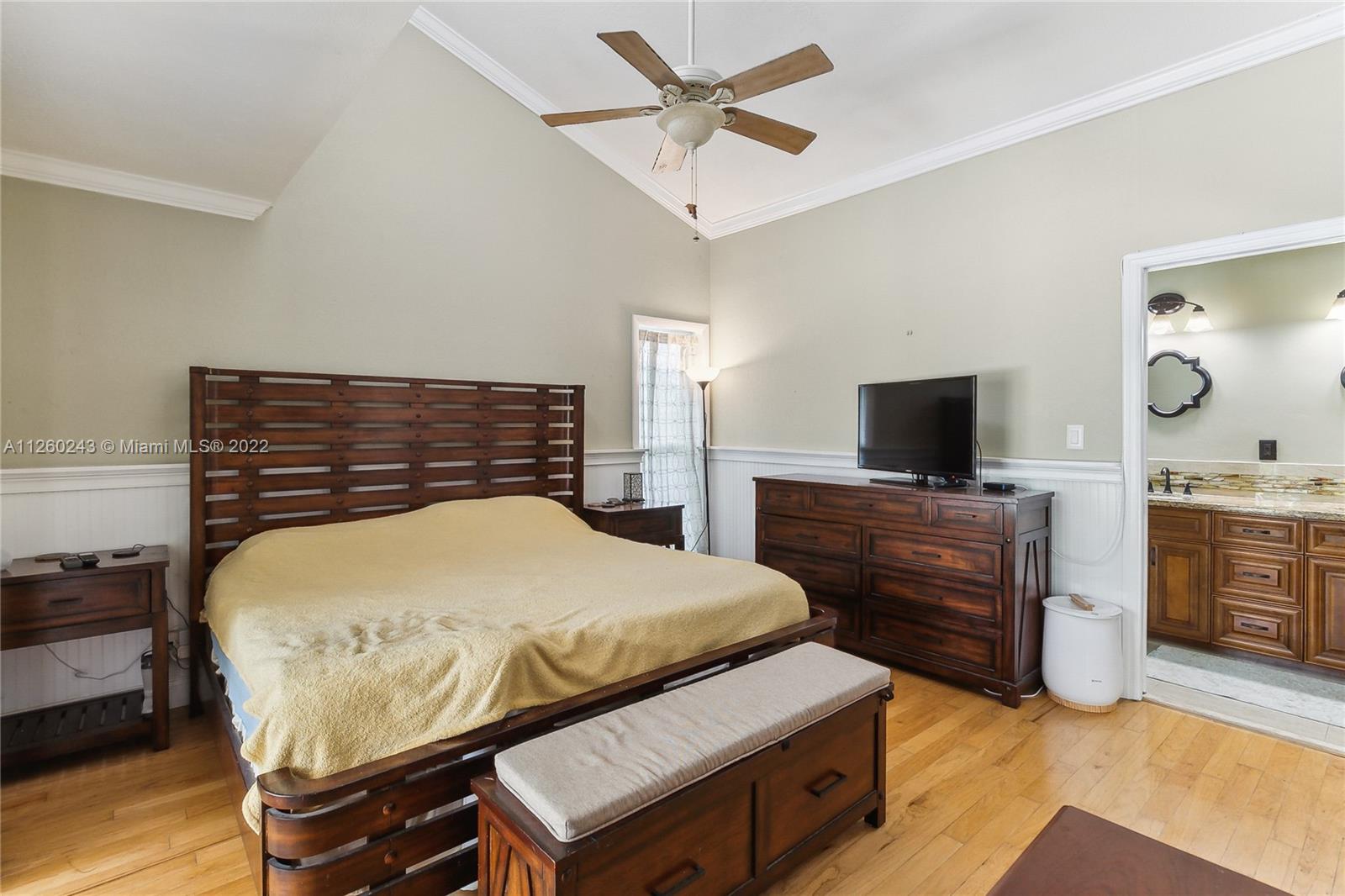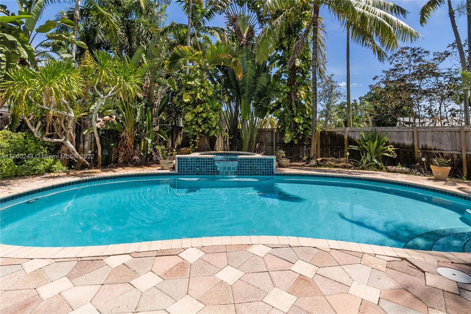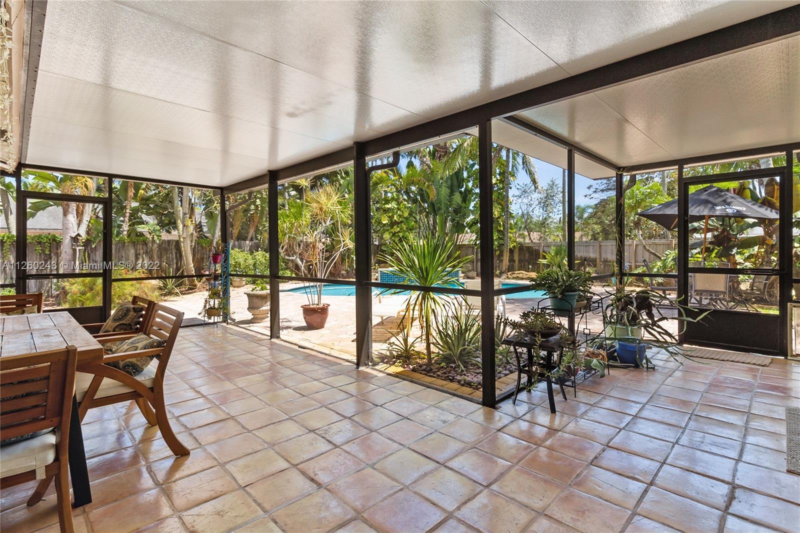 Move-in Ready Bright & Spacious corner lot pool home with impact windows and Vaulted Ceilings, Split bedroom plan. Wood Cabinets, Granite Counters, Stainless Appliances. Built in breakfast nook compliment's the kitchen. Wood Floors in Living Areas, 5" Baseboards and crown molding. Screened-In Patio, Salt System pool W/Hot Tub. Ample Storage Built-In's! Updated Master Bath:Custom Cabinets, Double Sink, Double Shower. Movie Room/2-Car Garage w/AC. Private Fenced yard and ample space. Storage Shed.
