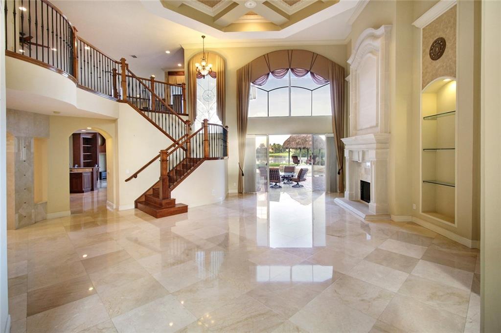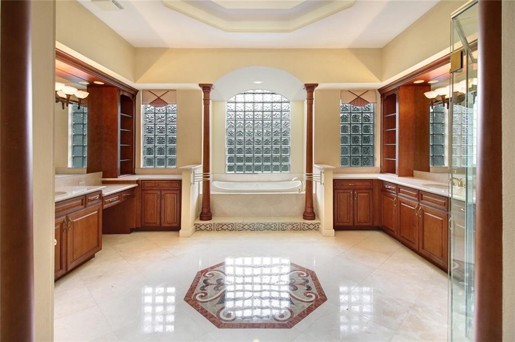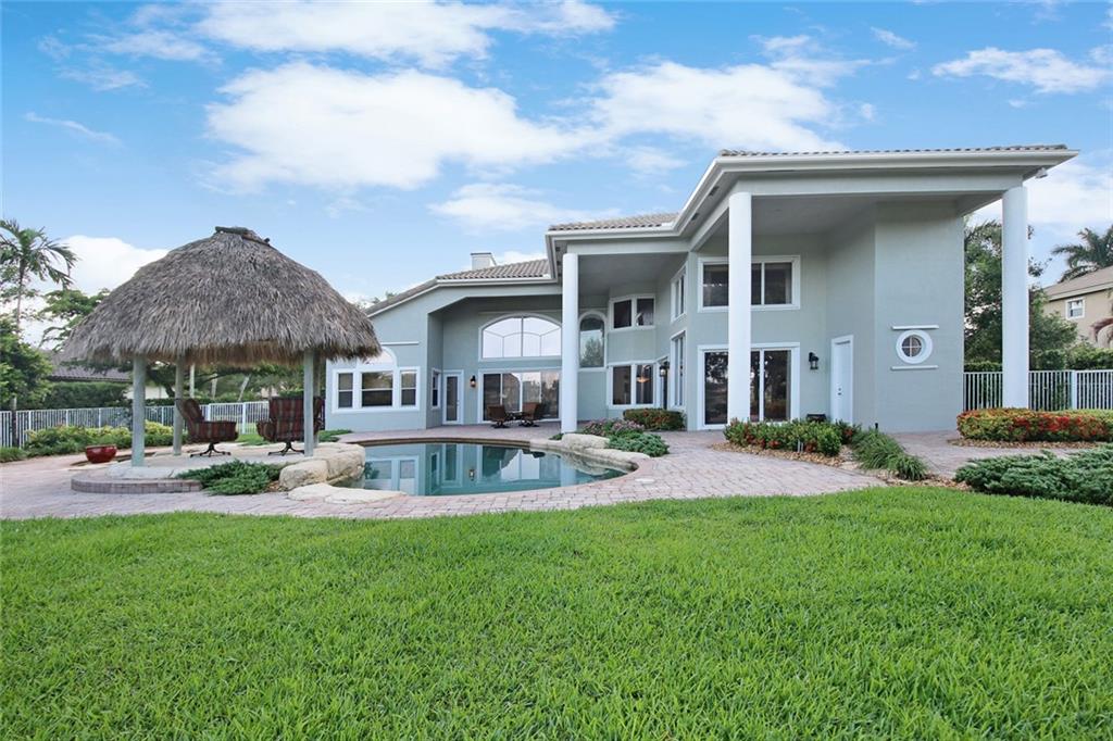 Spectacular Renoir model home on a waterfront lot in the guard-gated community of Long Lake Ranches in an A Rated School District. This 6,022 square foot, 5-bedroom, 6-bathroom residence with 3-car garage is on .8 acre. Enjoy beautiful sunsets with the expansive lakefront & preserve view. The backyard oasis features a heated salt-water pool. The outdoor lounge space features custom tiki hut, huge patio & yard. The office has custom wood cabinetry, and the kitchen is equipped with stainless steel appliances, double ovens, granite countertops, pantry, and island w/generous storage. The master suite contains custom cabinetry w/mini-fridge, elevated sitting room, and master bath with jacuzzi tub. The second floor includes a loft and 3 bedrooms with full bathrooms.