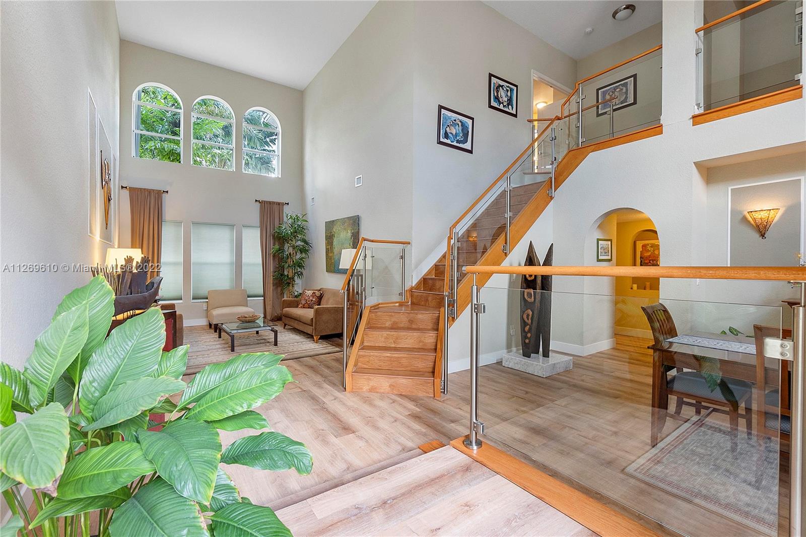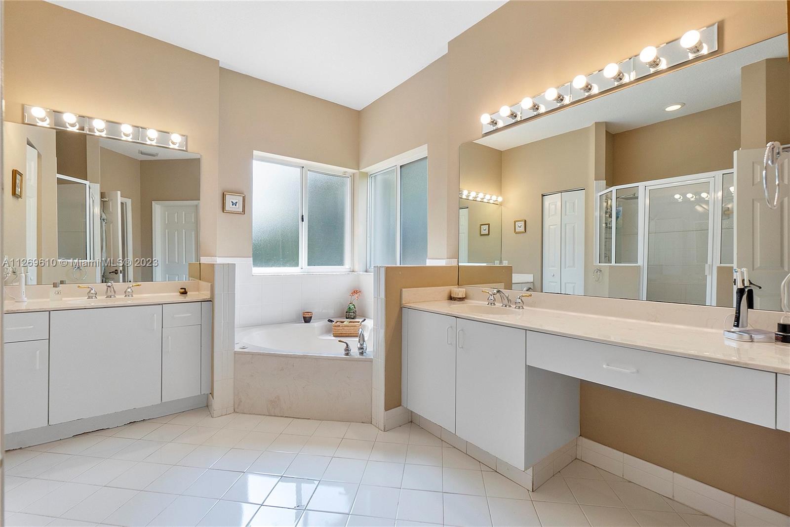 Spectacular luxury home nestled on a plush landscaped oversized corner lot in the Exclusive community of Doral Isles. This well-maintained home features 5 bedrooms and 3 Bathrooms with one bedroom and full bathroom on the first floor. Picturesque windows and doors surround the kitchen, breakfast nook and large family room overlooking a beautiful pool and manicured landscaped patio. Unique staircase with glass and wood combination leads to an oversized master suite with sitting area, ensuite bath with double vanities, Roman tub, shower and bidet. Upstairs loft with desk separates Master from 3 additional bedrooms and updated bathroom. St Croix subdivision is in close proximity to Resort style Clubhouse, Olympic Pool, Cafe, Gym, Tennis, Ballroom, Basketball, Baseball, Soccer, Volleyball.
