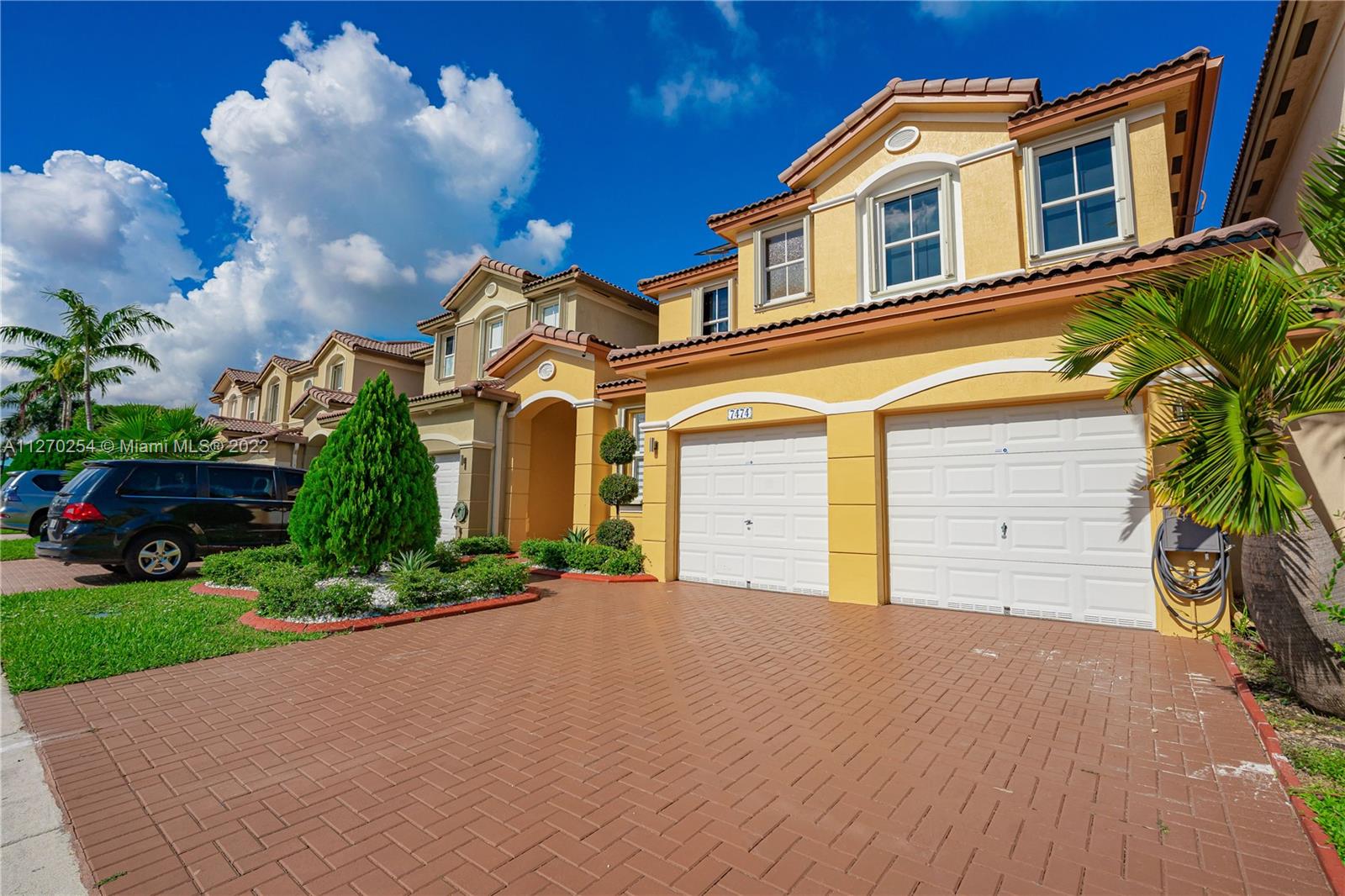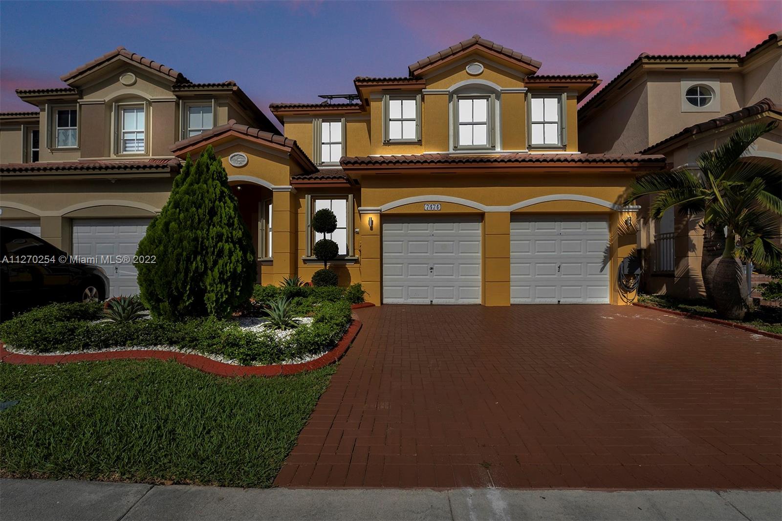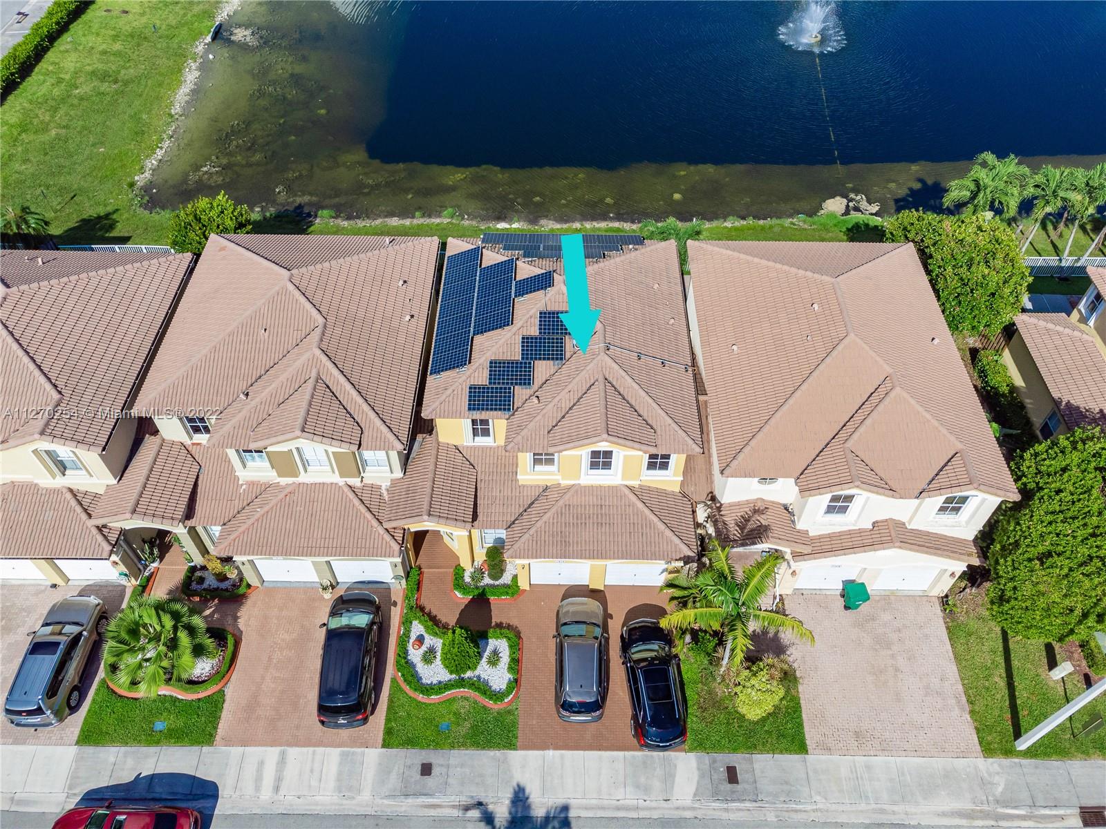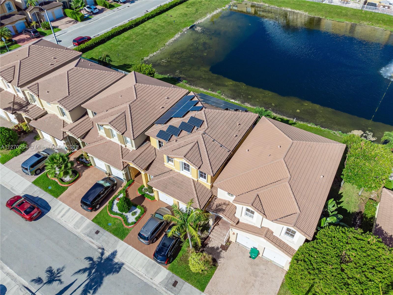 Watch the beautiful sunset from your private fenced lakeview patio, perfect for relaxing or entertaining. This lakeview 2-car garage townhome in the gated community of Polynesian Island of Doral features 4 bedrooms, 3 full baths, with a 1/1 downstairs. Modern kitchen w/SS appliances, spacious living room & dining room with custom zebra blinds. Large master bedroom with his & hers walk-in closets, dual sinks, hot tub & separate shower. One of the bedrooms was made into a huge custom closet. Washer & dryer upstairs too. This house also has Solar Panels! Buyer will pay low monthly FPL bill. Amenities include: swimming pools, clubhouse, tennis court, BB court, gym, & kids playground.