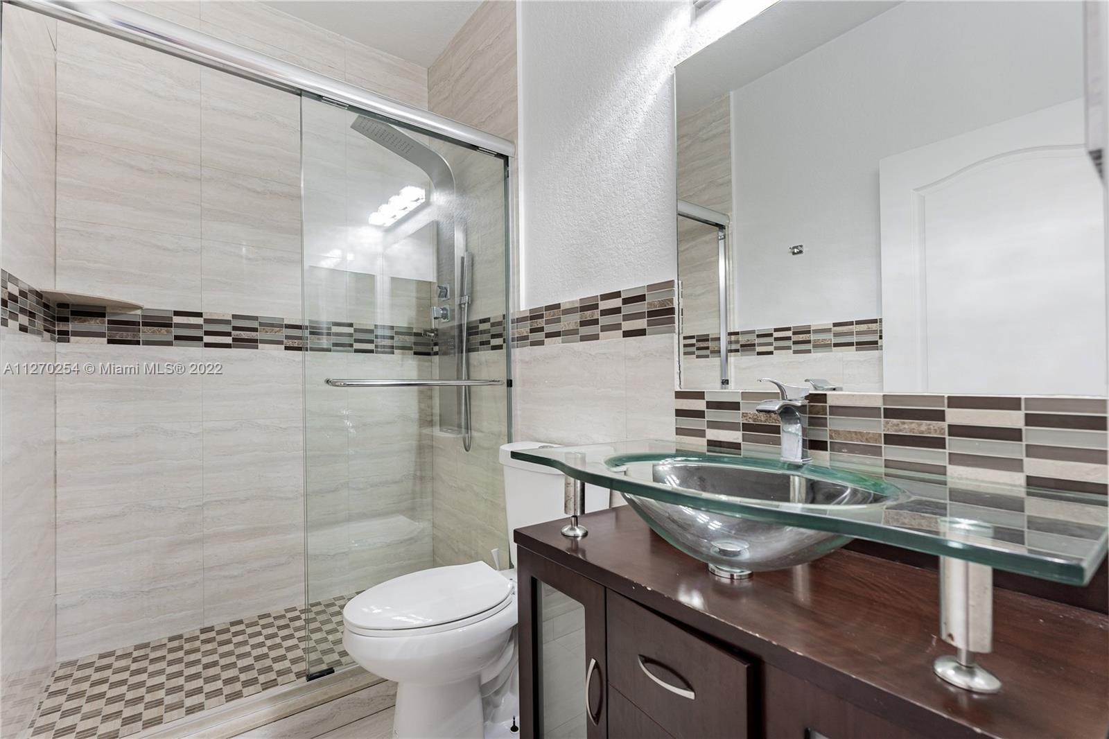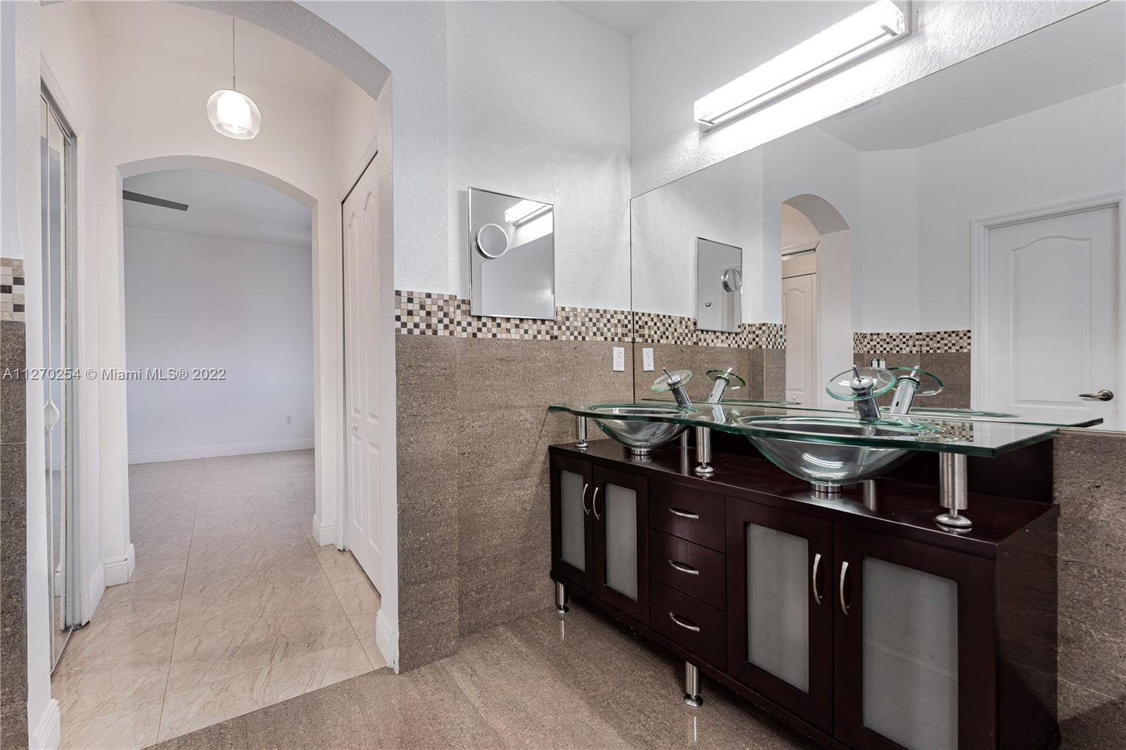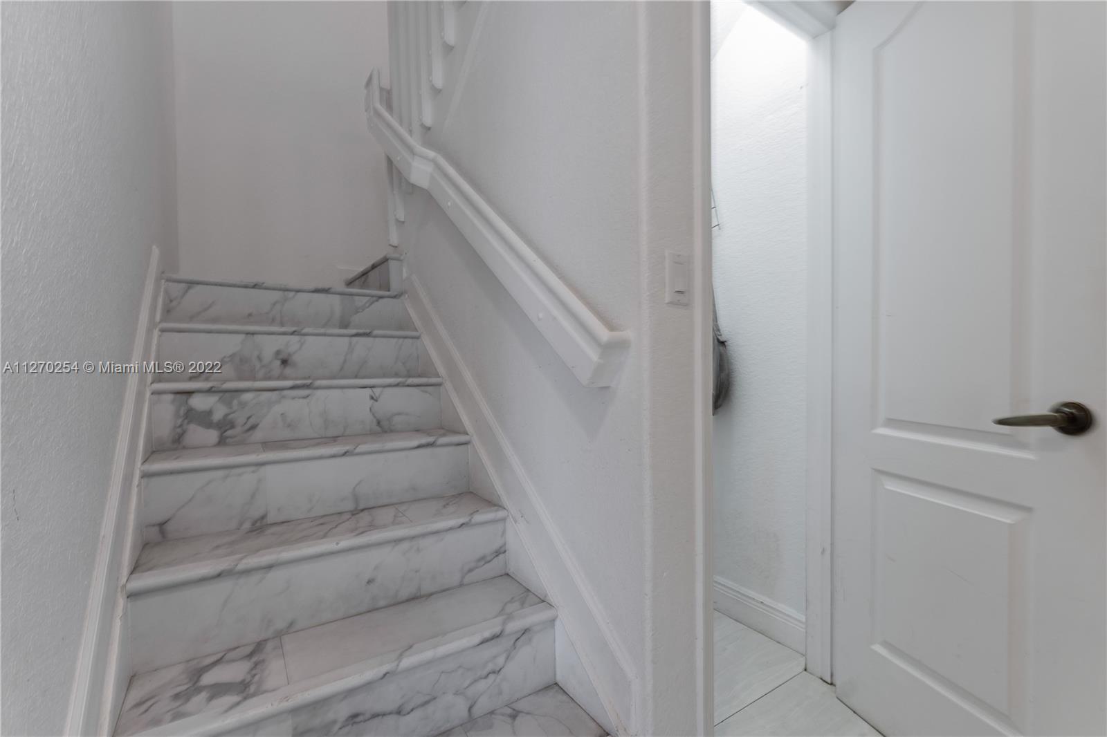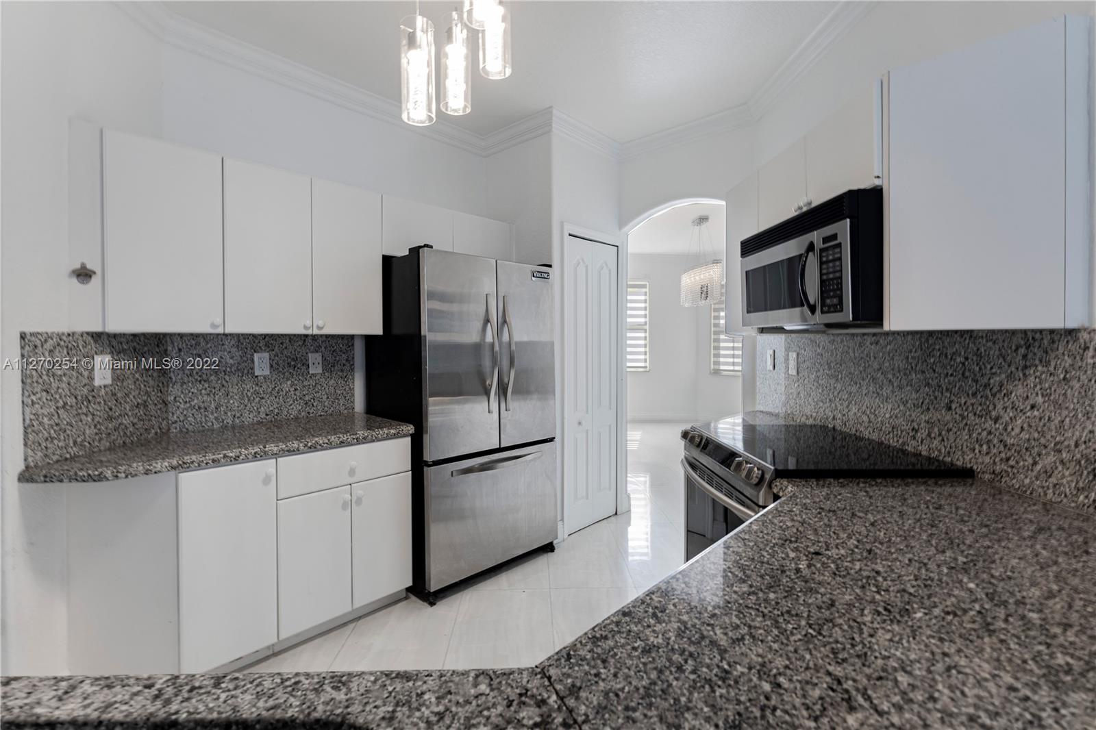 Watch the beautiful sunset from your private fenced lakeview patio, perfect for relaxing or entertaining. This lakeview 2-car garage townhome in the gated community of Polynesian Island of Doral features 4 bedrooms, 3 full baths, with a 1/1 downstairs. Modern kitchen w/SS appliances, spacious living room & dining room with custom zebra blinds. Large master bedroom with his & hers walk-in closets, dual sinks, hot tub & separate shower. One of the bedrooms was made into a huge custom closet. Washer & dryer upstairs too. This house also has Solar Panels! Buyer will pay low monthly FPL bill. Amenities include: swimming pools, clubhouse, tennis court, BB court, gym, & kids playground.