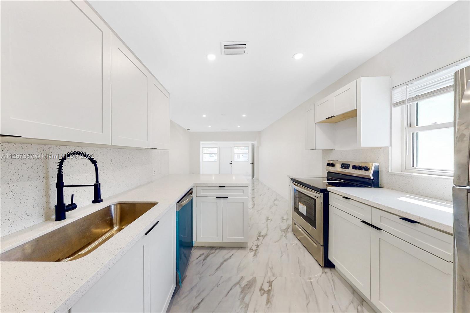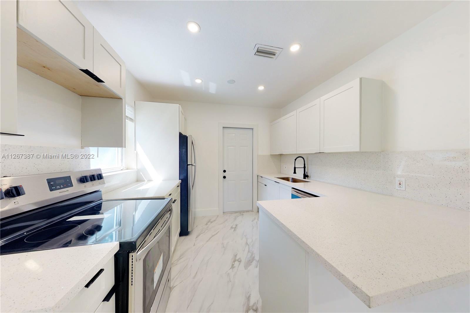 Come see this Renovated 3-bedroom, 2-bathroom home in desirable Hollywood! Move-in Ready with features that include eat-in kitchen with quartz countertop, stainless steel appliances, recess lighting throughout, dual sinks and walk-in closet in the master. Enjoy the private and fenced backyard, which has room for a pool, and includes a storage shed. Minutes away from Hardrock Stadium, beaches, shopping, and major expressways. No HOA!