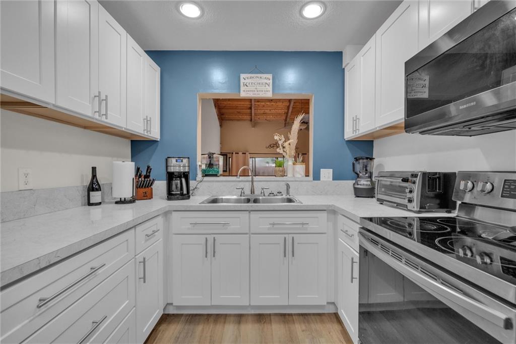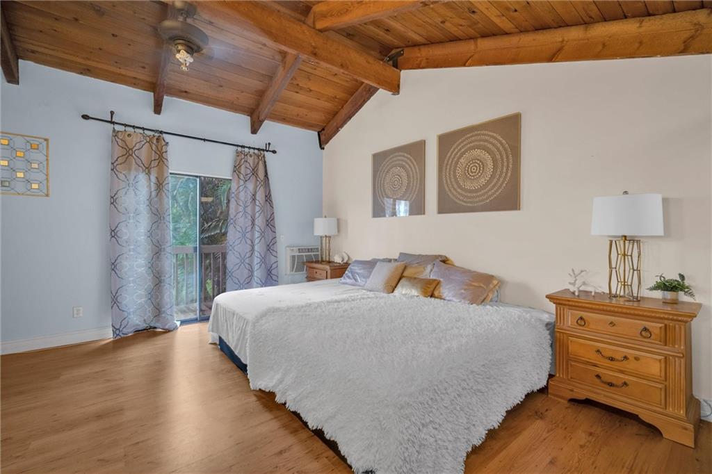 Escape to lovely loft living in this beautiful Davie two story town home located on the lush green golf course. Home features newer roof with vaulted ceilings, newer AC & water heater, wood look laminate floors, updated kitchen with SS appliances, indoor laundry with full size washer & dryer, fenced in paved patio backs to the golf course and includes shed. Additional fenced front terrace accessible from main living area. Main level features 1 bedroom. Flow upstairs to the spacious primary master suite featuring two walk-in closets and your own private balcony where you see nothing but the green. Centrally located near the Tower Shops with plenty of shopping, restaurants & entertainment. Easy access to highways.