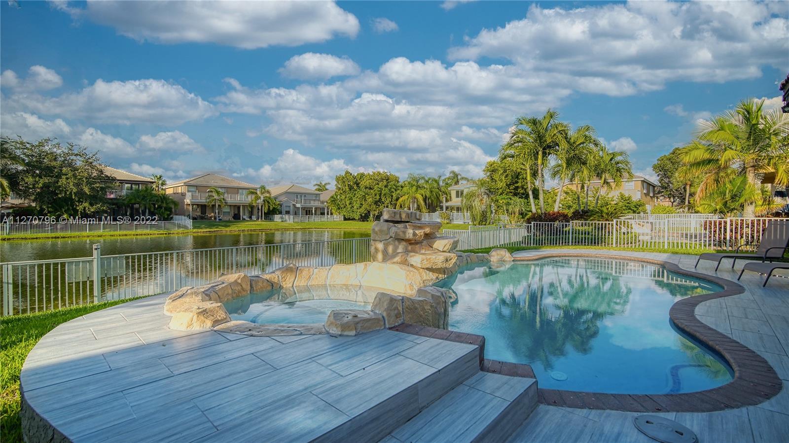 BIG OPPORTUNITY TO BUY A BEAUTIFUL RENOVATED HOUSE TO MOVE IN NOW! High ceiling and spacious living area. The open concept kitchen has stainless steel appliances and quartz countertops. 1 bedroom and full bathroom downstairs and 3 large bedrooms upstairs, master has a sitting room and large bathroom with 2 commodes, 2 separate sinks and large shower. All bathrooms have been recently renovated, stainless steel handrail. Beautiful outdoor area with pool with beautiful lake view, covered patio and outdoor bbq, garage for 2 cars.
