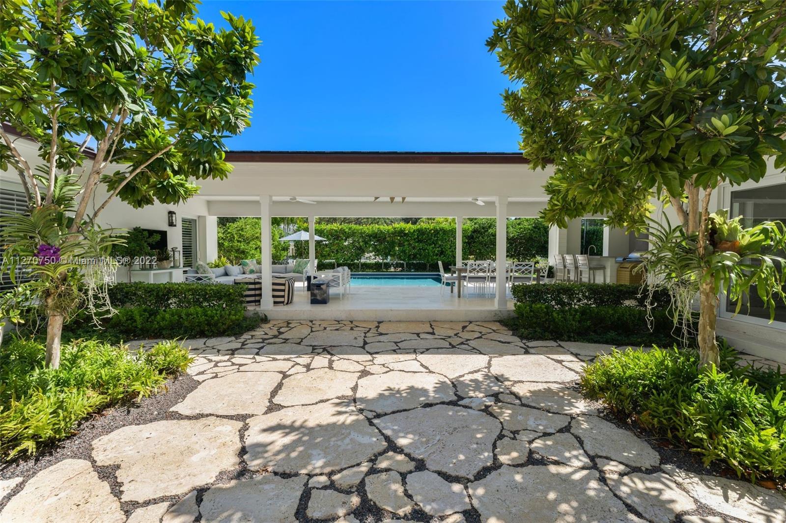 This beautiful contemporary 5,303 Sq. Ft. home with 5 bedrooms and 5.5 bathrooms was designed around spectacular outdoor areas showcasing 85 Ft of waterfront and making this home absolutely perfect for entertaining. A gorgeous great room includes the formal living and dining areas and its open concept design and sliding glass doors offer views of the sparkling pool, covered terrace and spacious deck with a summer kitchen. The chef's kitchen opens to the family room and it features a wet bar and mystery white marble countertops and comfortable eat-in island. The main suite has custom-designed walk-in closets and a luminous bathroom with double vanities and frameless shower. An impeccably designed and peaceful retreat close to restaurants, shops, parks and a selection of premier schools.