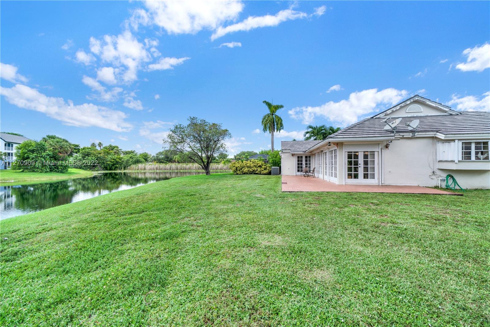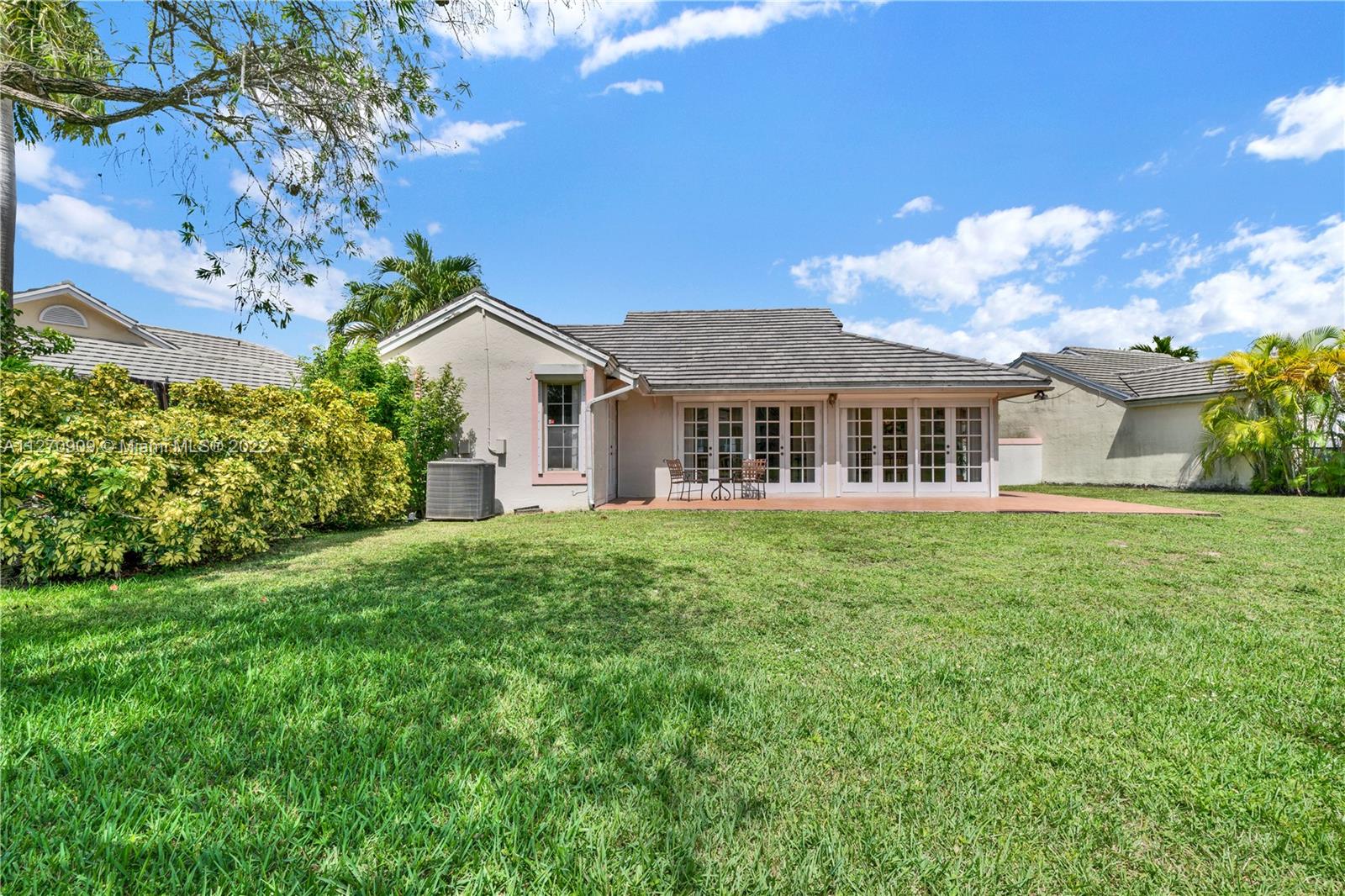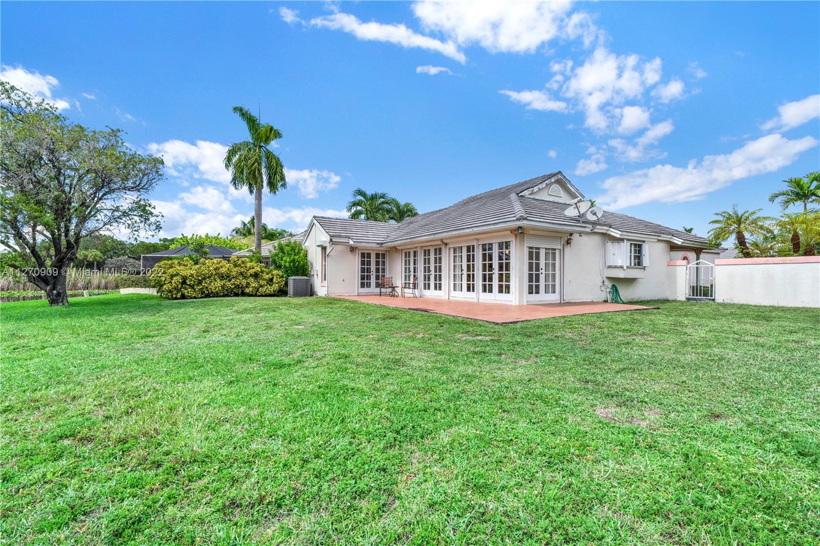 Welcome to our lake house! Imaging sipping a hot cup of coffee enjoying the serene views from the lake in a very private and large lot. This rare one story, 3 bedrooms and 2 baths house in desirable Doral Woods, features a high ceiling social area, surrounded by glass doors that brings the natural light, all around the house. A two car enclosed garage and four extra spots to park yours or your guesses cars, is a plus. This quiet and very exclusive community, offers you the use of it private pool, but you will also be allow to play tennis, golf, and enjoy the resort style amenities of Doral Park Country Club. Restaurants, pool, gym, playground and more. This split , 2,400 sqft. layout, makes this property a very comfortable, cozy and enjoyable one. Come see it !