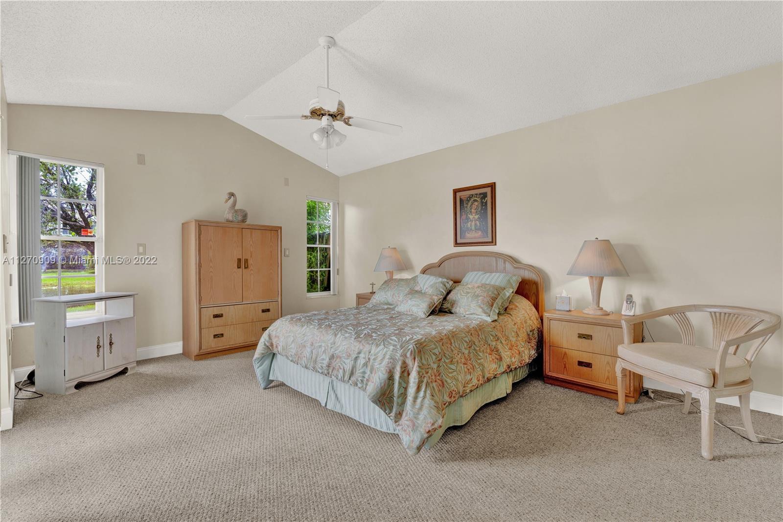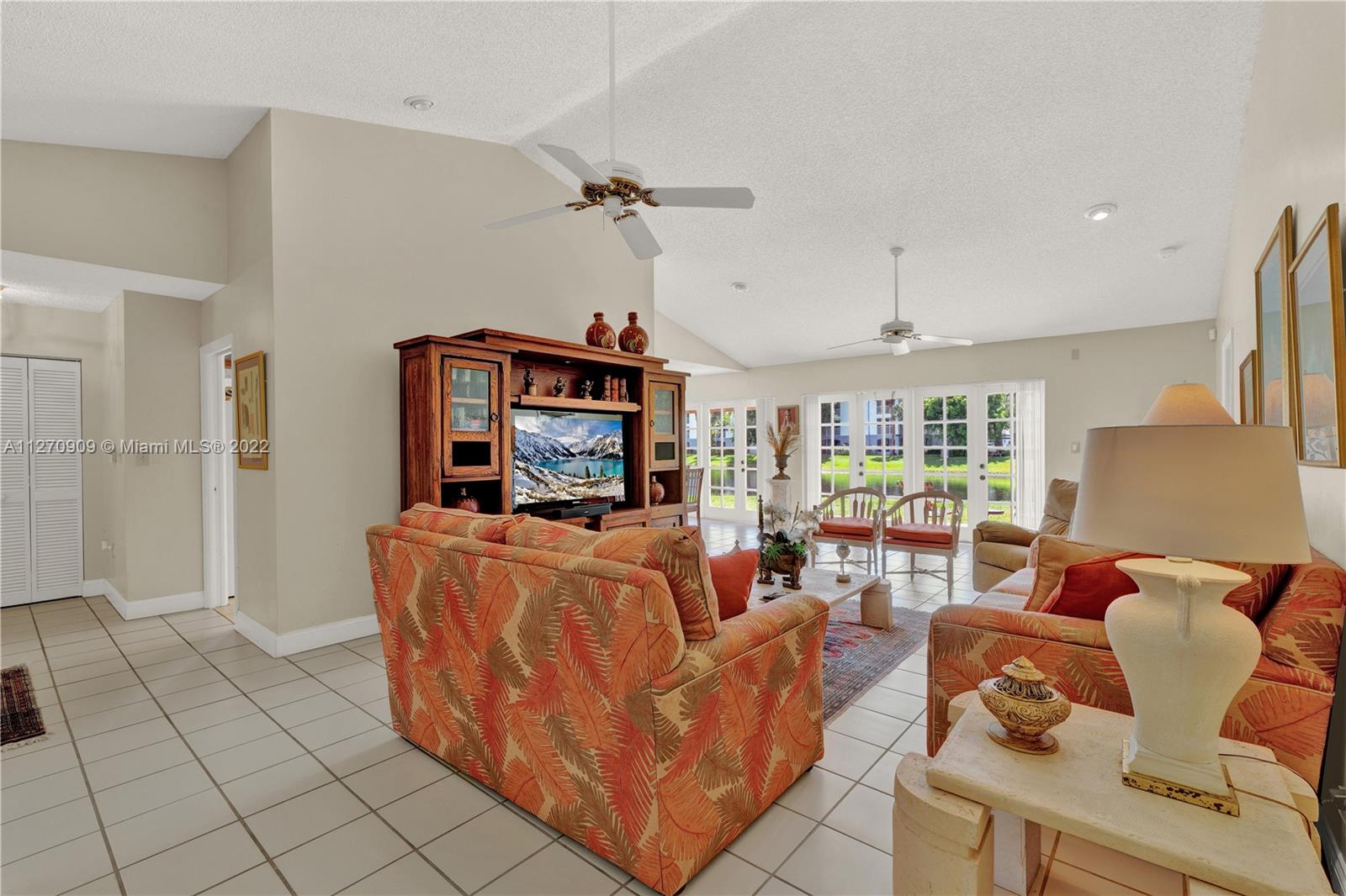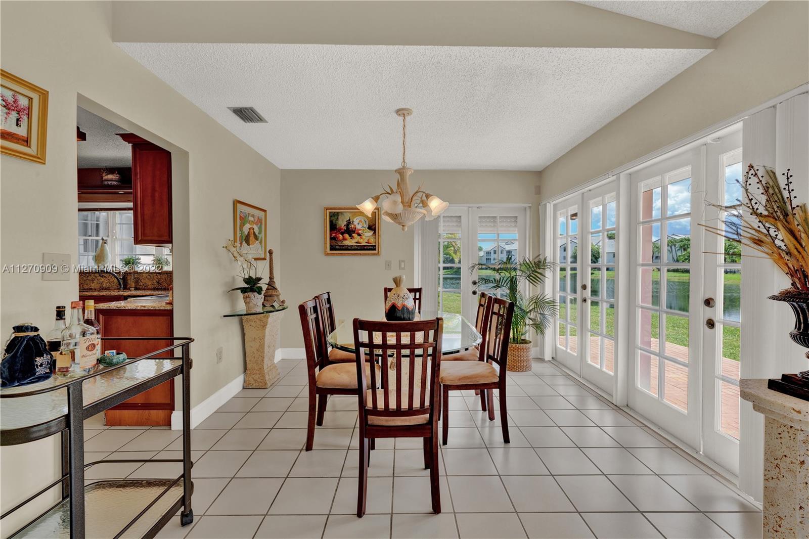 Welcome to our lake house! Imaging sipping a hot cup of coffee enjoying the serene views from the lake in a very private and large lot. This rare one story, 3 bedrooms and 2 baths house in desirable Doral Woods, features a high ceiling social area, surrounded by glass doors that brings the natural light, all around the house. A two car enclosed garage and four extra spots to park yours or your guesses cars, is a plus. This quiet and very exclusive community, offers you the use of it private pool, but you will also be allow to play tennis, golf, and enjoy the resort style amenities of Doral Park Country Club. Restaurants, pool, gym, playground and more. This split , 2,400 sqft. layout, makes this property a very comfortable, cozy and enjoyable one. Come see it !