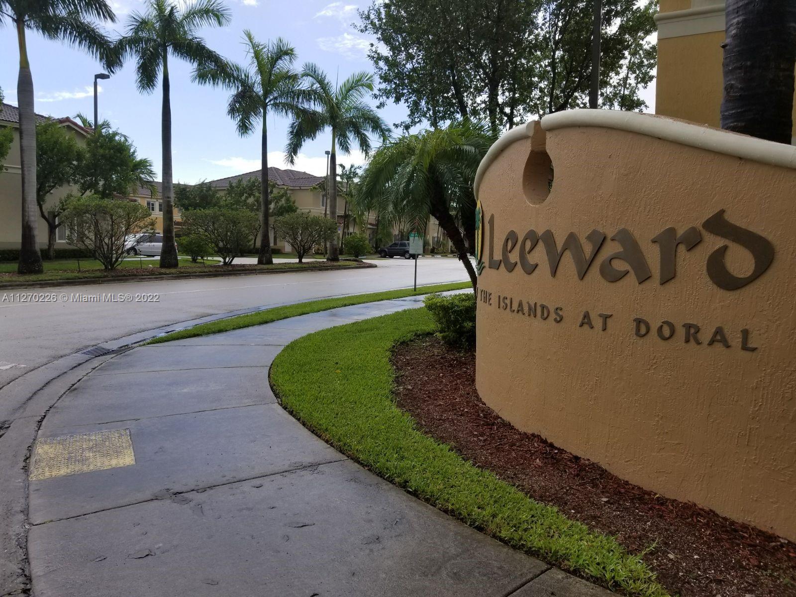 Amazing, well located and spacious 3 bedroom /2 bathroom/ 1 half bathroom townhouse in Leeward Islands at Doral. This Townhome features a great open kitchen with a family room, living room & dining. Private brick patio perfect for entertaining. It has access to great amenities through the Island at Doral Clubhouse with a large pool, sauna, tennis courts, gym, basketball, jacuzzi, playground, and much more. Walking distance to Ronald Reagan H.S, Publix, and Midtown Doral. Close to major highways and malls. Open community. Assigned parking in front of the unit. MUST SEE!