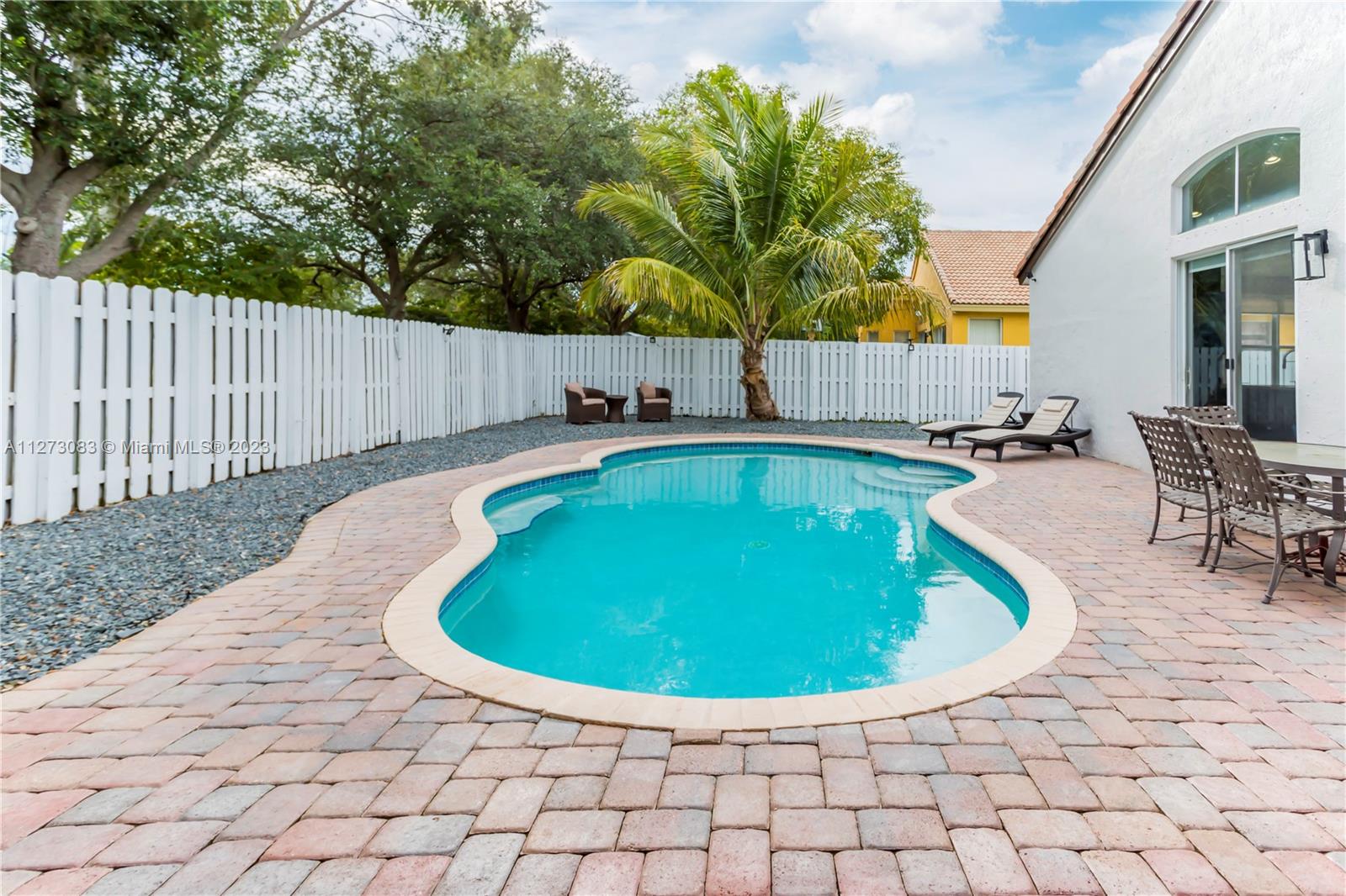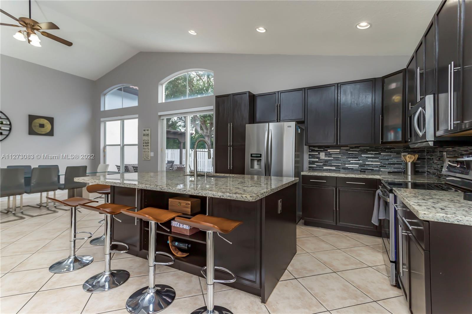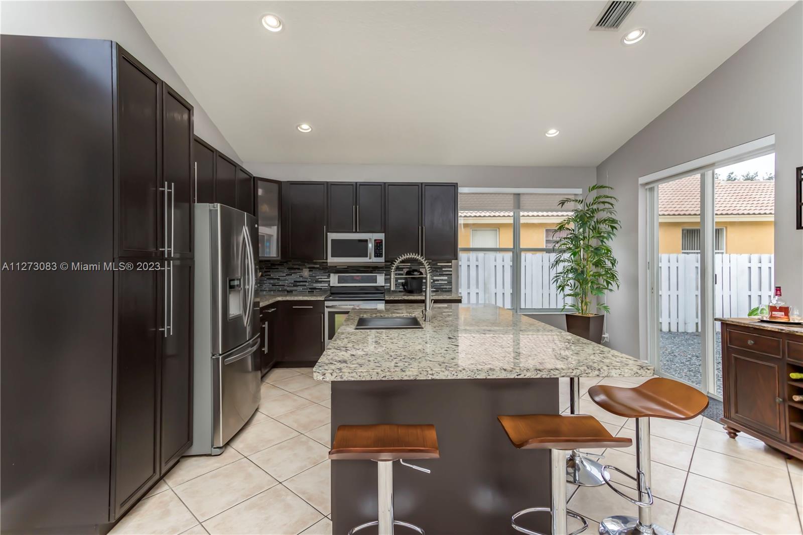 GORGEOUS THREE BEDROOM, TWO AND A HALF BATH, ONE STORY HOME WITH A ***SALTWATER POOL*** IN THE RESORT STYLE COMMUNITY OF MONACO COVE AT SUNSET LAKES. THIS HOME FEATURES TILE FLOORING IN THE MAIN LIVING AREAS, WOOD LAMINATE FLOORING IN ALL BEDROOMS, AND VOLUME CEILINGS THROUGHOUT. THE LARGE OPEN KITCHEN IS COMPLETE WITH AN EXTENDED OVERSIZED ISLAND WITH SEATING, GRANITE COUNTERTOPS, DECORATIVE BACKSPLASH, MODERN CABINETRY & STAINLESS STEEL APPLIANCES. THE PRIVATE FENCED-IN PRIVATE BACKYARD HAS A LARGE SALTWATER POOL & A HUGE PERGOLA MAKING THIS THE PERFECT PLACE TO RELAX AND ENTERTAIN. ***AC IS 3 YEARS NEW & WATER HEATER WAS REPLACED IN 2022!***