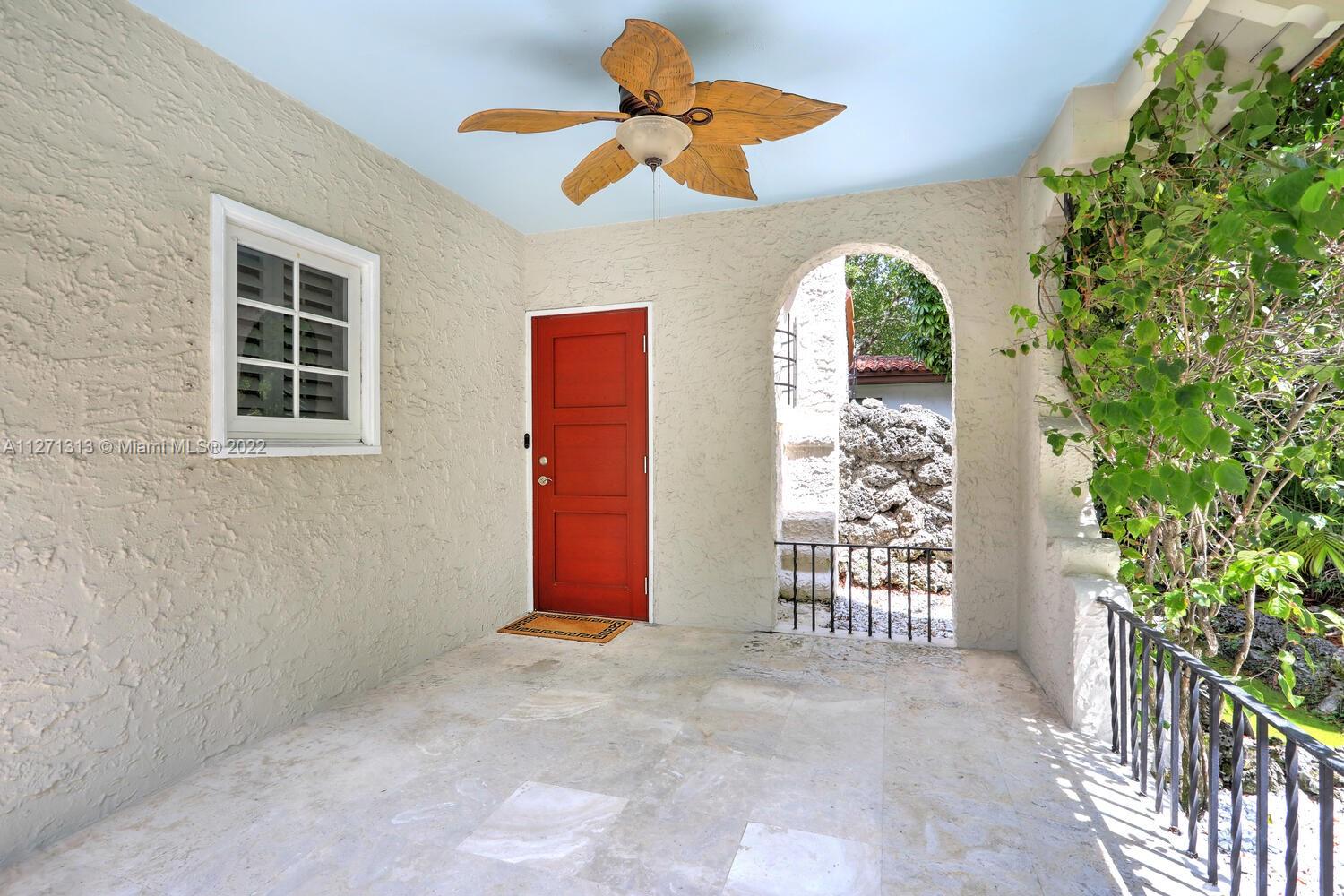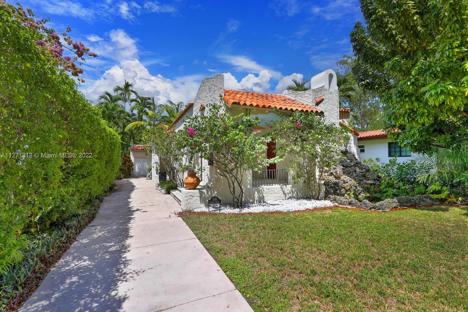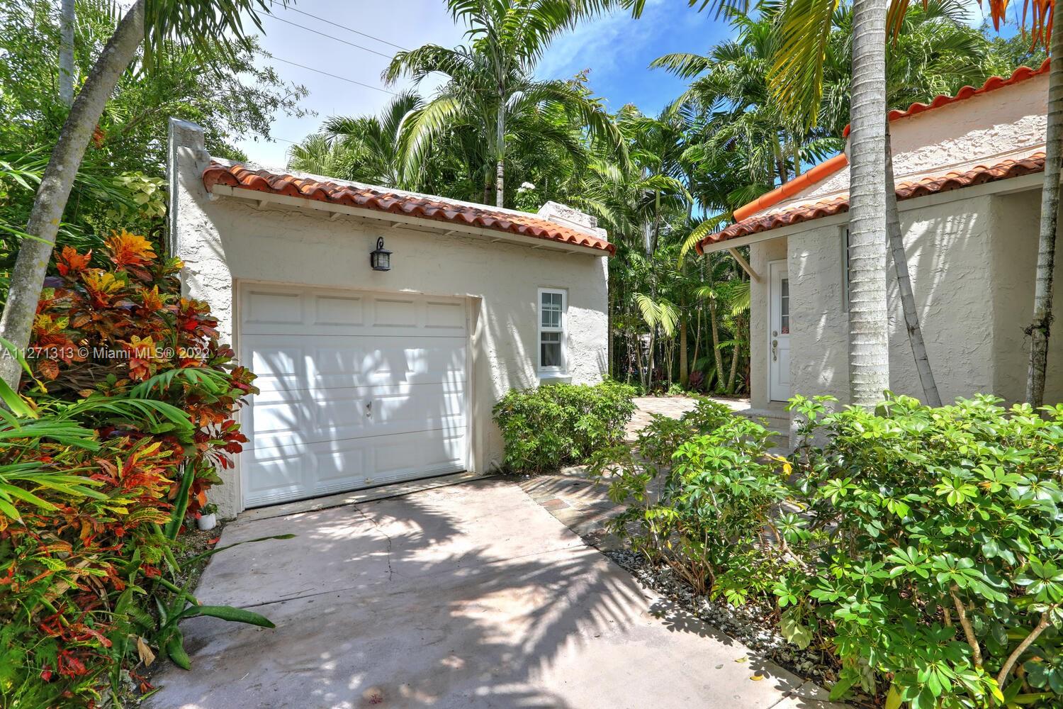 Cozy and charming remodeled Old Spanish 3/2 (main house) in impeccable condition and located within walking distance to Miracle Mile shops, restaurants and Gables business district! Impact windows and doors, plantation shutters throughout, working wood burning fireplace, beautiful wood floors, remodeled galley kitchen, remodeled bathrooms, covered front porch and tropical garden paved patio in the back. A/C only 5 years old and brand new electrical panel. Underground electrical power lines were recently done, all work has been done with proper permits. Detached garage for one car with adjoining laundry room, extra fridge and full bath. Plenty of parking on driveway (easily accommodates 4-5 cars).
