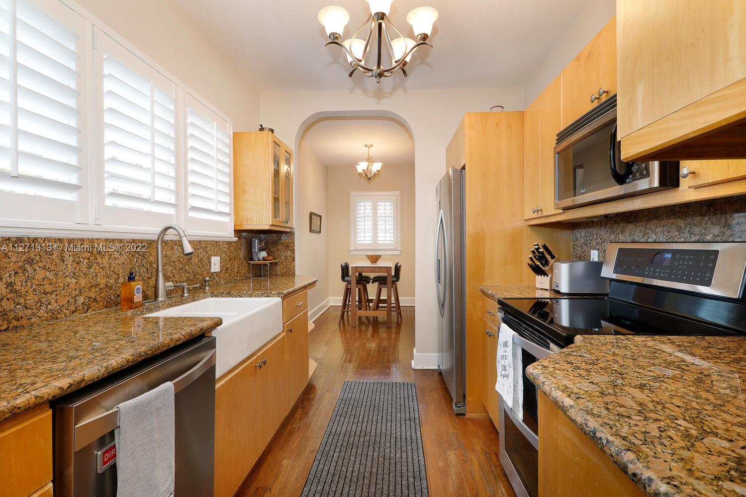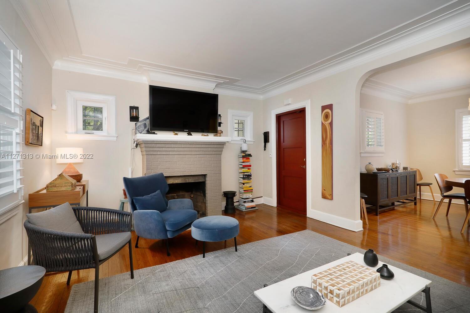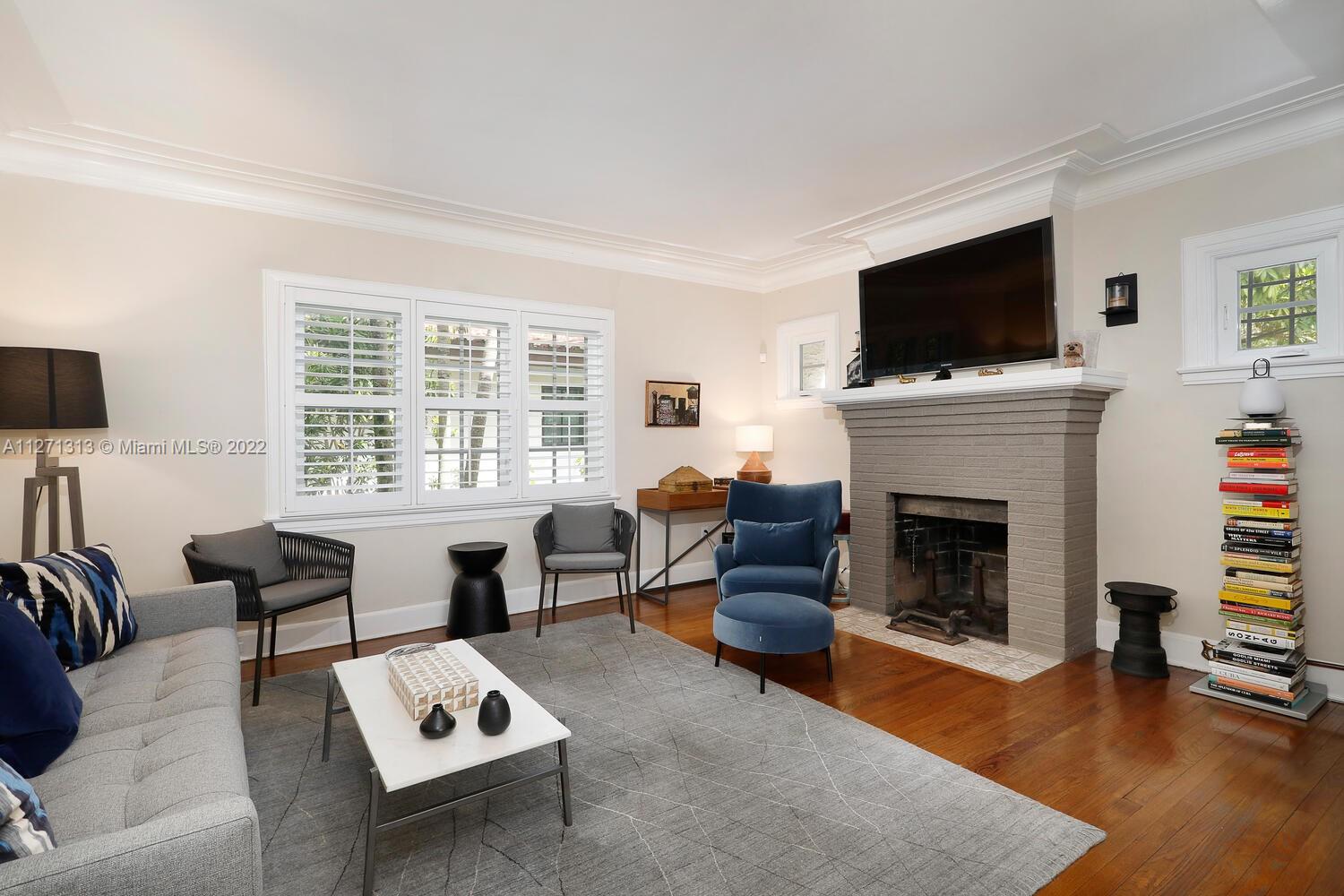 Cozy and charming remodeled Old Spanish 3/2 (main house) in impeccable condition and located within walking distance to Miracle Mile shops, restaurants and Gables business district! Impact windows and doors, plantation shutters throughout, working wood burning fireplace, beautiful wood floors, remodeled galley kitchen, remodeled bathrooms, covered front porch and tropical garden paved patio in the back. A/C only 5 years old and brand new electrical panel. Underground electrical power lines were recently done, all work has been done with proper permits. Detached garage for one car with adjoining laundry room, extra fridge and full bath. Plenty of parking on driveway (easily accommodates 4-5 cars).