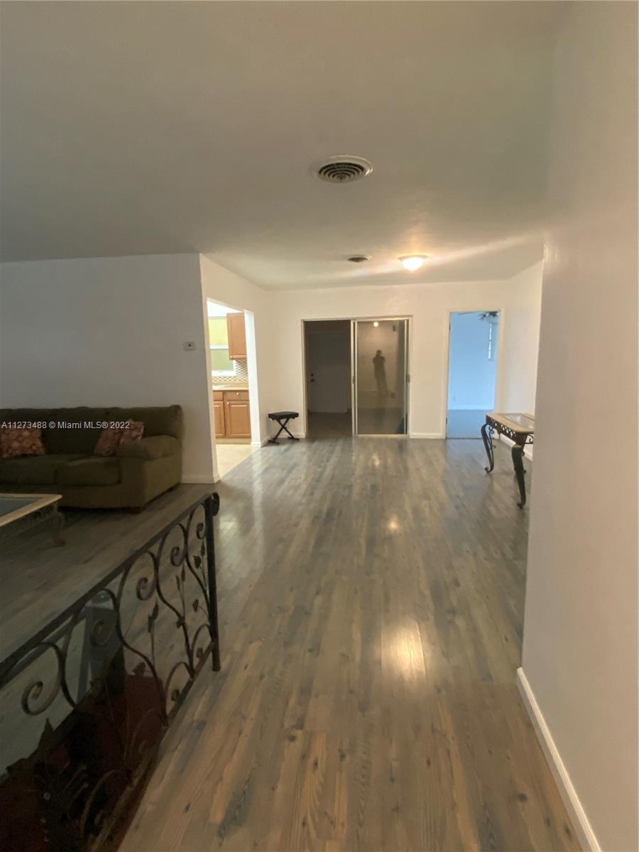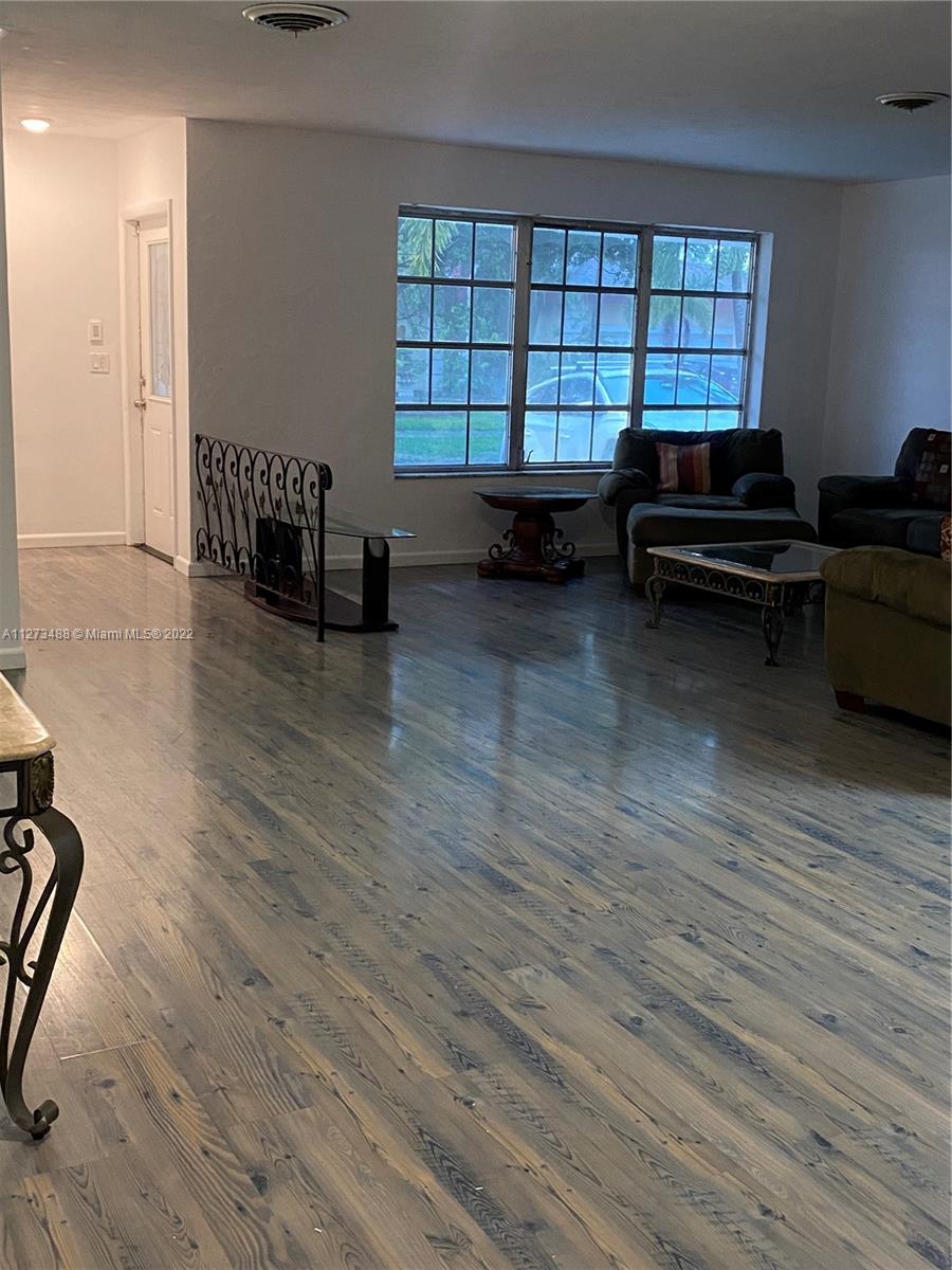LIVE IN THE HEART OF HALLANDALE BEACH. VERY SPACIOUS SINGLE FAMILY HOME, 3/2, WITH AN OVERSIZED FAMILY ROOM ( COULD BE CONVERTED TO A FOURTH BEDROOM), WOOD LAMINATE FLOORS THROUGHOUT, HUGE LIVING/ WITH A FORMAL DINING ROOM, VERY SPACIUOS KITCHEN ( BRAND NEW REFRIGERATOR, AND RANGE OVEN STOVE. HOUSE HAS A SEPARATE LAUNDRY ROOM. CIRCULAR DRIVEWAY WITH A 1 CAR GARAGE. THIS IS A CORNER HOME, WITH AN OVERSIZED LOT. MASTER BEDROOM HAS FRENCH DOORS THAT LEAD OUT TO A WOODEN DECK TO YARD. NO HOA.