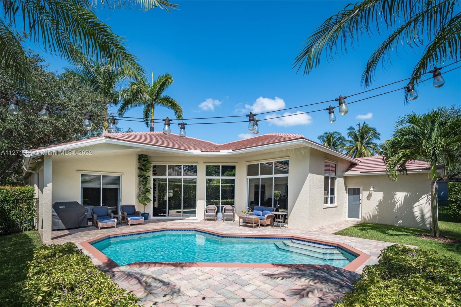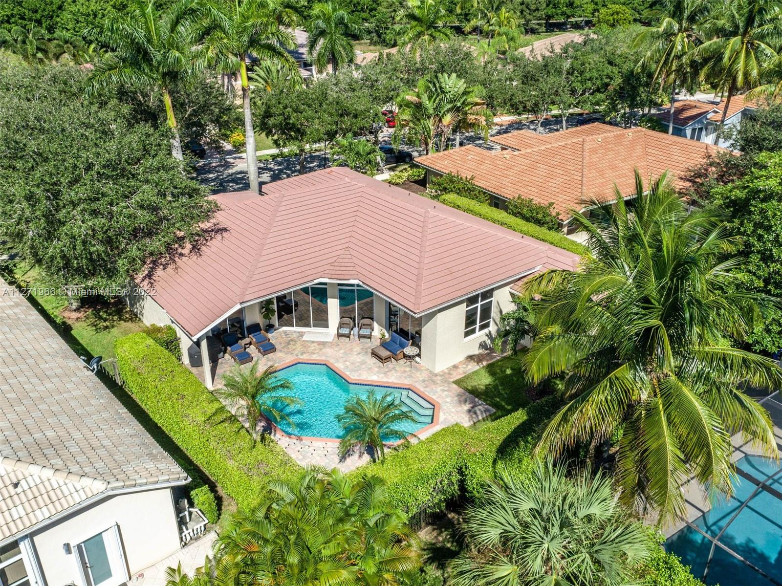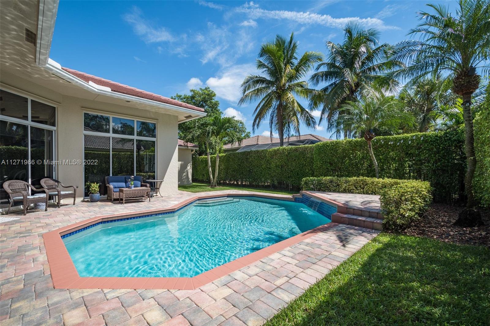 Impeccable and pristine one-story residence with pool in sought after Oak Ridge section of The Ridges in Weston, Southeast Florida. Open, spacious, and bright split floor plan offers 6 bedrooms and 3 baths. Overlooking a private landscape pool and patio area. Numerous features and updates are: Two new A/C units in 2020. Upgraded kitchen with granite countertops, brand new refrigerator and dishwasher. Marble travertine throughout social areas, new wood floors in master bedroom, and new wood laminate flooring in other bedrooms. Vaulted ceilings and crownmolding. House recently painted in & out. Clubhouse with all amenities. Gated community with quick access to city facilities & services through two guarded gates North & West. Walking distance to the best A+ rated schools and Weston library.