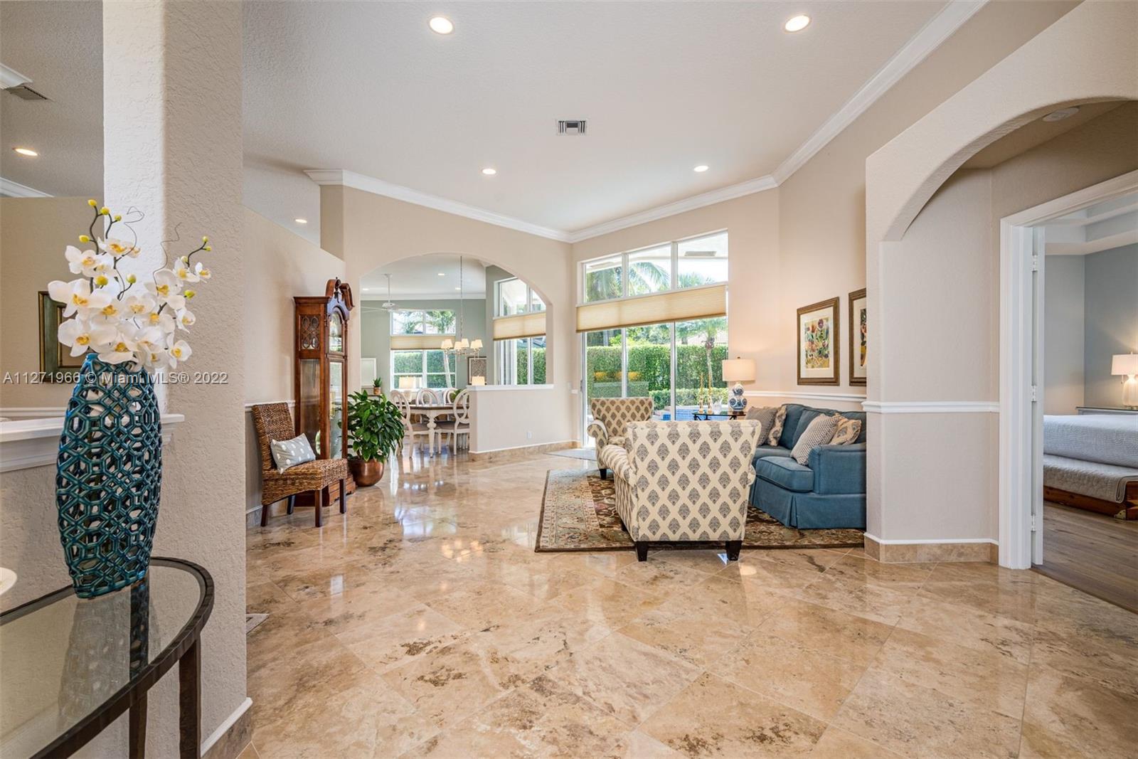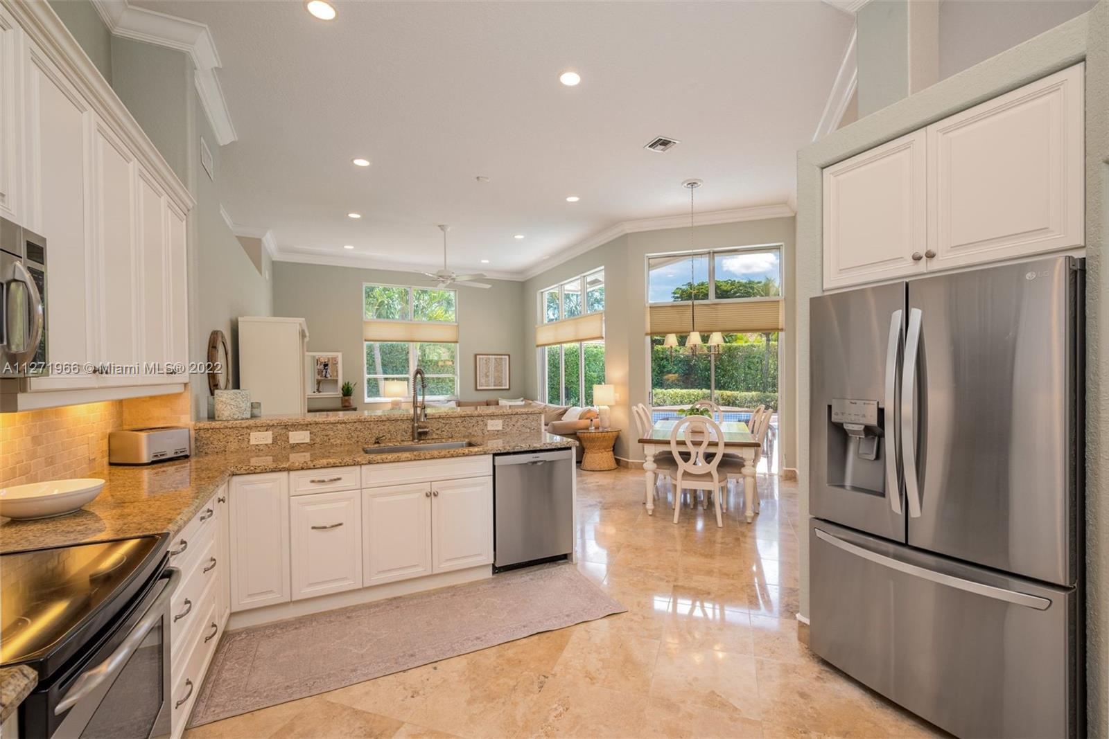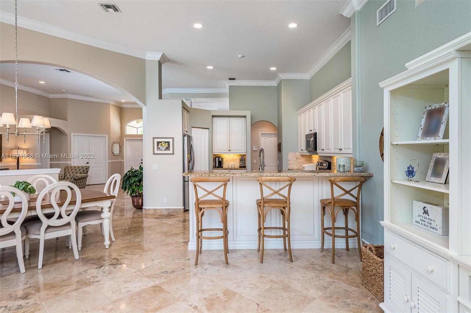 Impeccable and pristine one-story residence with pool in sought after Oak Ridge section of The Ridges in Weston, Southeast Florida. Open, spacious, and bright split floor plan offers 6 bedrooms and 3 baths. Overlooking a private landscape pool and patio area. Numerous features and updates are: Two new A/C units in 2020. Upgraded kitchen with granite countertops, brand new refrigerator and dishwasher. Marble travertine throughout social areas, new wood floors in master bedroom, and new wood laminate flooring in other bedrooms. Vaulted ceilings and crownmolding. House recently painted in & out. Clubhouse with all amenities. Gated community with quick access to city facilities & services through two guarded gates North & West. Walking distance to the best A+ rated schools and Weston library.