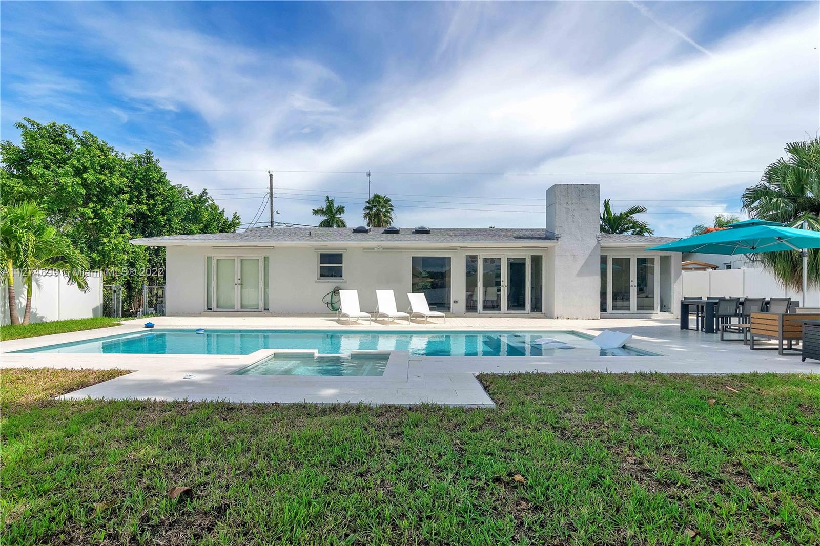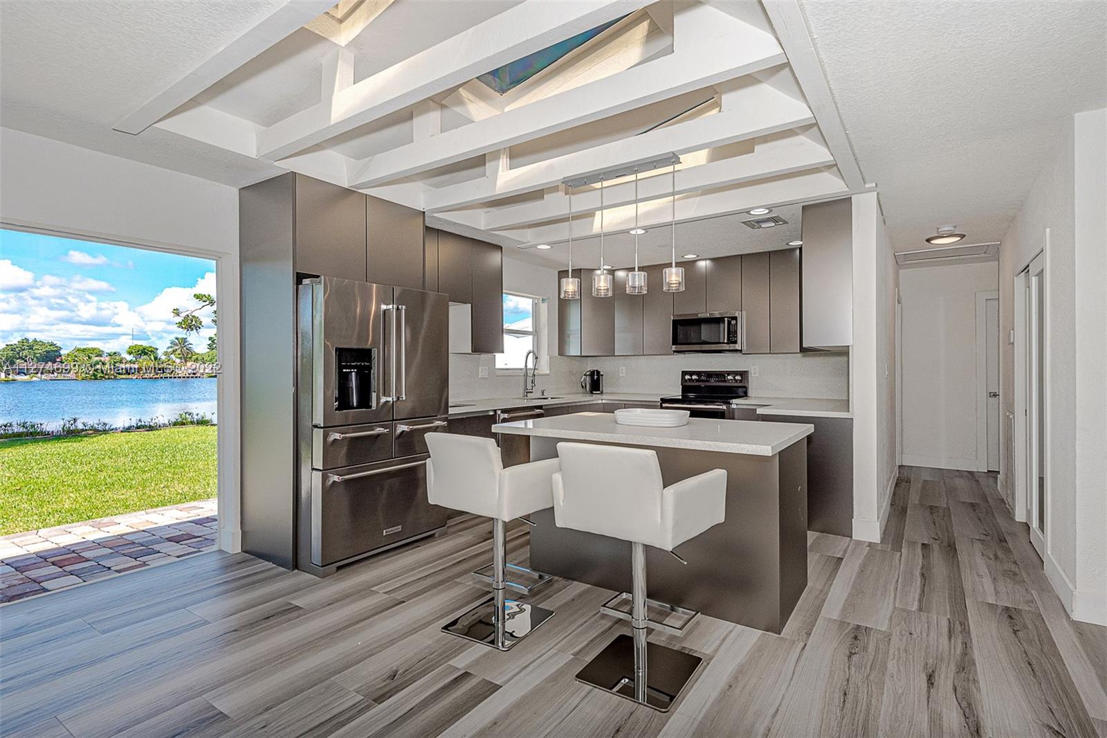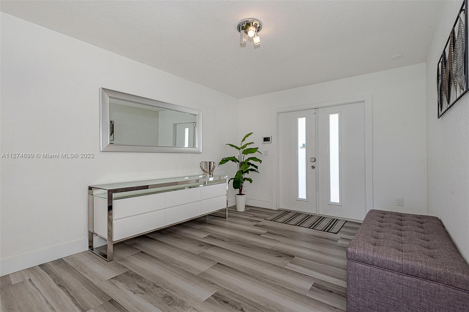 Fully Furnished- Ready to move in! Fully renovated 3Bed 2Bath (1800 sq ft) modern pool home, gorgeous lake views, pool and 6 jet jacuzzi. Outdoor tiki structure, 6 burner grill & outdoor fridge, table seating for 8. Ideal setting for a family, or turn-key short term rental. Property has short-term rental permit and verifiable rental income. Kitchen is open-design with island, quartz countertops and tile backsplash and skylights. Stainless steel appliances and double sinks each with gooseneck sink faucets. Samsung W/D. Located in the beautiful area of Highland Lakes, close to I95. Minutes from Aventura Mall, restaurants, beaches, parks and places of worship. Gorgeous lake and pool views must be seen to be appreciated. Note: Property appraiser reflect incorrect sq ft 2265 vs 1800 actual.