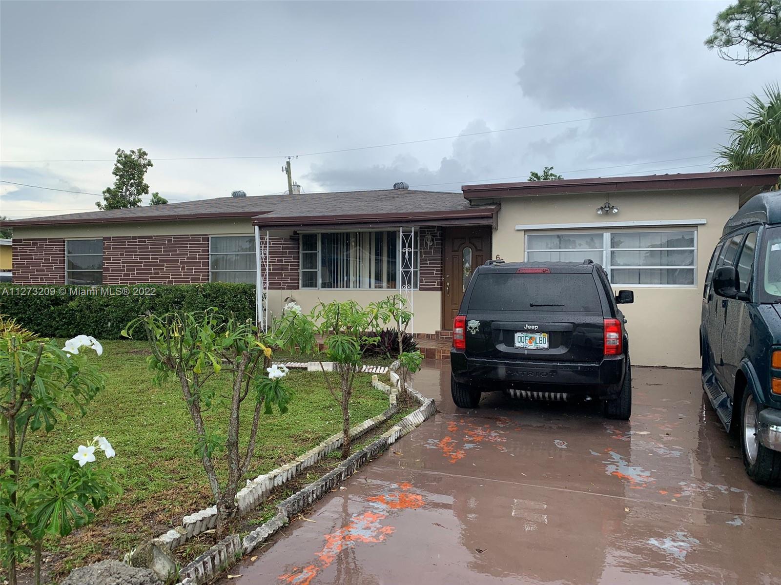 This lovely Miramar property consists of a 3bed/2bath AND separate 1bed/1bath efficiency/in-law suite. The efficiency has a separate entrance, full bath and a small kitchen. The property has plenty of parking for several cars. The main house is well maintained, the kitchen is updated and has a nice screened patio with a large backyard. Come see this home's potential!
