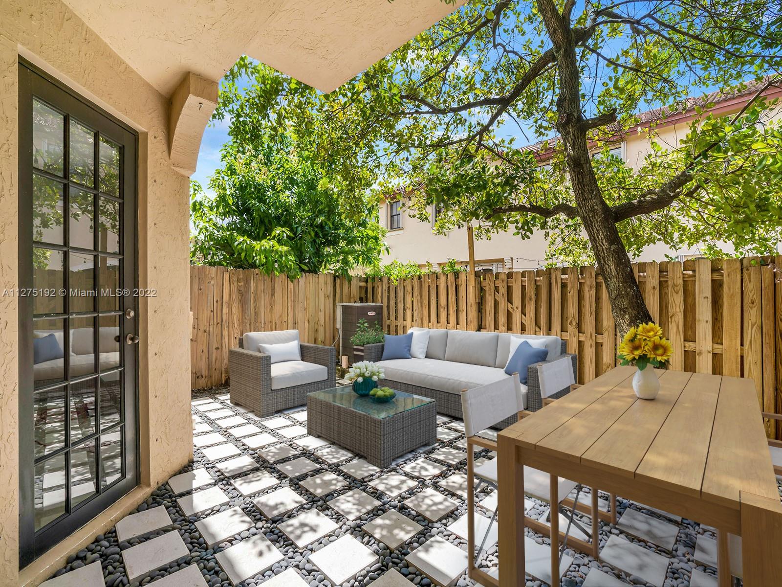 Beautiful and spacious townhome in the sought after community of Milan in Doral. Features 4 bedrooms, the main bedroom has a balcony with views to the backyard, large bathtub, separate shower and walking closet, 2.5 bathrooms, porcelain tile throughout, relaxing backyard with a beautiful tree, stainless steel appliances, New Air Conditioner, Less than 1 year old Washer, Dryer and Microwave, granite counter tops, 1 car garage and space to park 2 more cars at the front. Milan is a gated community in the heart of Doral, pool, gym, right next to the Veteran’s Park, a short distance to excellent schools, and on the same street as the U. S. Southern Command. All rooms are upstairs.