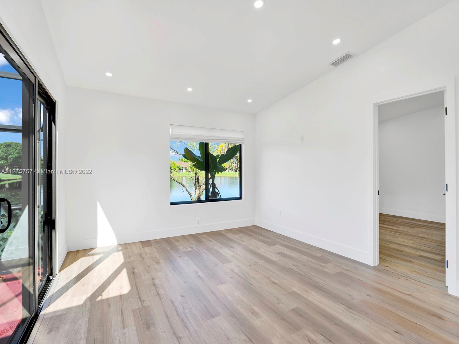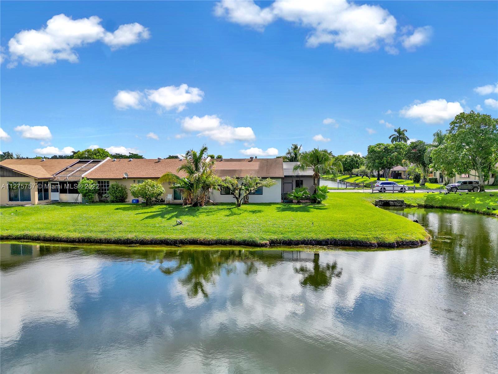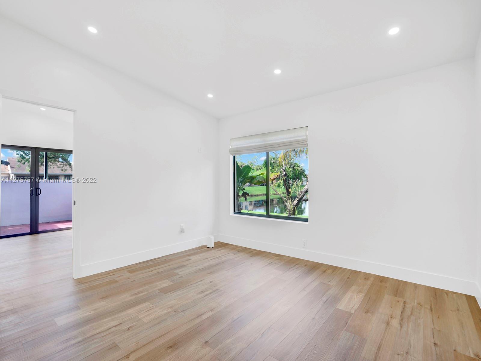Enjoy all the bells & whistles of this sleek & modern 2 Bedroom 2 Bath home in the highly desirable Meadows of Miramar. East facing corner lot with beautiful lake views from living area, master & enclosed patio. Impact windows & doors. Flooring throughout resembling Oak wood finish. Freshly renovated bathrooms with modern stone tops. Custom linen shades & LED lighting throughout home. Contemporary kitchen with new appliances & custom wood cabinets to include deep drawers, pull out pantry & stunning 10ft island featuring an open kitchen concept. Lovely community recreation area featuring an array of amenities. One car garage with new Samsung washer & dryer and storage cabinetry. Located in the heart of Miramar just minutes from major highways. A one of a kind home in this neighborhood.
