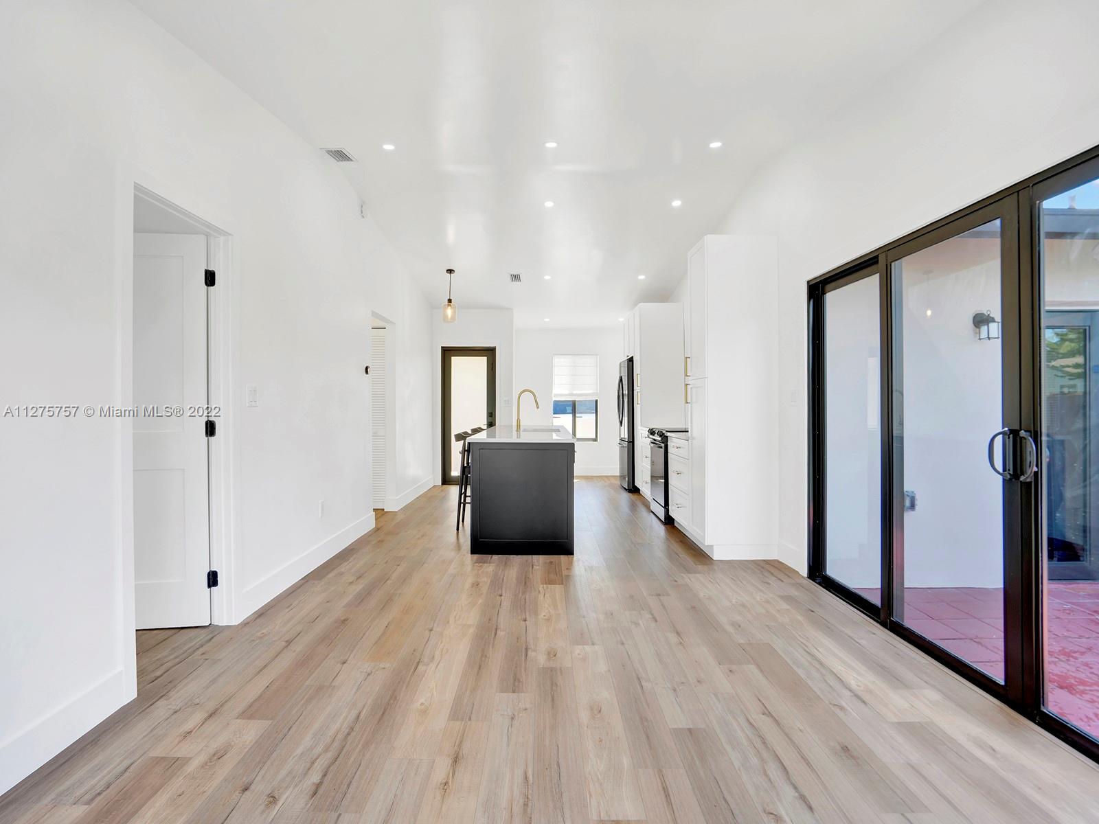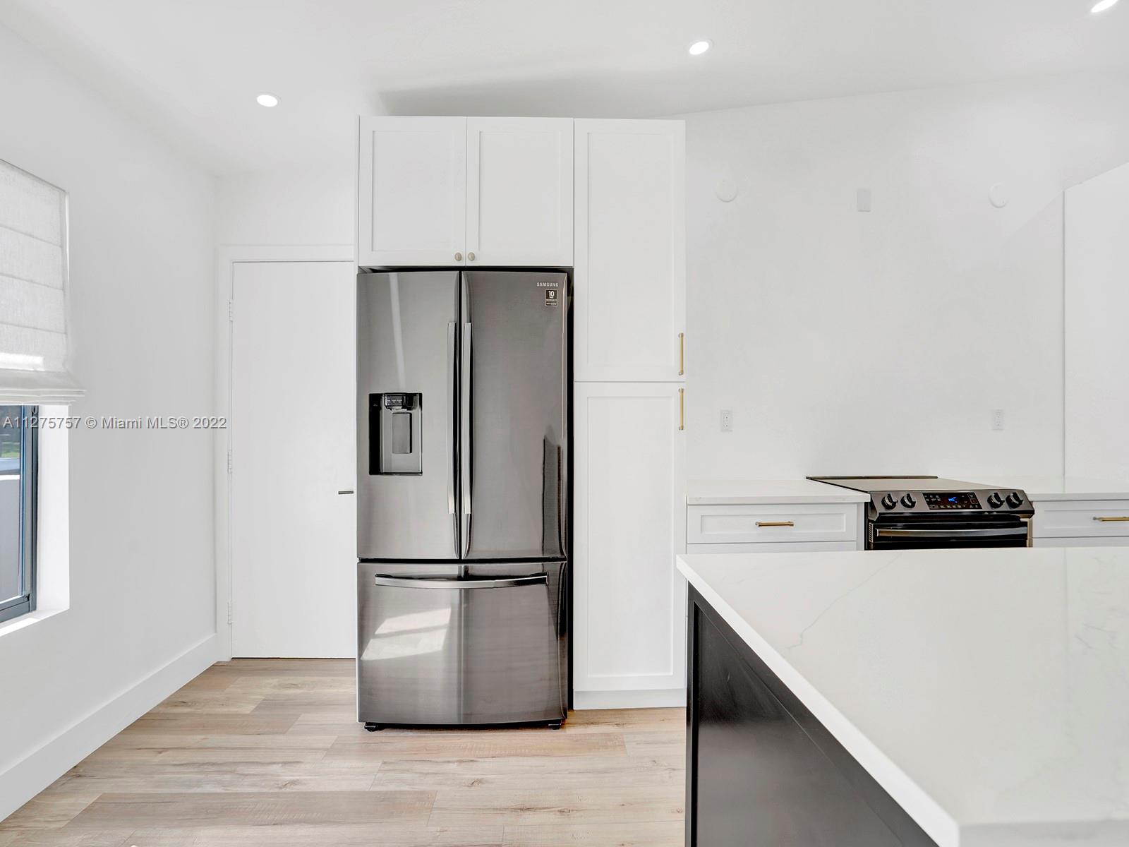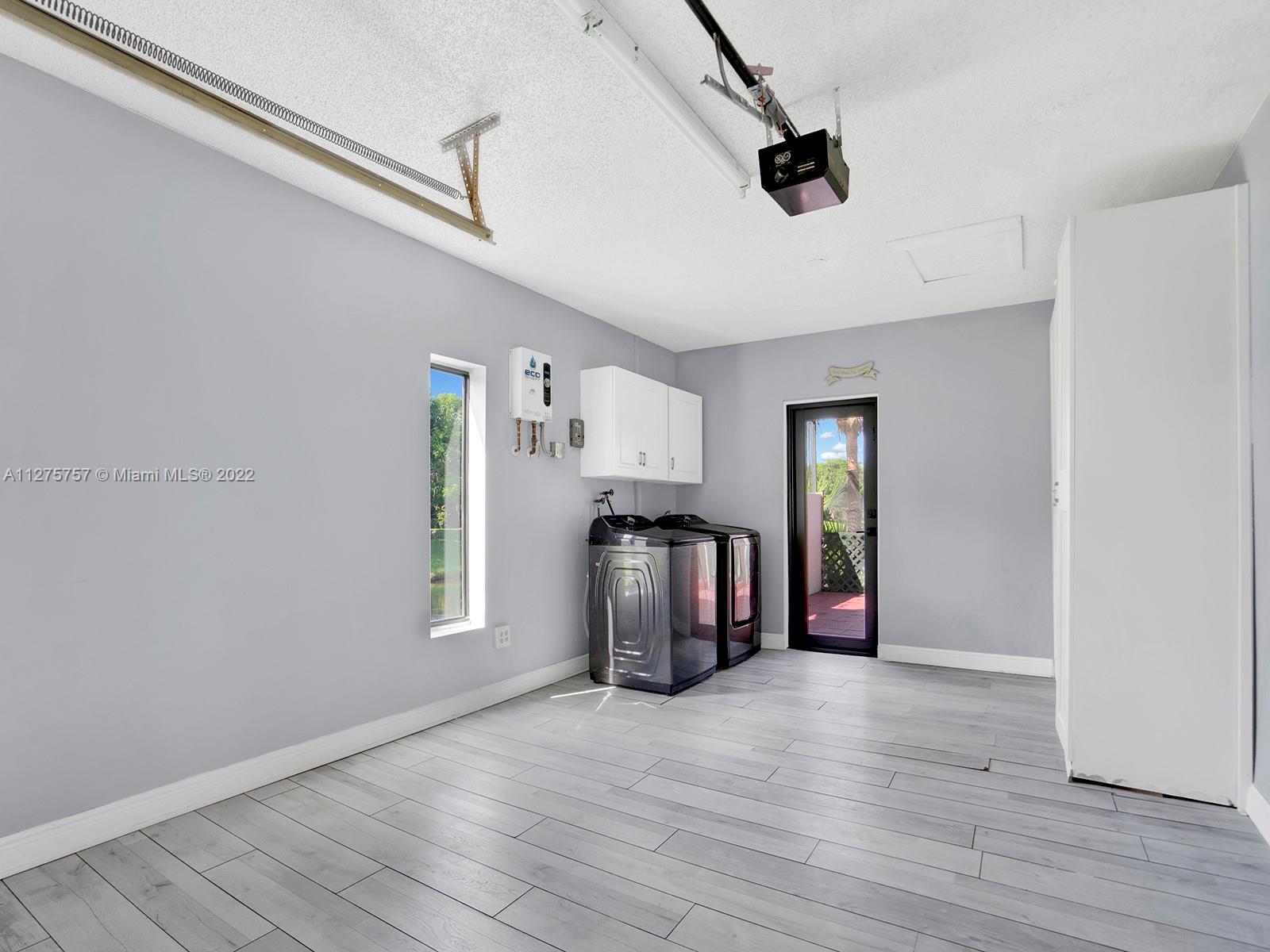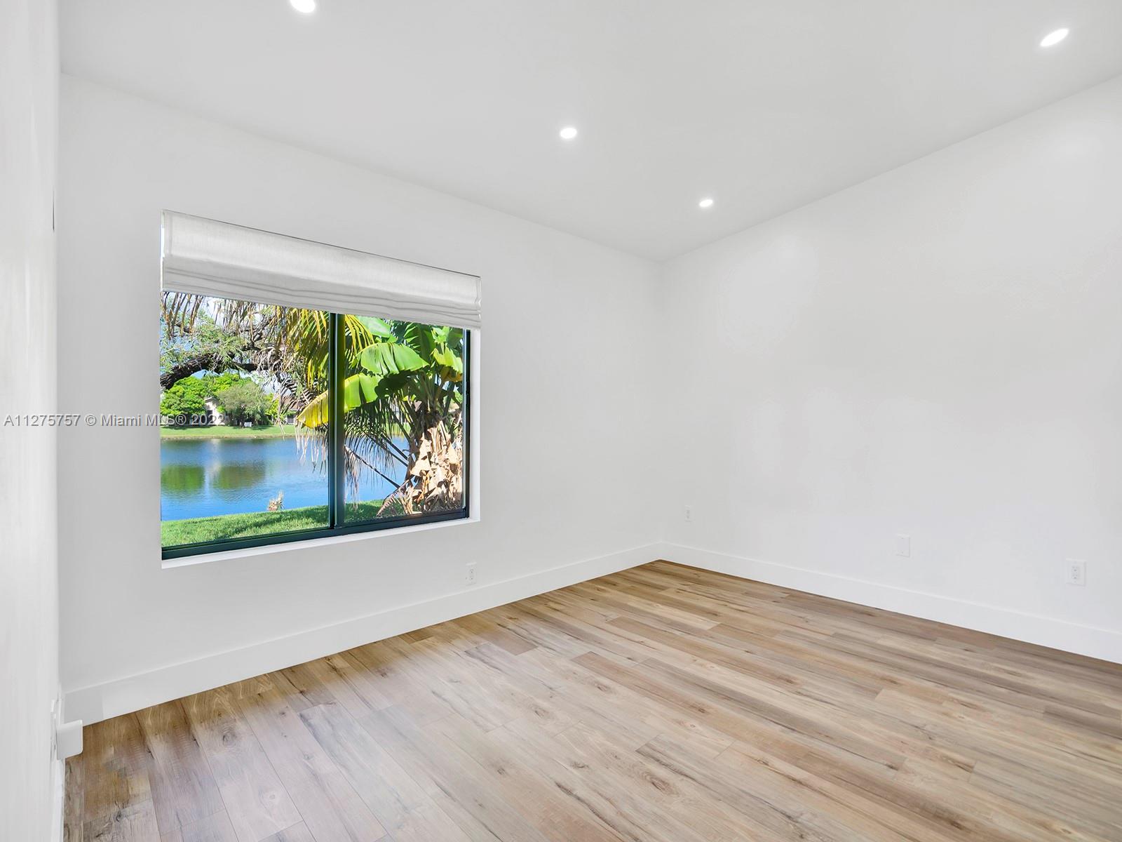 Enjoy all the bells & whistles of this sleek & modern 2 Bedroom 2 Bath home in the highly desirable Meadows of Miramar. East facing corner lot with beautiful lake views from living area, master & enclosed patio. Impact windows & doors. Flooring throughout resembling Oak wood finish. Freshly renovated bathrooms with modern stone tops. Custom linen shades & LED lighting throughout home. Contemporary kitchen with new appliances & custom wood cabinets to include deep drawers, pull out pantry & stunning 10ft island featuring an open kitchen concept. Lovely community recreation area featuring an array of amenities. One car garage with new Samsung washer & dryer and storage cabinetry. Located in the heart of Miramar just minutes from major highways. A one of a kind home in this neighborhood.
