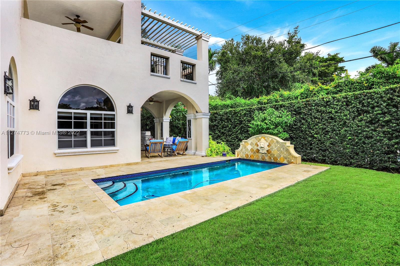 Coral Gables Gem! 4 Bd/3 Ba Home, 4th bedroom converted to den. Offers a Mediterranean Design w/multiple terraces/balconies, showcasing City views. Prime Gables Location, minutes from Historical sites, venues, restaurants, & shops. Newer Built home was Upgraded in 2019 w/high-grade finishes throughout. Italian Design MIACUCINA kitchen w/oversized island, Quartz Waterfall Countertop, Built-In Appliances (Double SubZero Fridge(s) & Wine Fridge), Wolf Range (gas), & Asko Dishwasher. All Hurricane Impact Windows/Doors & New 2022 Roof w/10yr Transferable Warranty. Marble Floors throughout w/newly Remodeled Baths. Open FloorPlan w/extended lanai, exterior travertine flooring & pool for entertaining. Professionally Landscaped- Immaculate Home shows like a Model & includes partial furnishings.