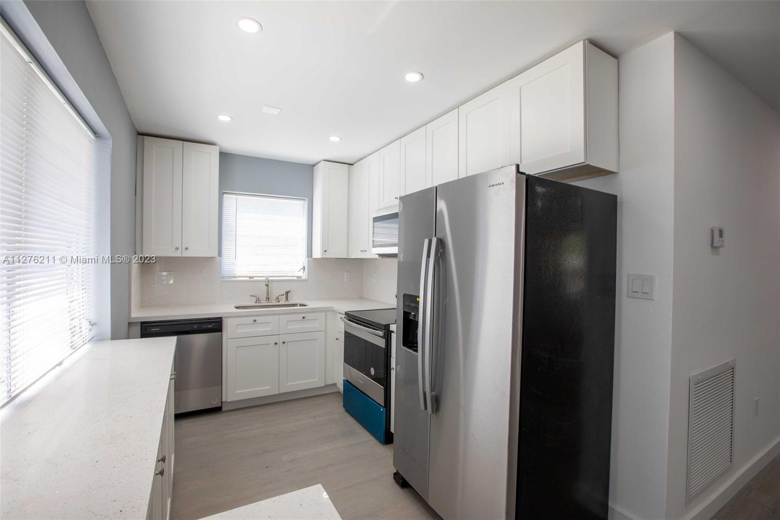Adjusted for 3 bedrooms, 2 baths single family home with a resort style pool. This home features granite countertops, white kitchen cabinetry, brand new appliances, modern bathrooms, wood style flooring throughout the house. Covered lanai and an exuberant backyard sitting on almost 8000 sq feet corner lot with enough space to park a large size boat or RV. New AC with 10-year warranty. Water heater 2 years old, 1 year warranty for the kitchen appliances. No HOA fees. FHA and VA eligible. Comes with a large size shed. Pompano Community Park offers tennis courts and an amphitheater. Approximately 3 to 5 miles away from the beach, Golf course, Marina, and 7 miles away from Boca Raton.
