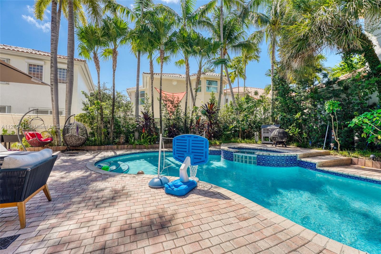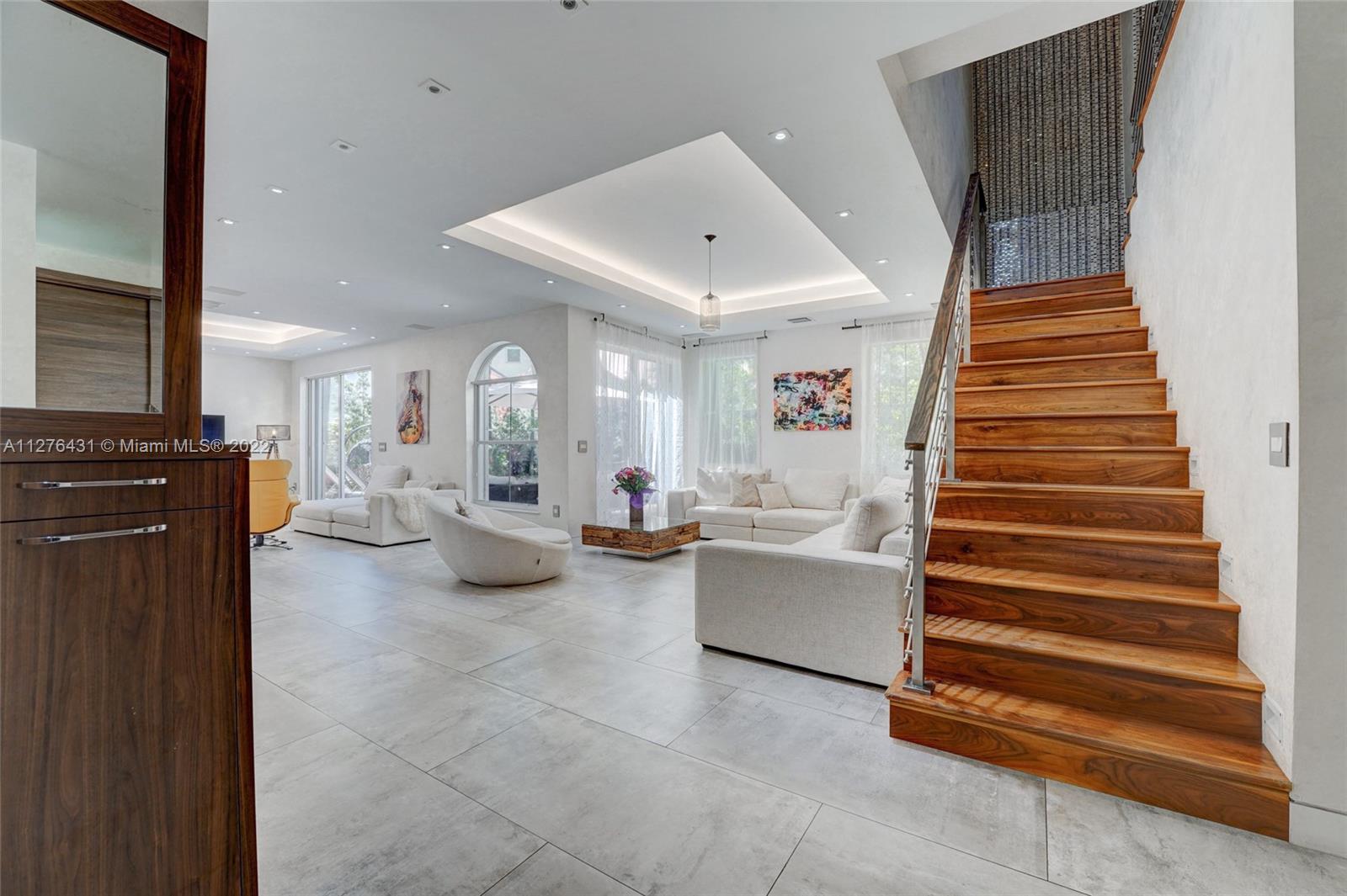Exquisite Estate Home w/ 5BR and 3BTHS. 1BR downstairs and 4 upstairs. Upgraded to the highest level possible - The highest end flooring, highest end all custom cabinetry, a extremely large chef inspired kitchen with Thermador appliances and a induction range. Built in sound system throughout. Wired surveillance system. All LED lighting. Saltwater pool with spa makes this property to die for. A true entertainers home with a lush outdoor pool area that is set up extremely well for get togethers. If your looking for a turn-key estate with nothing to change or upgrade at all this is definitely it. Plus the community is equally as lavish as the home its self. Full Marina that can handle Yachts up to 120ft. Private tennis, basketball, child play area, dog walking area - Remarkable Opportunity.