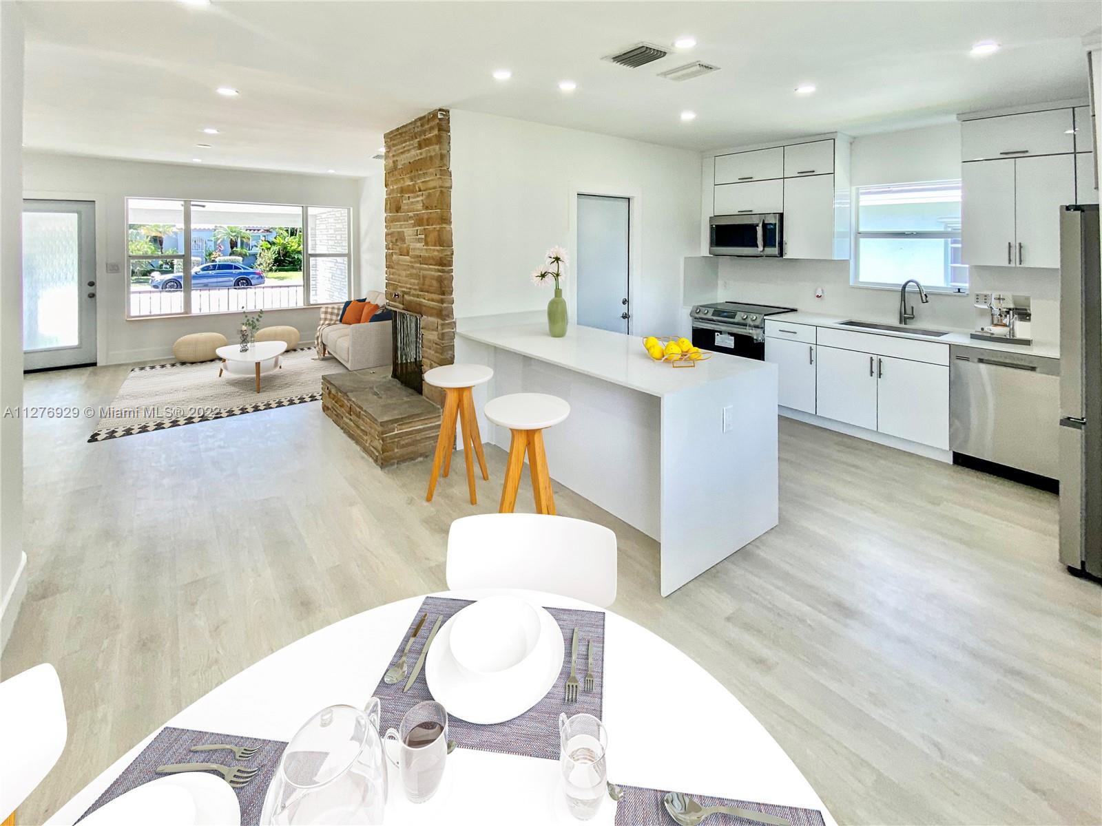 Situated in an amazing Gables location this Beautifully remodeled 2/2 Coral Gables home features a custom kitchen, custom cabinets, stainless steel appliances, new flooring, hurricane impact windows and doors, central AC, recessed lighting, and level 5 finished interior walls. All-new PVC plumbing, all-new electrical wiring and brand new electrical panel are also included. Everything has been done with permits in 2022! House is on sewer(rare for Coral Gables) 2 mango trees in the backyard. Some say it's the best mango they have ever tried.