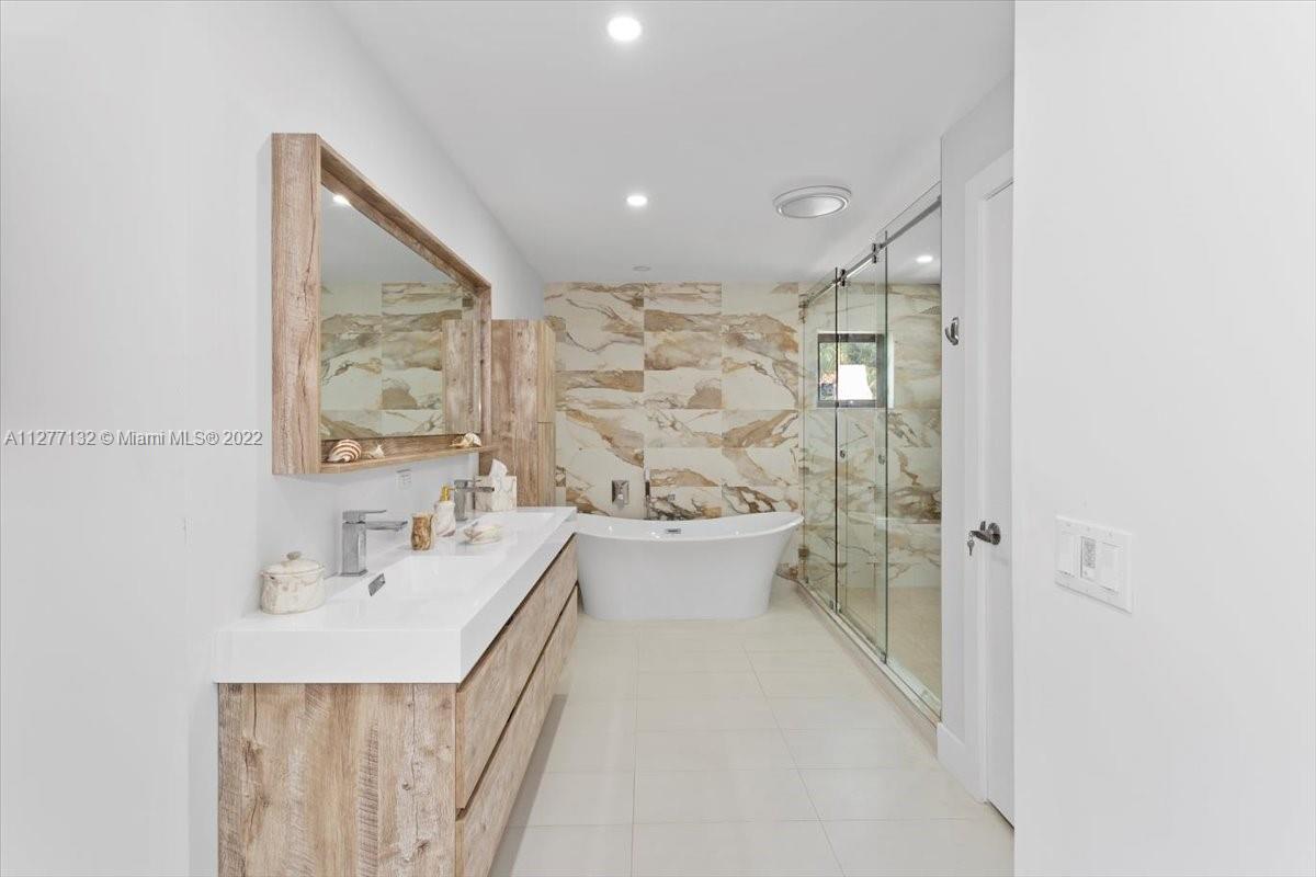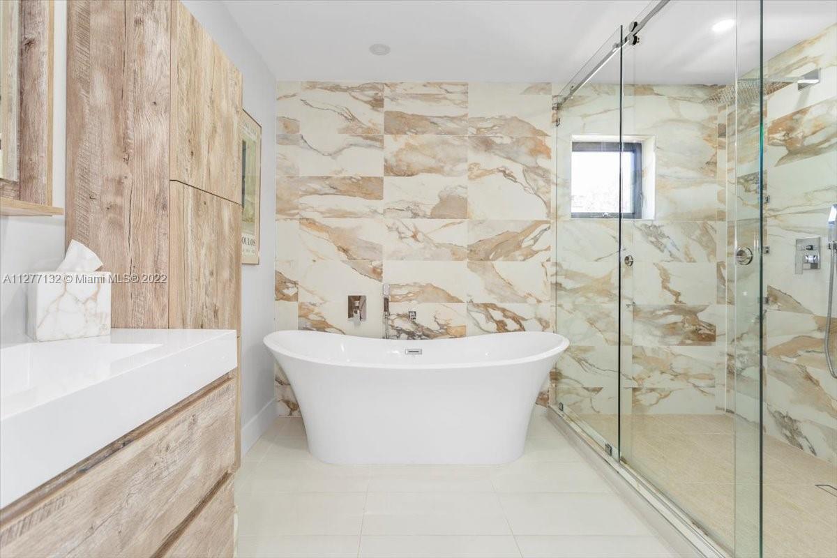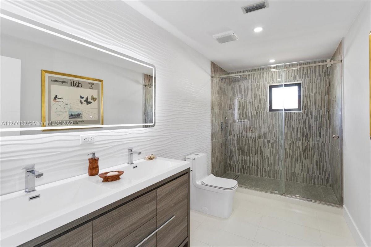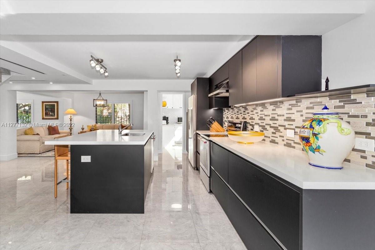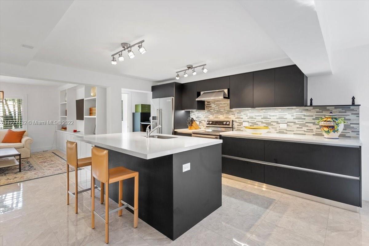Recently updated and meticulously maintained house located on a quiet street of Coral Gables in walking distance to the Granada Golf Course.Immaculate and move-in ready, this spacious 2,796 sf two story, contemporary home sits on a groomed lot and offers an impressive open floorplan featuring elegant finishes and details from ceramic floors throughout to contemporary bath fixtures and a modern glass staircase leading to the second floor. The expansive living room leads to a premium gourmet kitchen with Italian wood cabinetry, quartz countertops and butler's pantry. There is a abundance of natural light via many windows and glass doors. Charming and private backyard surrounded by lush vegetation is perfect for relaxation and entertaining with Jaccuzzi hot tub, covered cabana and a barbeque.