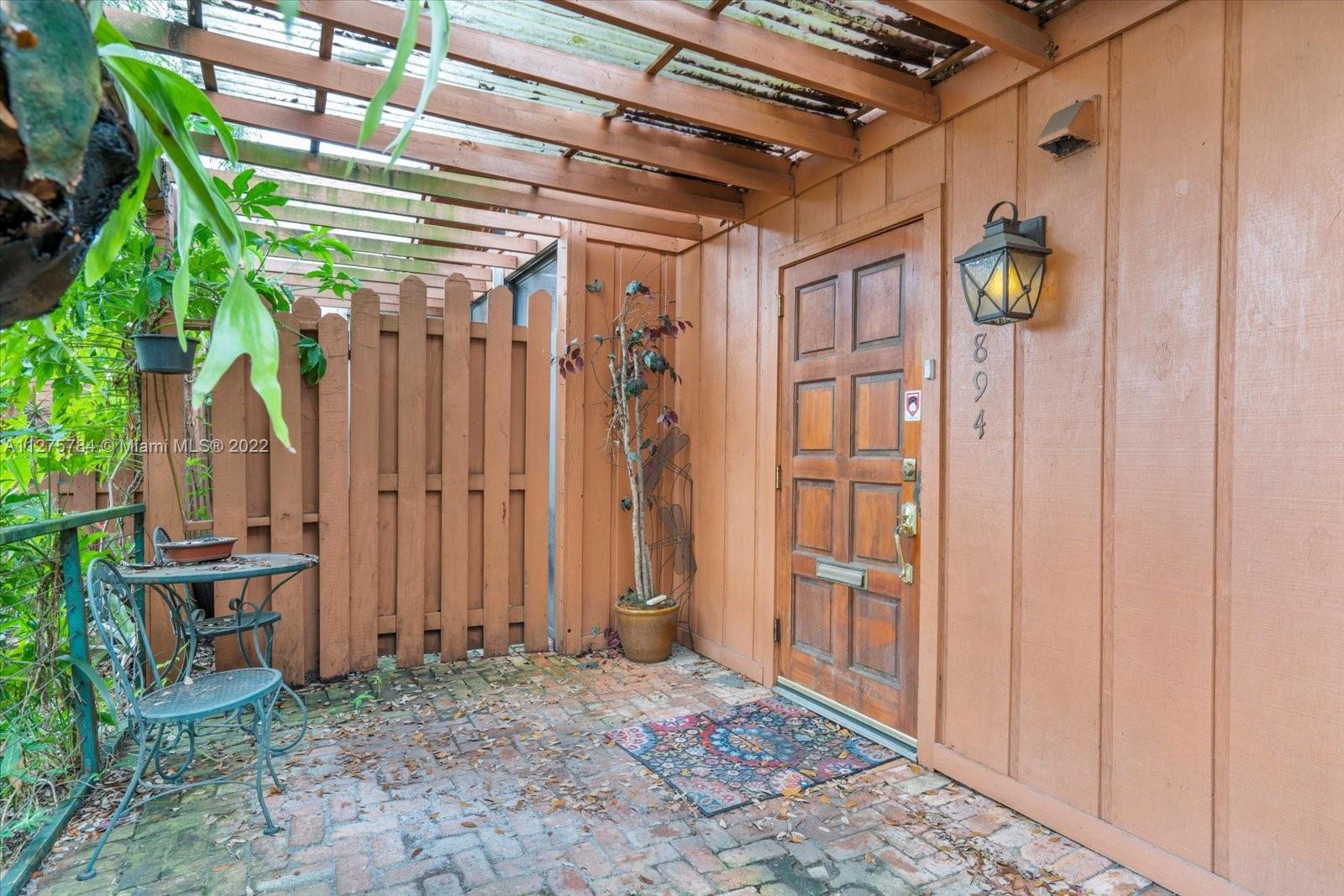 Single floor Villa with 2 bedrooms and 2 full bathrooms located in Palm Aire Village. This home features wood beams vaulted ceiling, tile flooring throughout, walk-in closet in both bedrooms. Stackable washer and dryer. Large fenced backyard with space to build a pool. New shed. 2 Parking spaces in front of the villa. The Roof is 2020, The A/C is 2022, Water Heater is 3 years old. Low HOA. No rental restrictions.