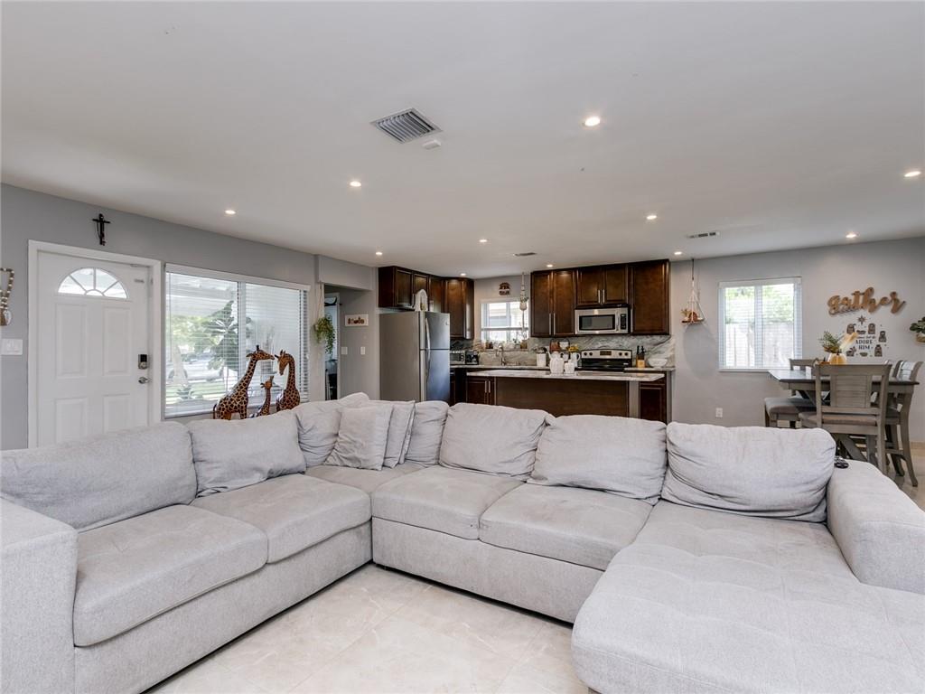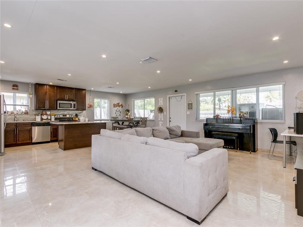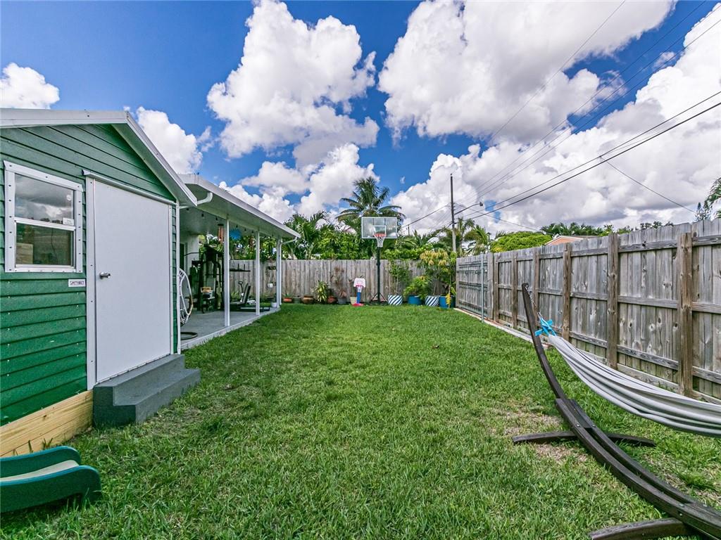 Owners motivated! Once you enter the front door, this wide-open bright home welcomes you with its neutral 24x24" tile floors, quartz counters and stainless-steel appliances. Recessed lighting throughout! 3 bedrooms and 2 baths, one of which is ensuite. Storms, no problem, enjoy impact windows and doors throughout, with a panel for front door. Florida outdoor living at its best in your fenced backyard (which also has a sliding gate for alley access), and your newly covered back patio. Quiet street, conveniently located to shopping, schools. Memorial Regional Hospital and downtown Hollywood. Carport for one car with additional driveway parking. New tankless hot water heater, not to mention plenty of storage both inside and out, with a brand new shed. You will fall in love with this home!