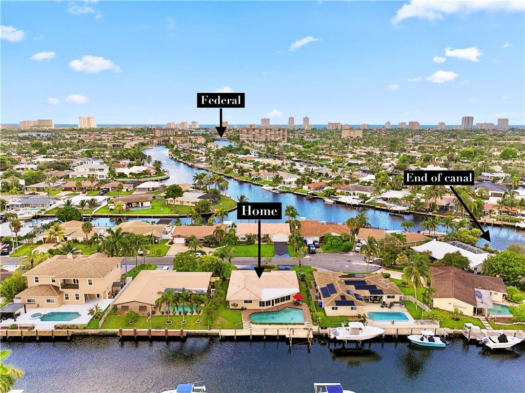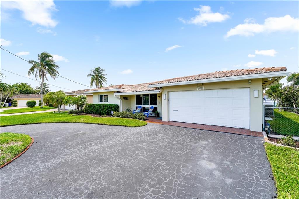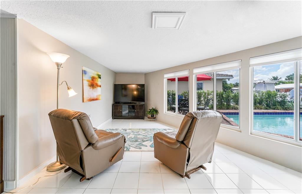 Waterfront home in Pompano Beach Isles with relaxing pool & canal views. 75ft of waterfront with dock. Situated on a dead end street with no through traffic, two homes in from the point. Easy access to intracoastal and Ocean. Circular driveway and a covered front porch leads you into this great home. The interior offers an open layout with multiple living/entertaining areas. Light & bright kitchen w/ tons of cabinets and counter space. Split bedroom floor plan offering comfort and privacy. Spacious primary bedroom with en-suite bathroom & walk-in closet. The two secondary bedrooms & updated guest bath are situated on the opposite side of the home. All impact windows & doors, updated electrical panels, 1 yr old pool pump, 1.5 car garage and much more.